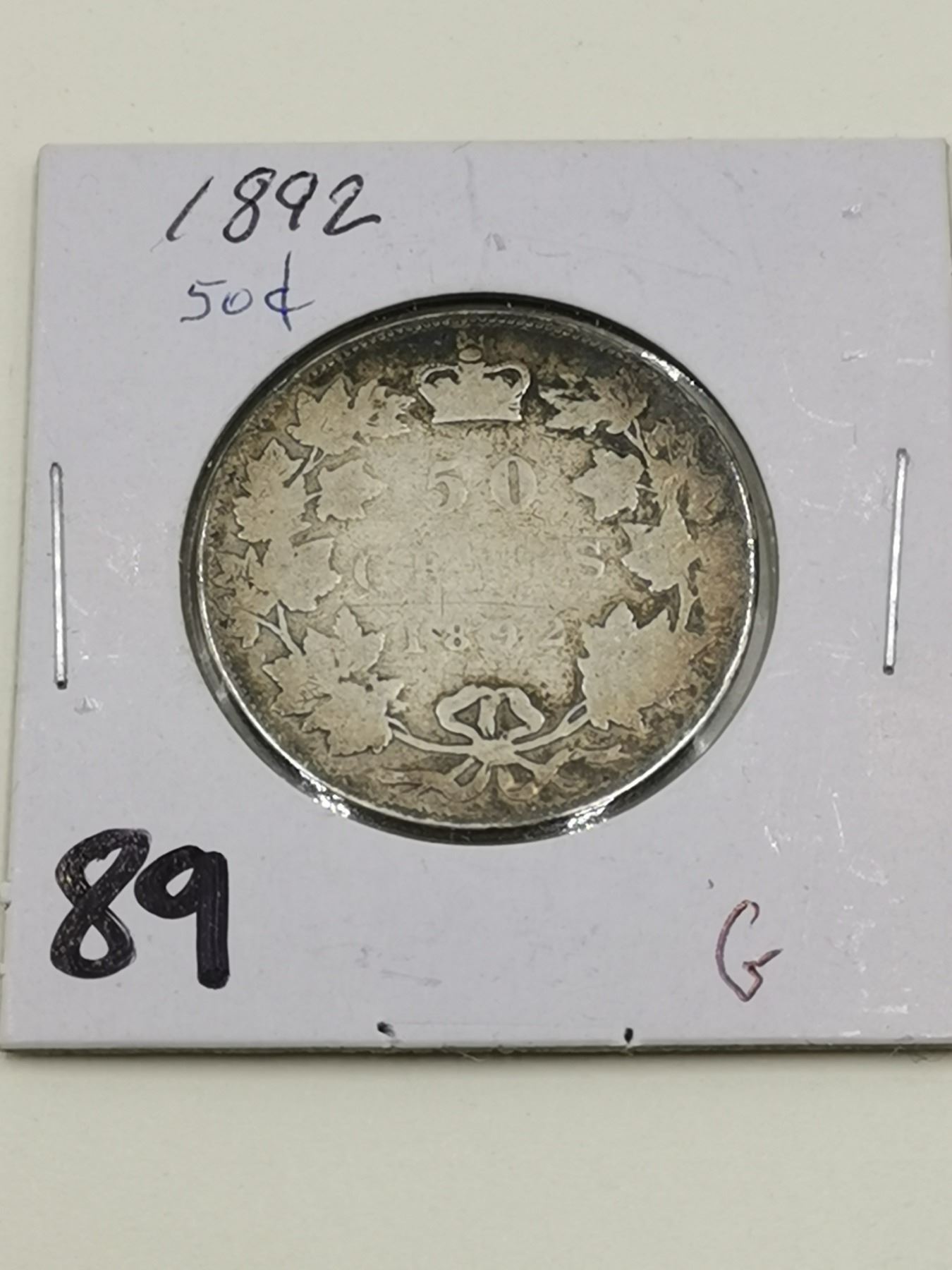 Rare - Obverse 3 - 1892 Silver 50 Cent Coin G+