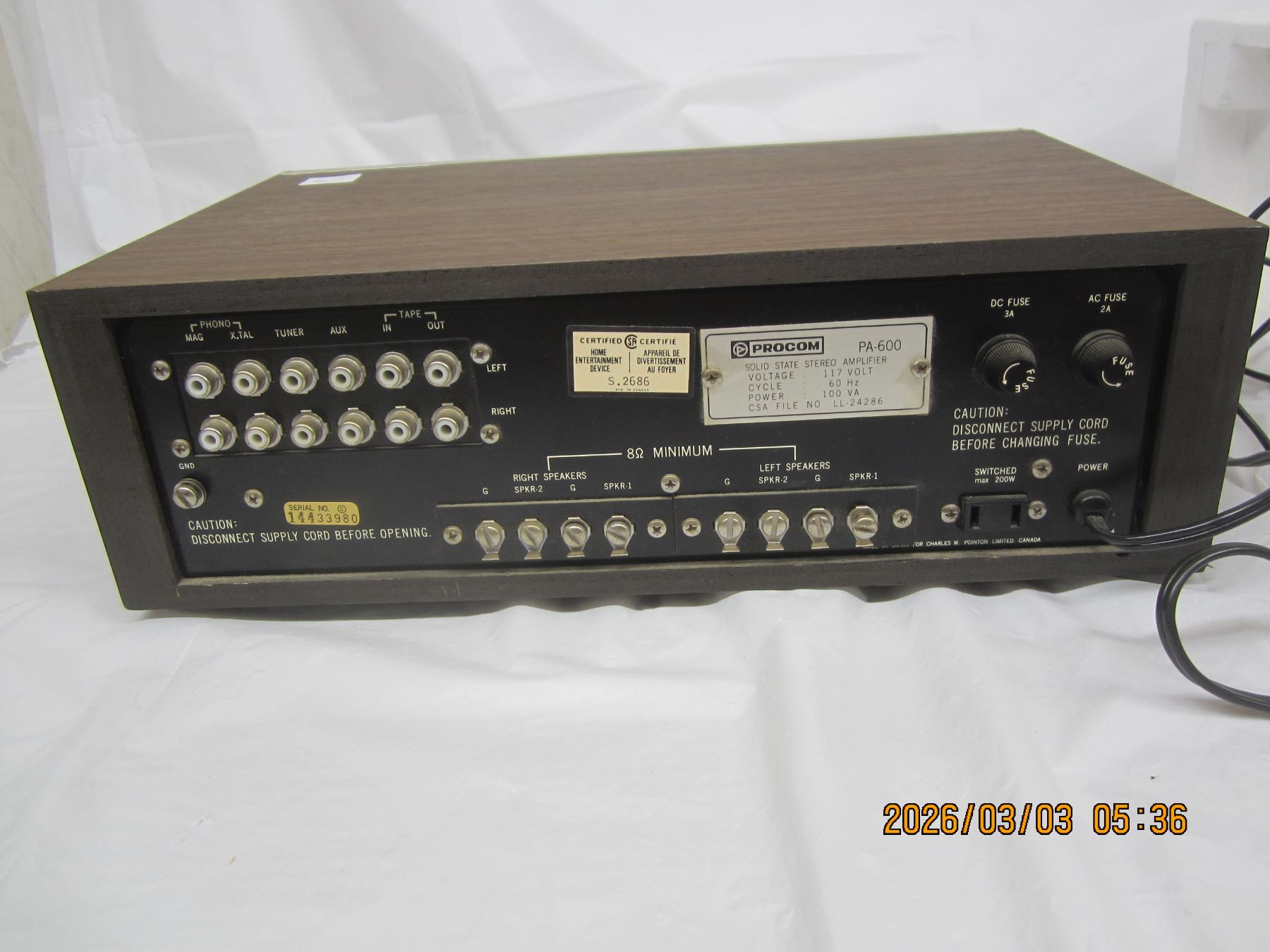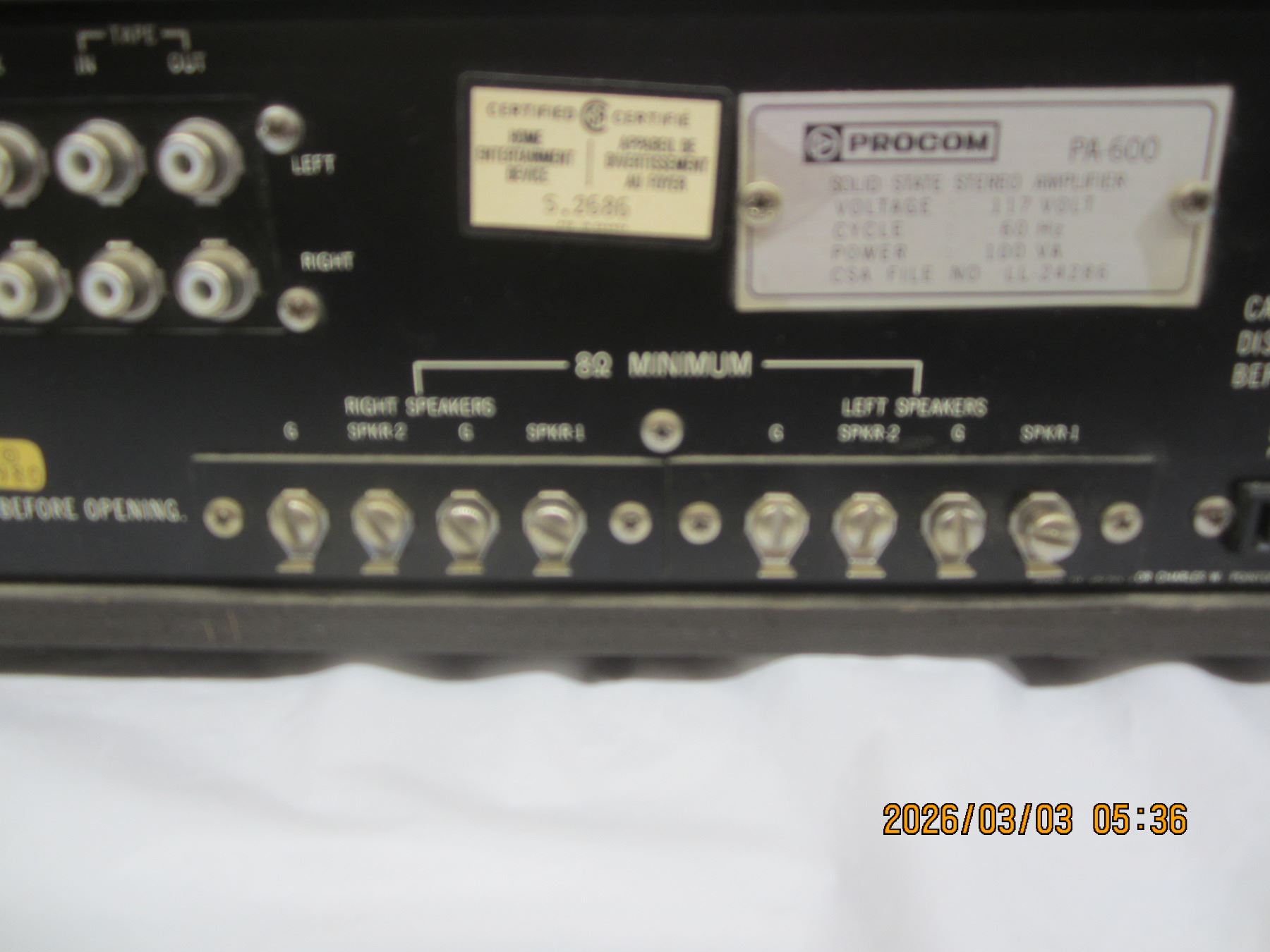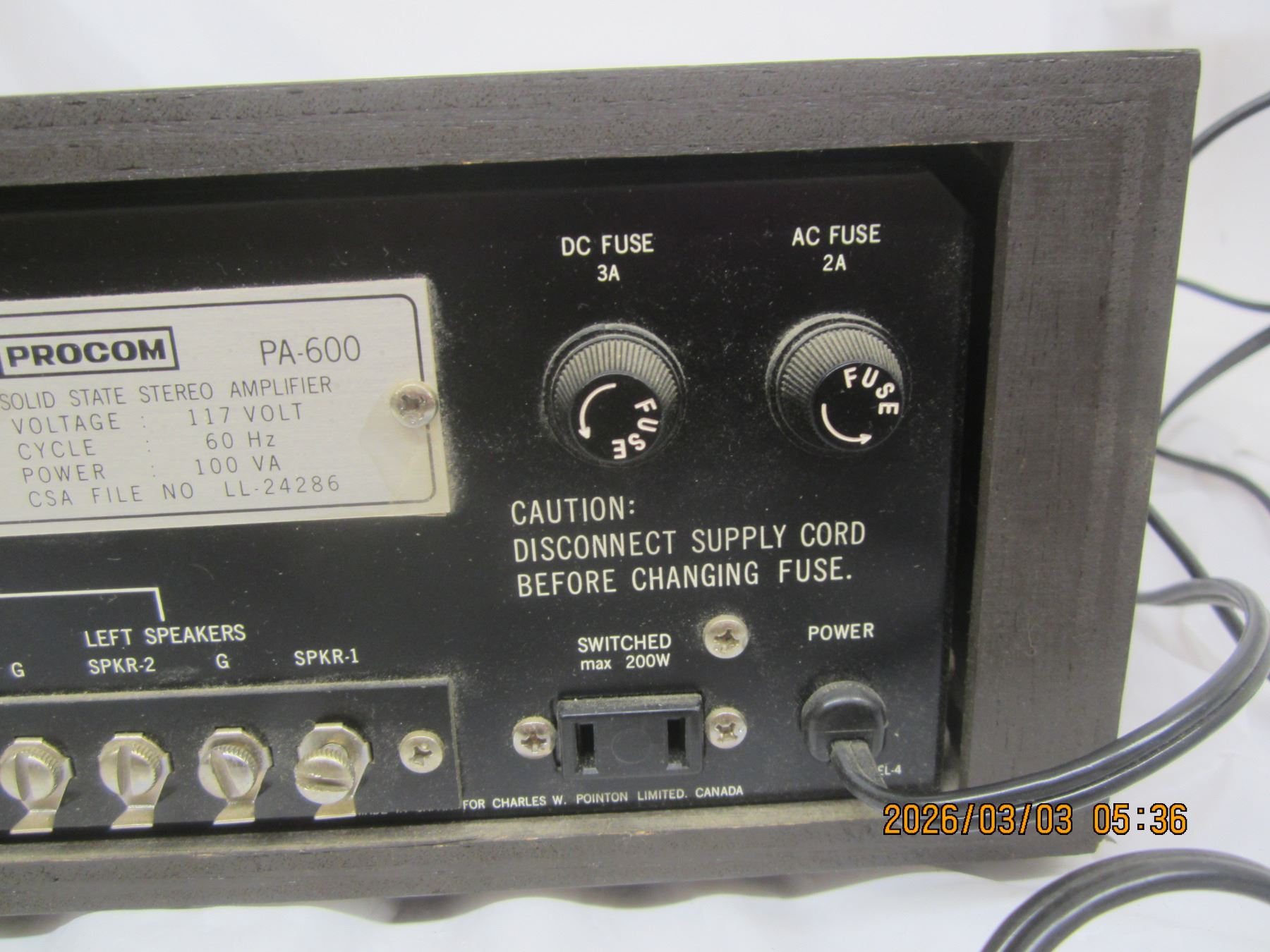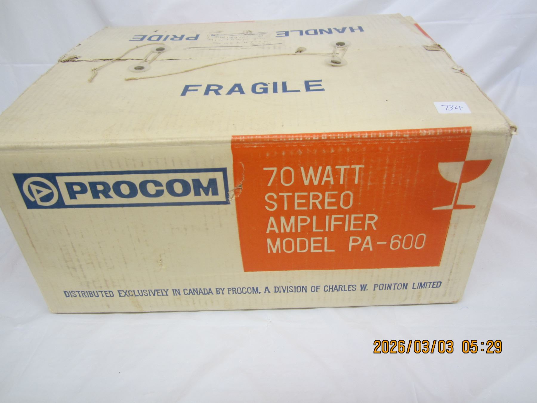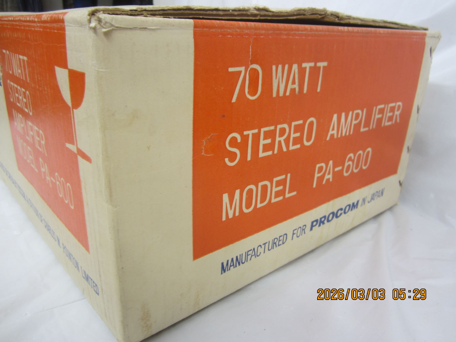 Rare Procom Stereo Amplifier Model PA-600 with Original Box Unit Powers Up
