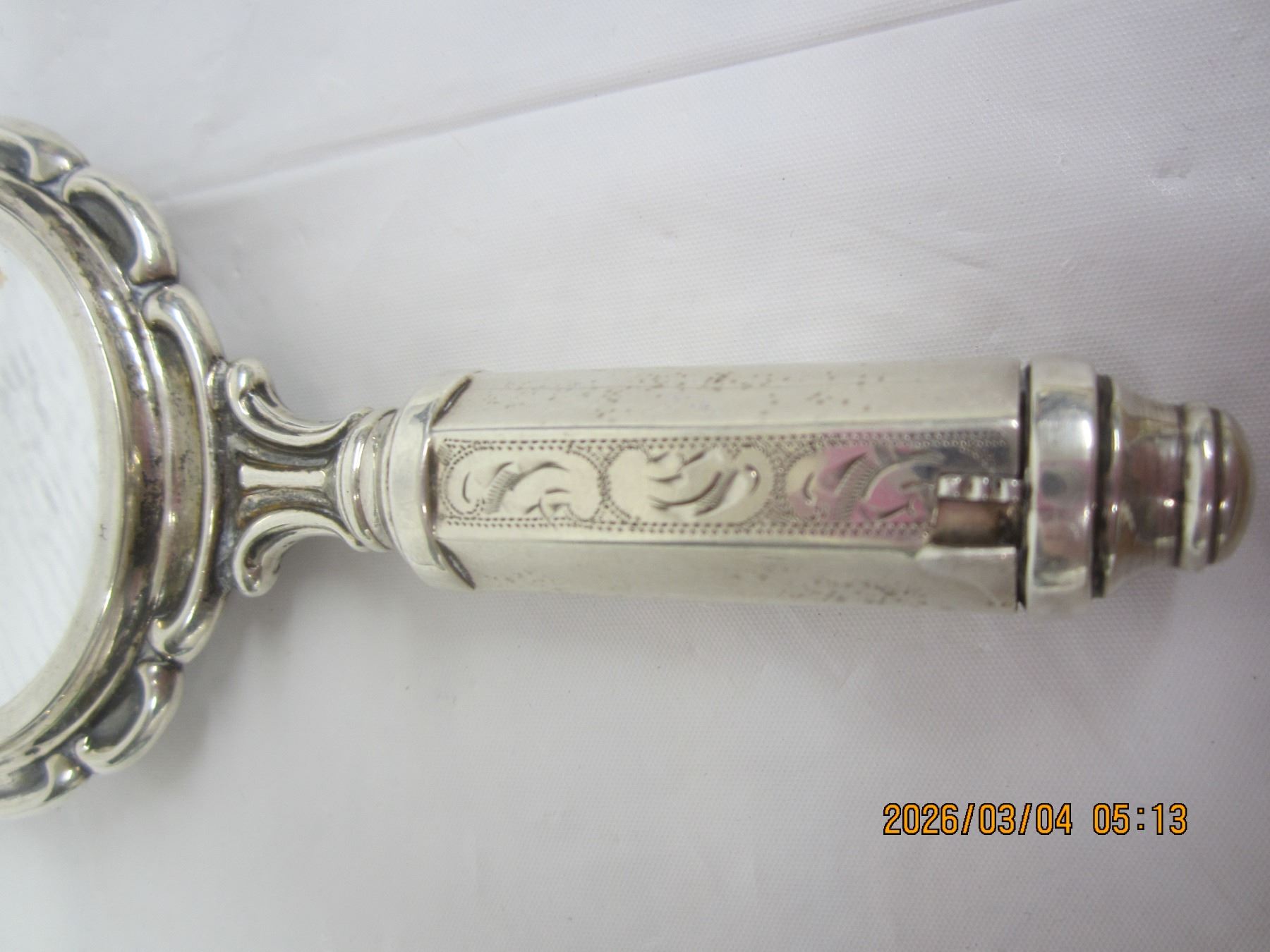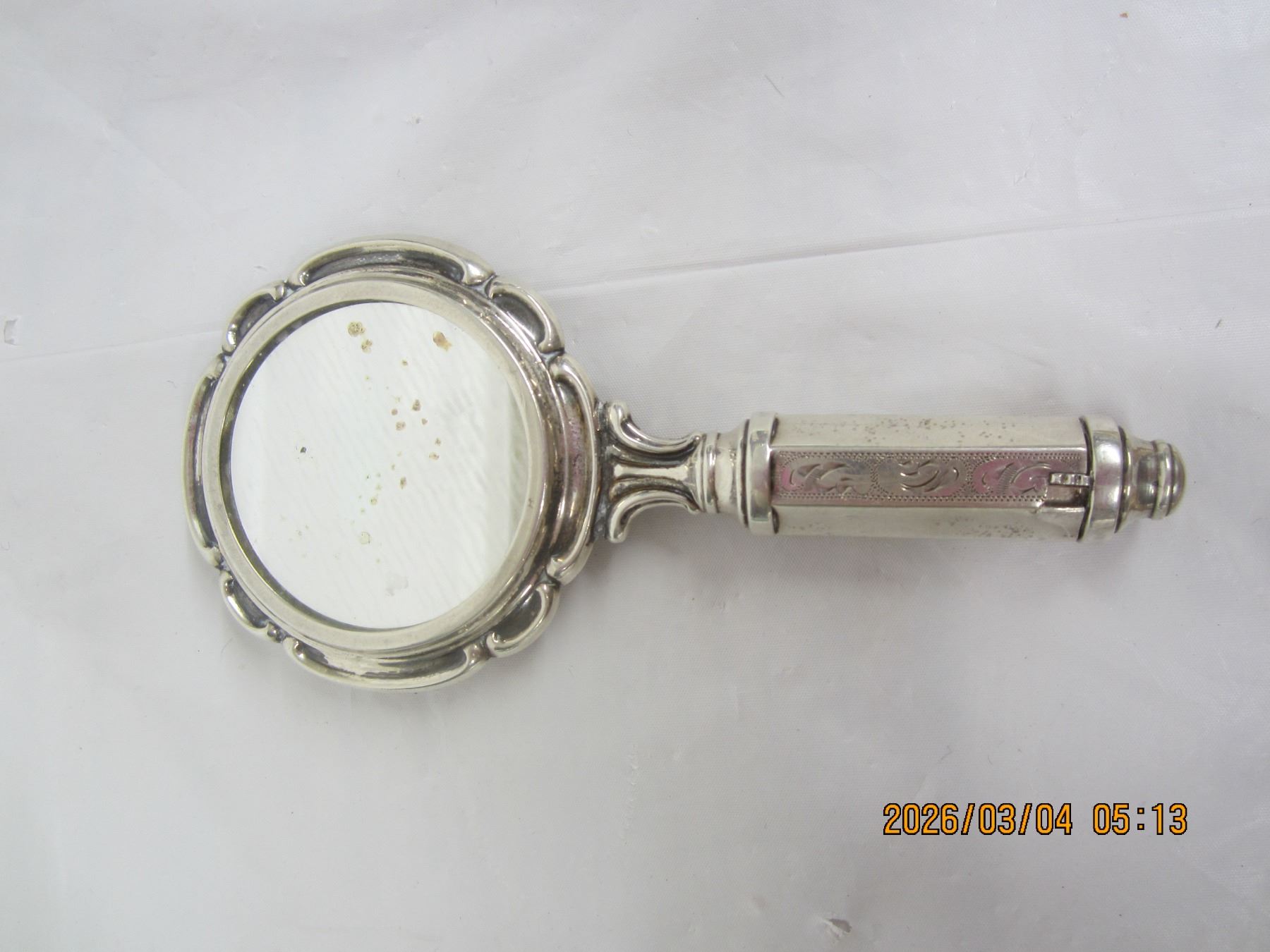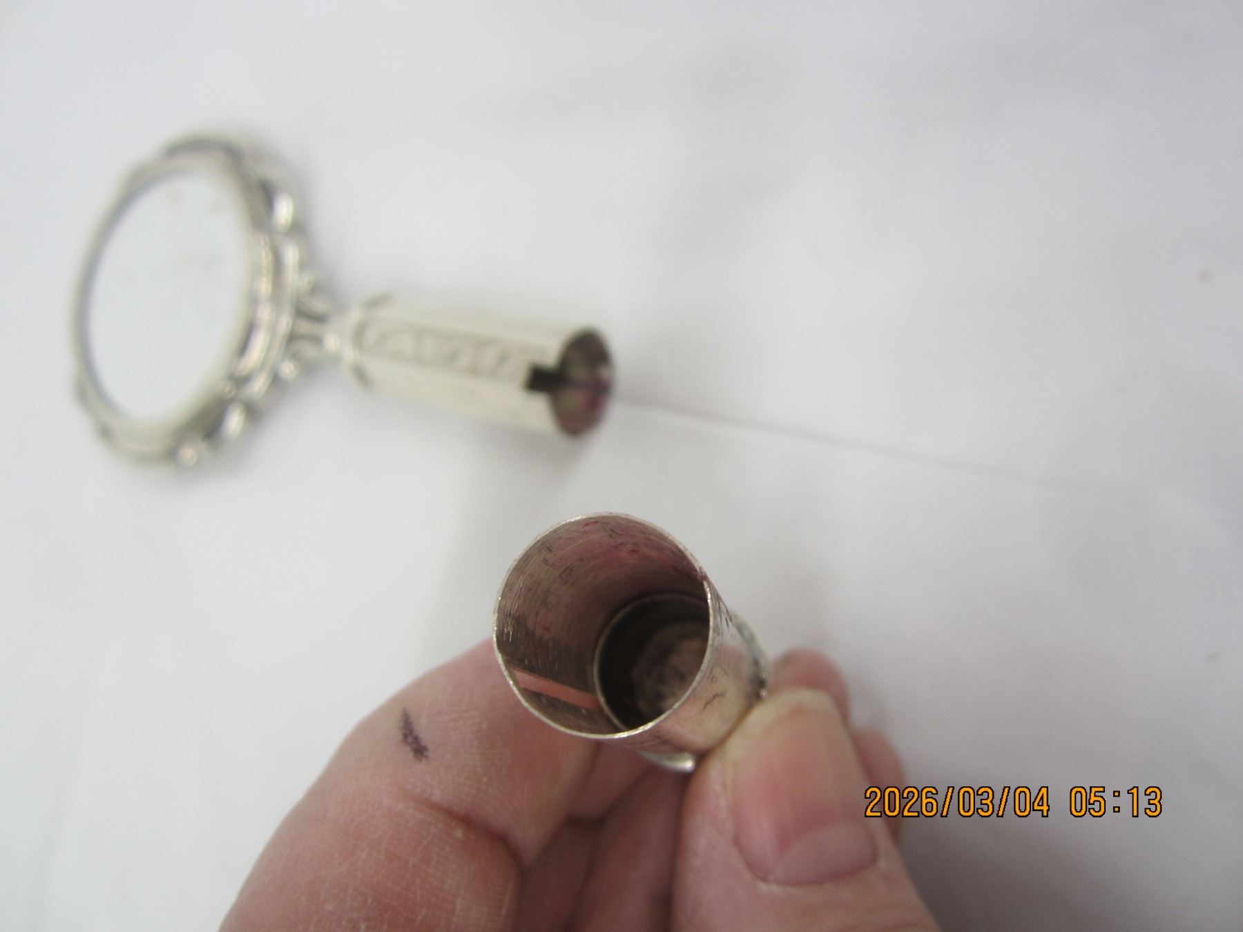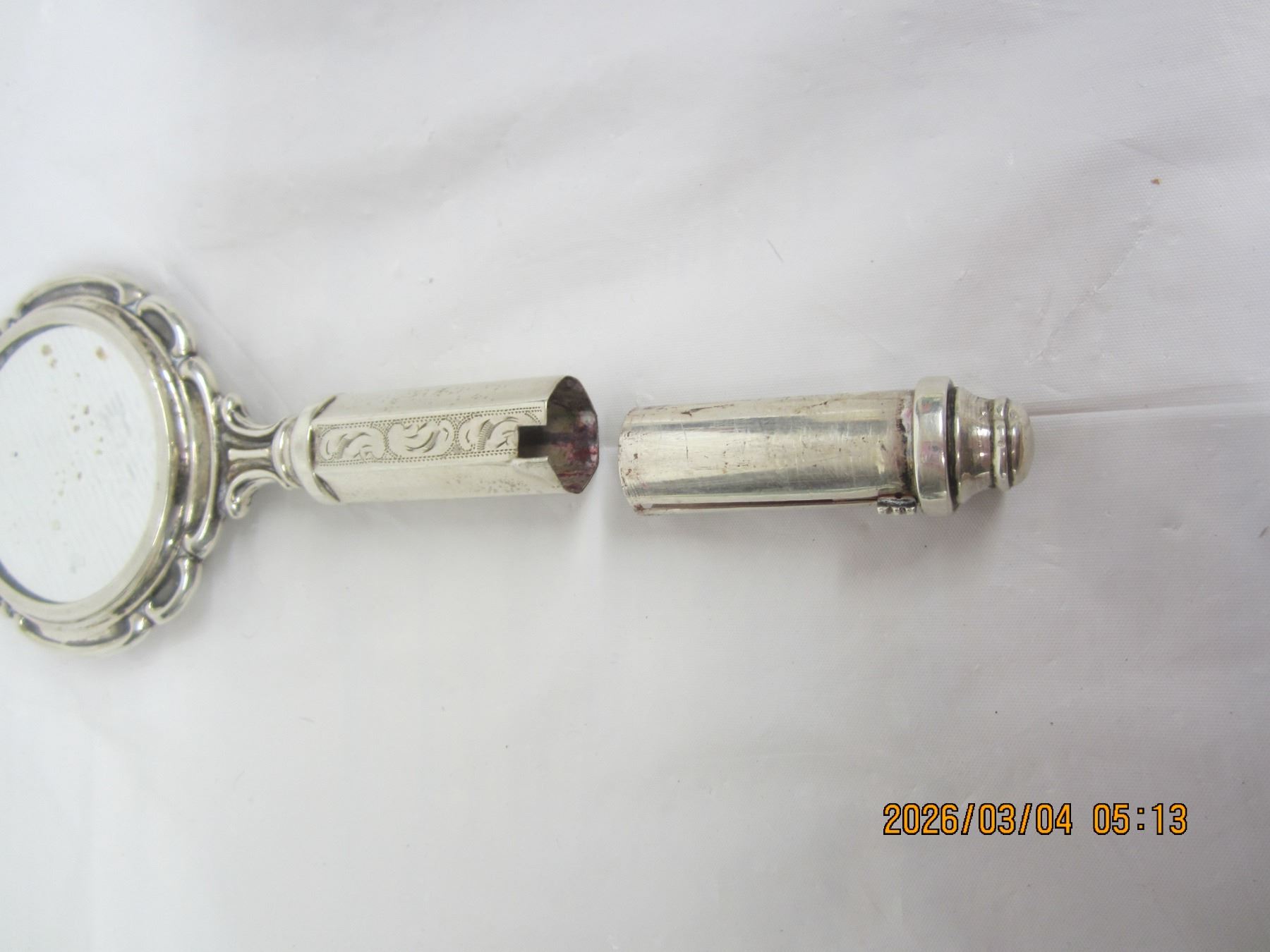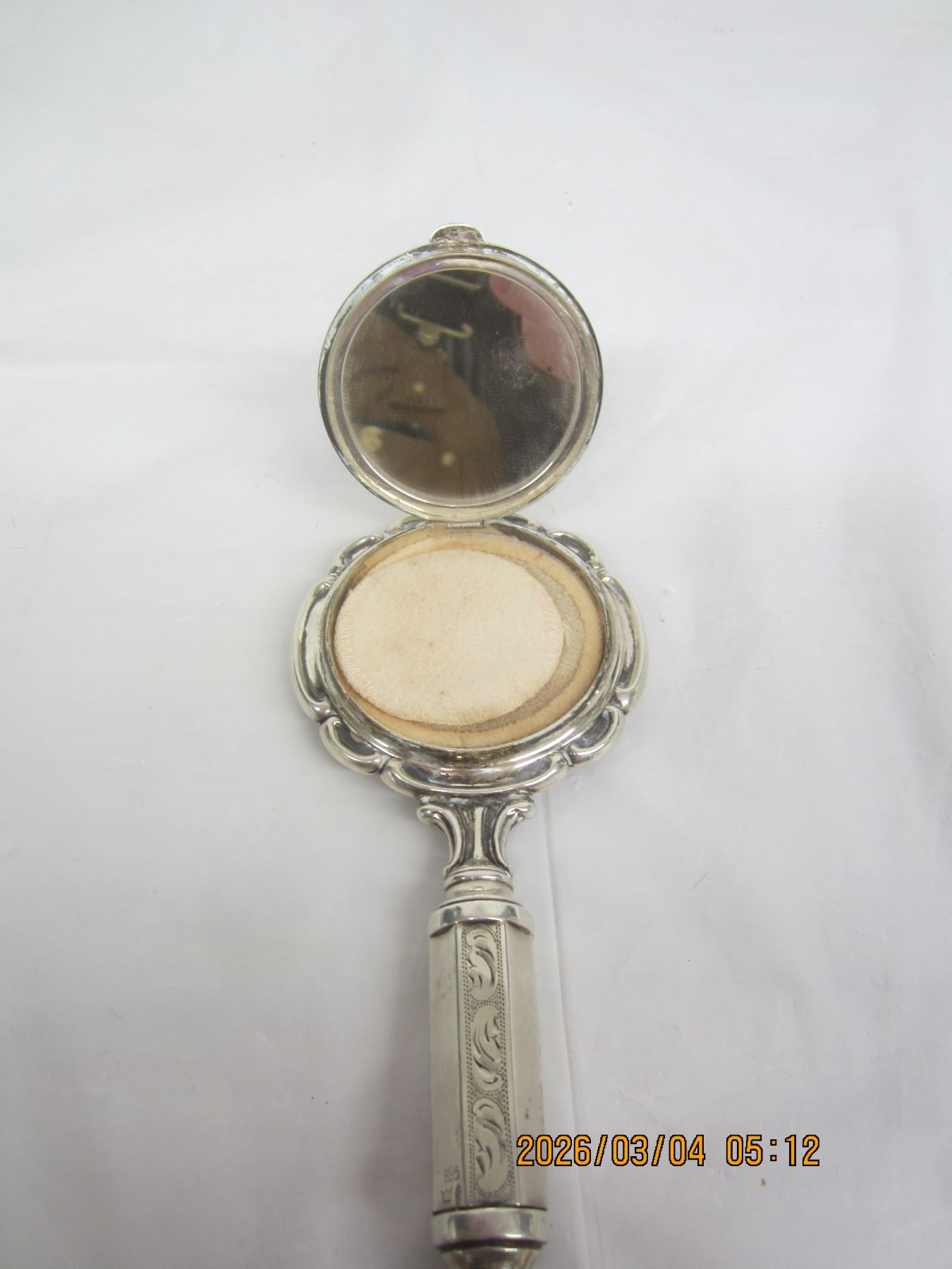 Rare Sterling Silver Ladies Compact with Mirror, Powder and Lip Stick in Handle Good Condition