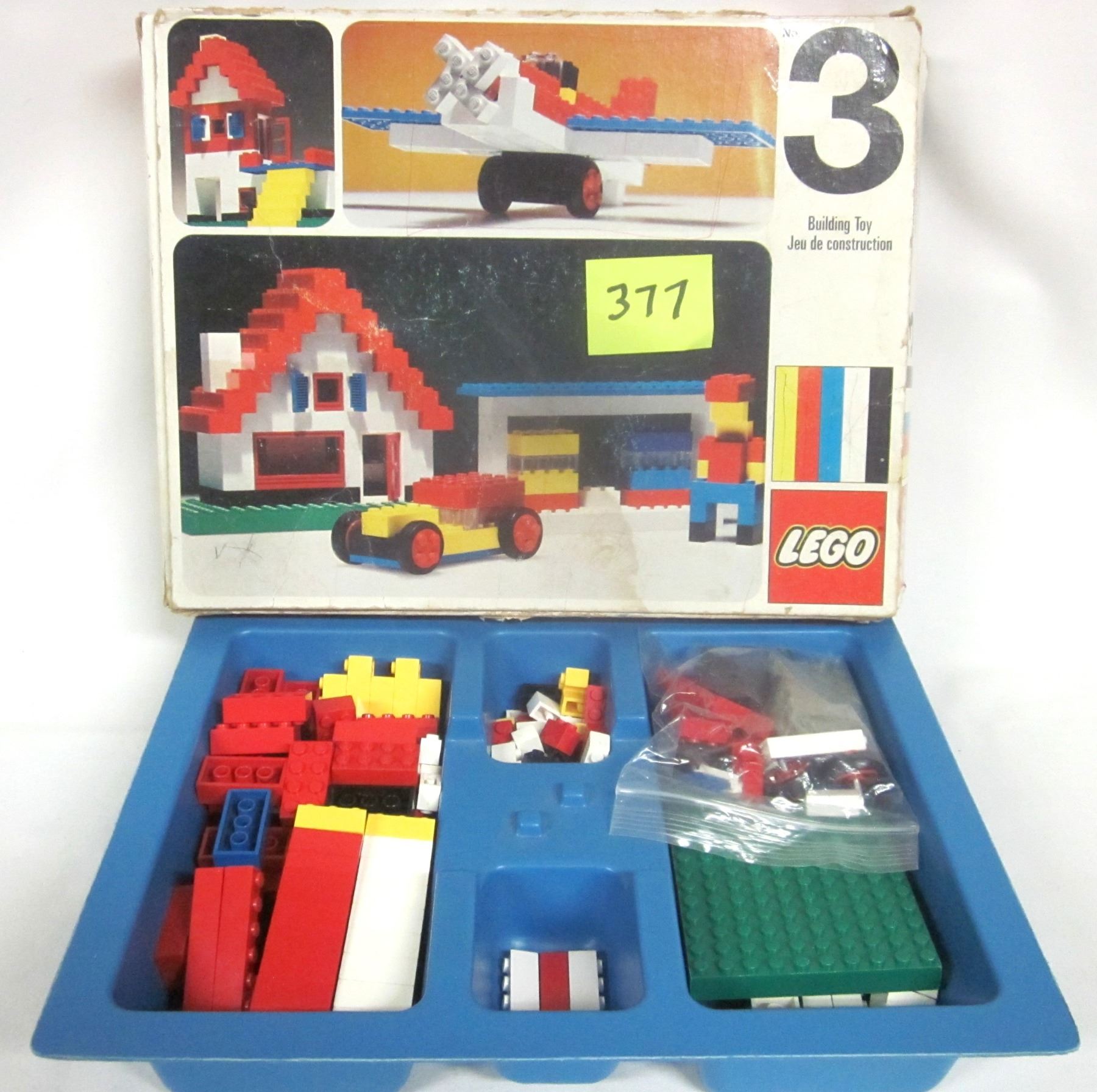Rare Vintage 1973 Samsonite Lego Set #3-4 - w/ box & 184 pcs. blue storage tray 100%