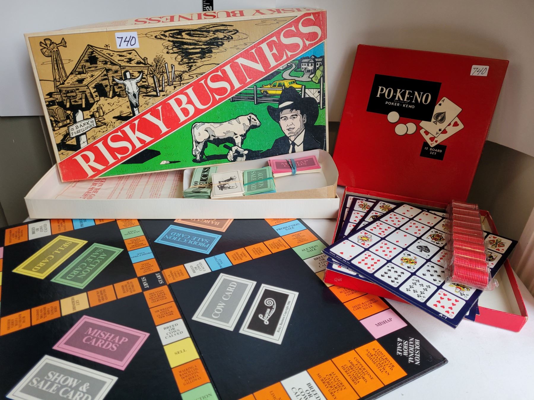 Rare Vintage Risky Business board game + Po-ke-no game.