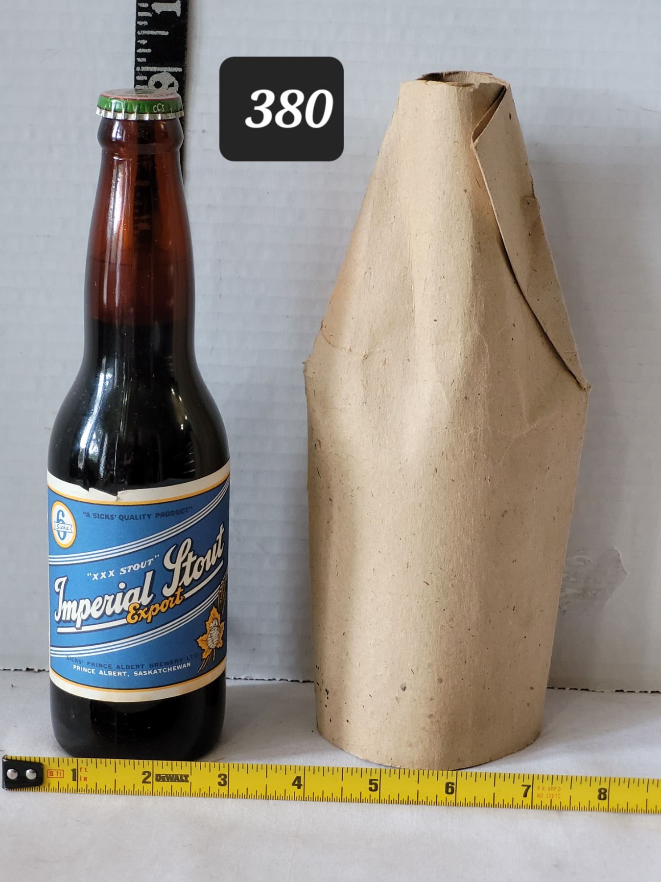 Rare find. Vintage full bottle Imperial Stout. Brewed at Sicks Brewery Ltd. Prince Albert Sk. Original carry out brown cover.