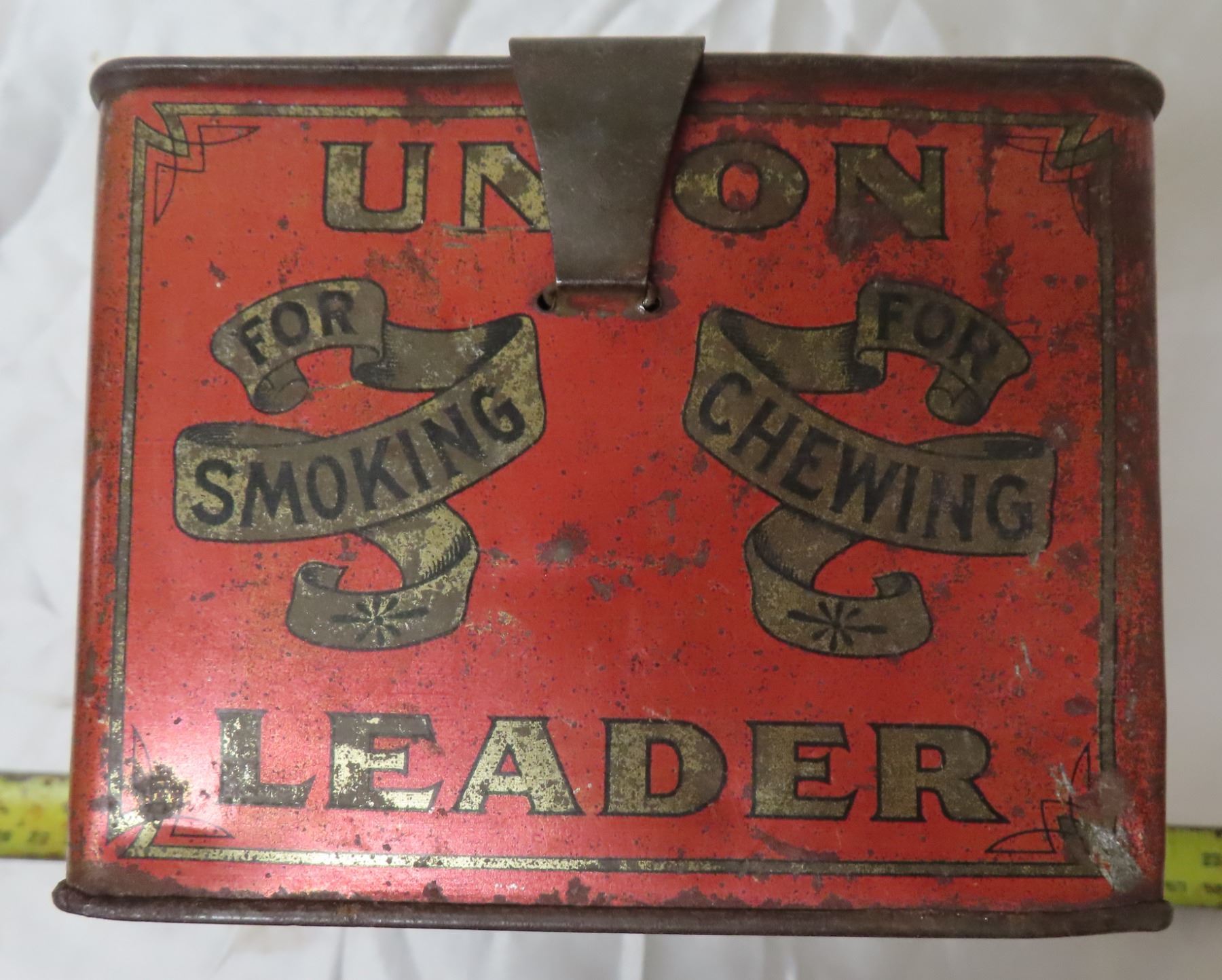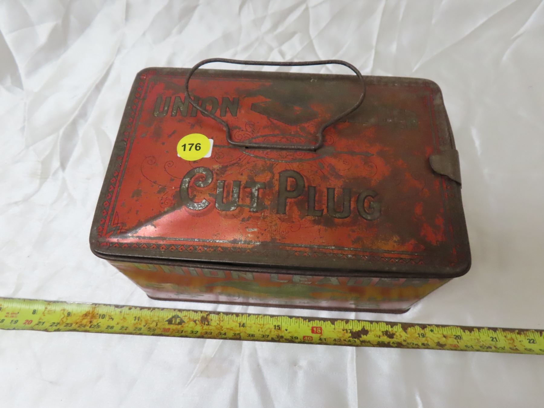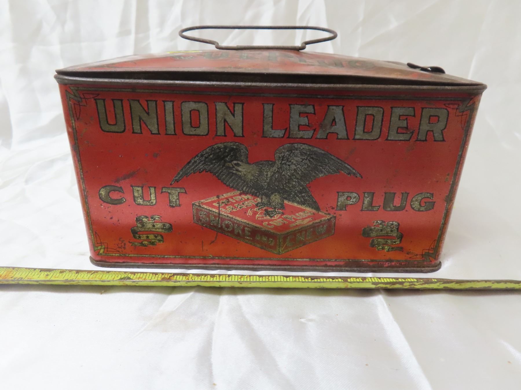 Rare union leader cut plug tobacco " lunch pail" tin