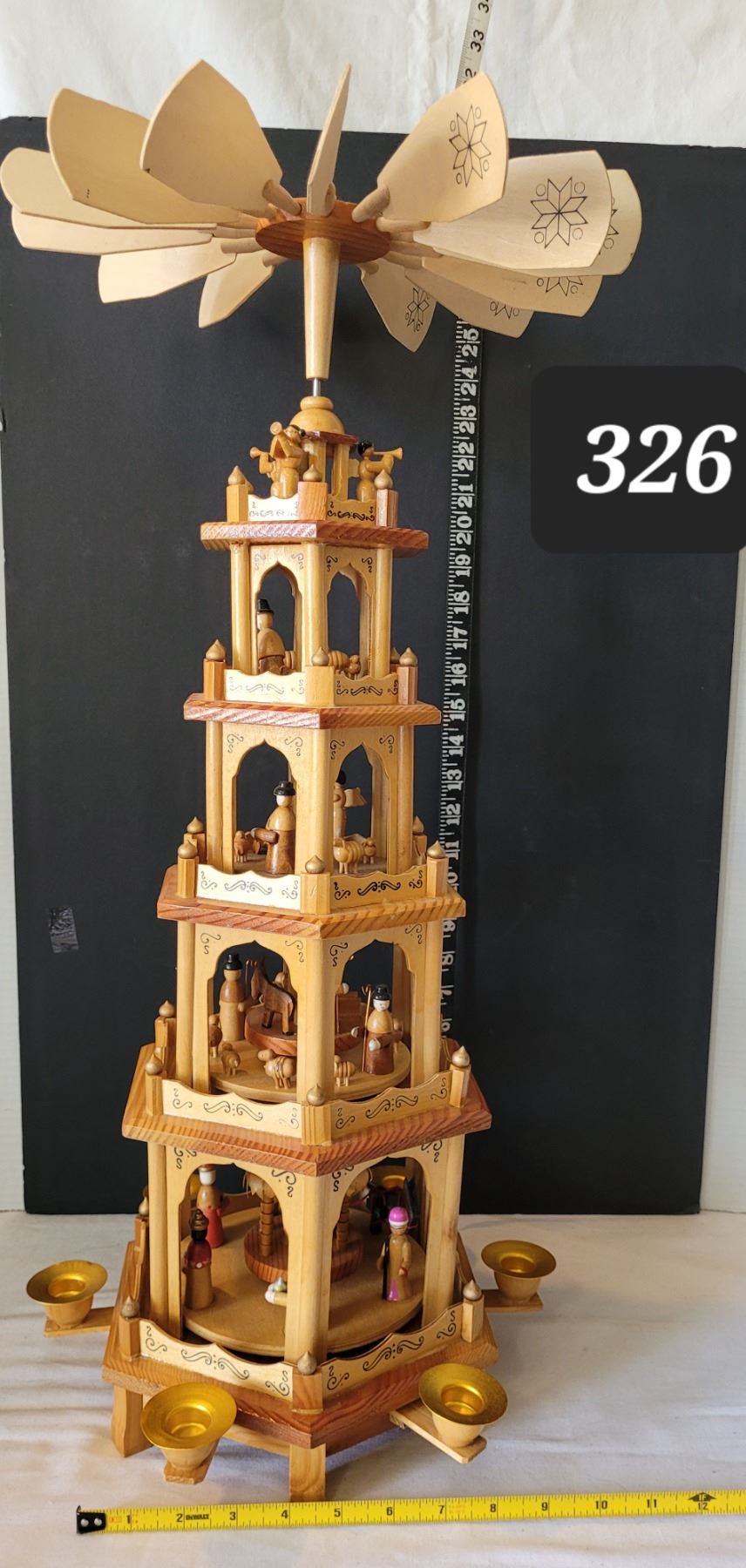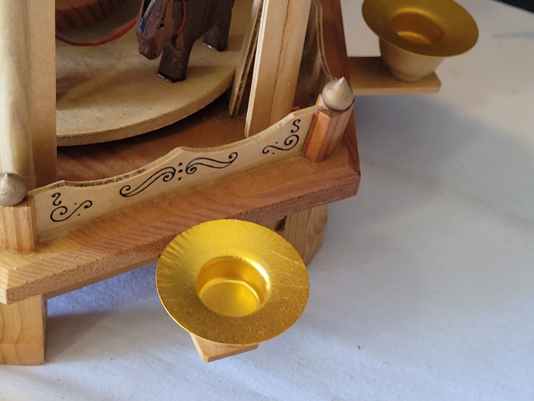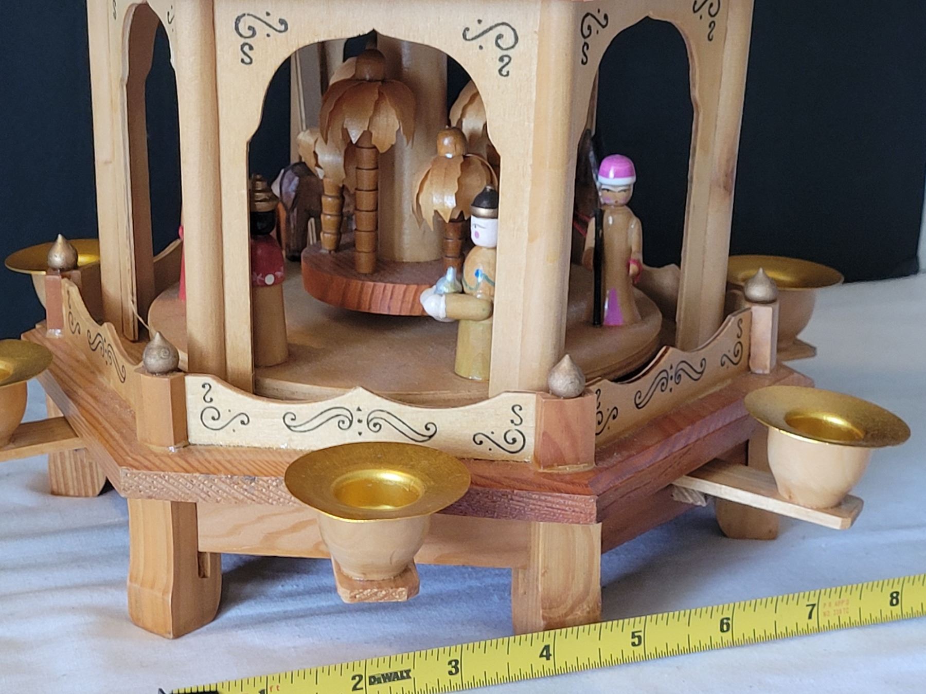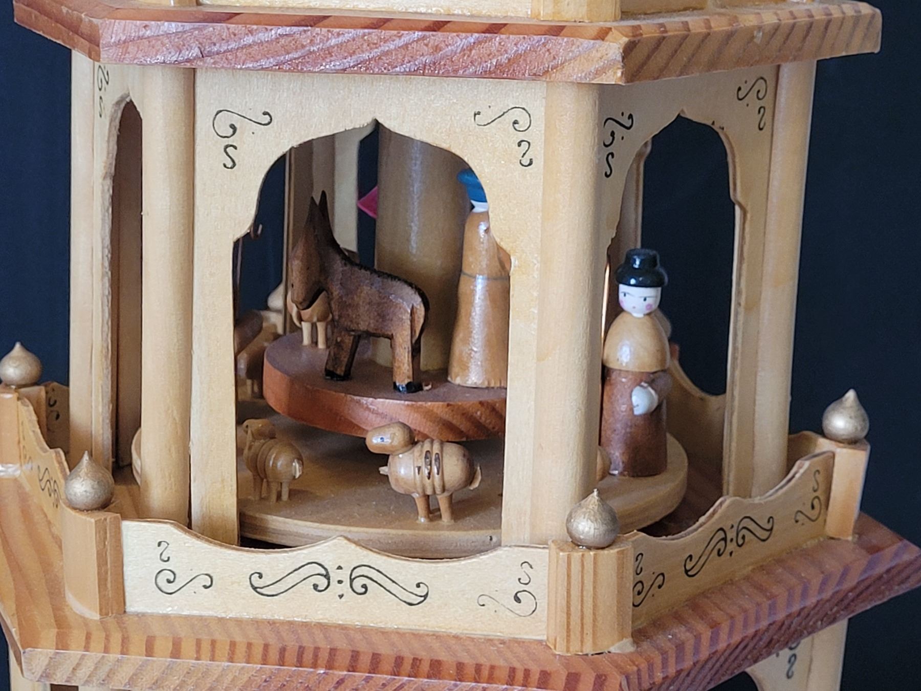 Rare, vintage, wooden 5 tier German Traditional Pyramid. Nativity scene Christmas carousel.