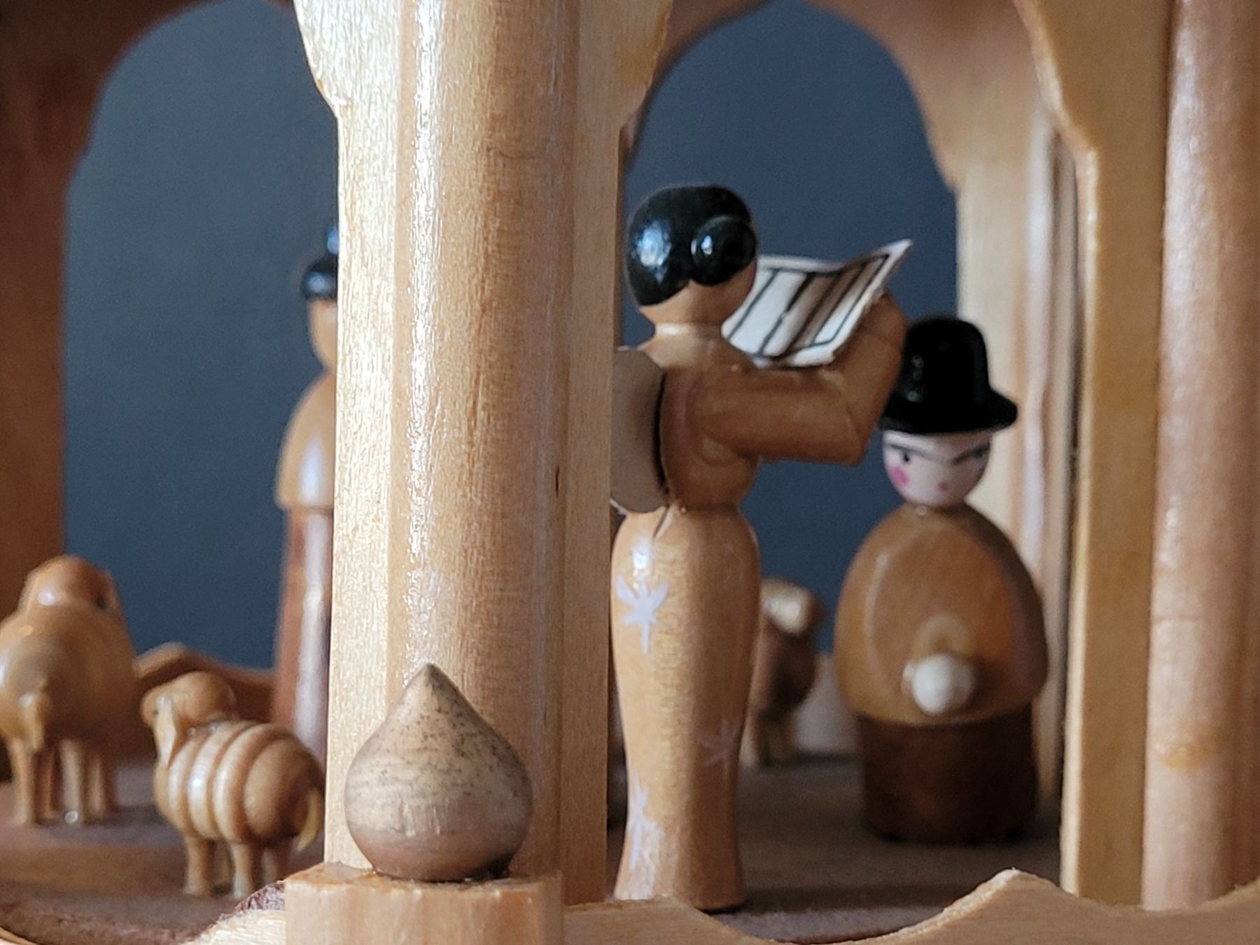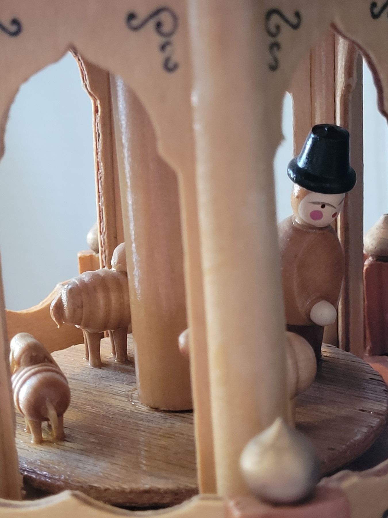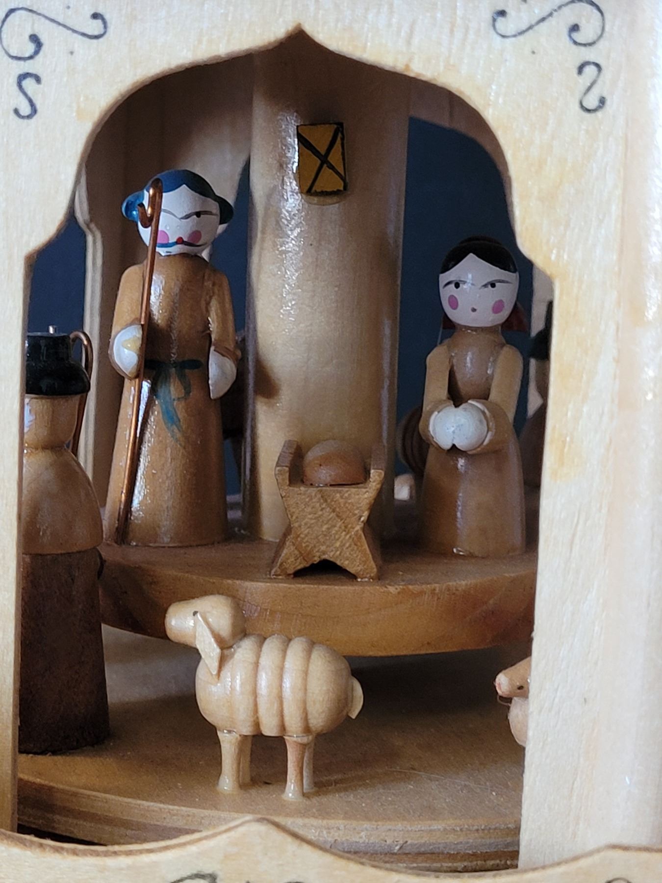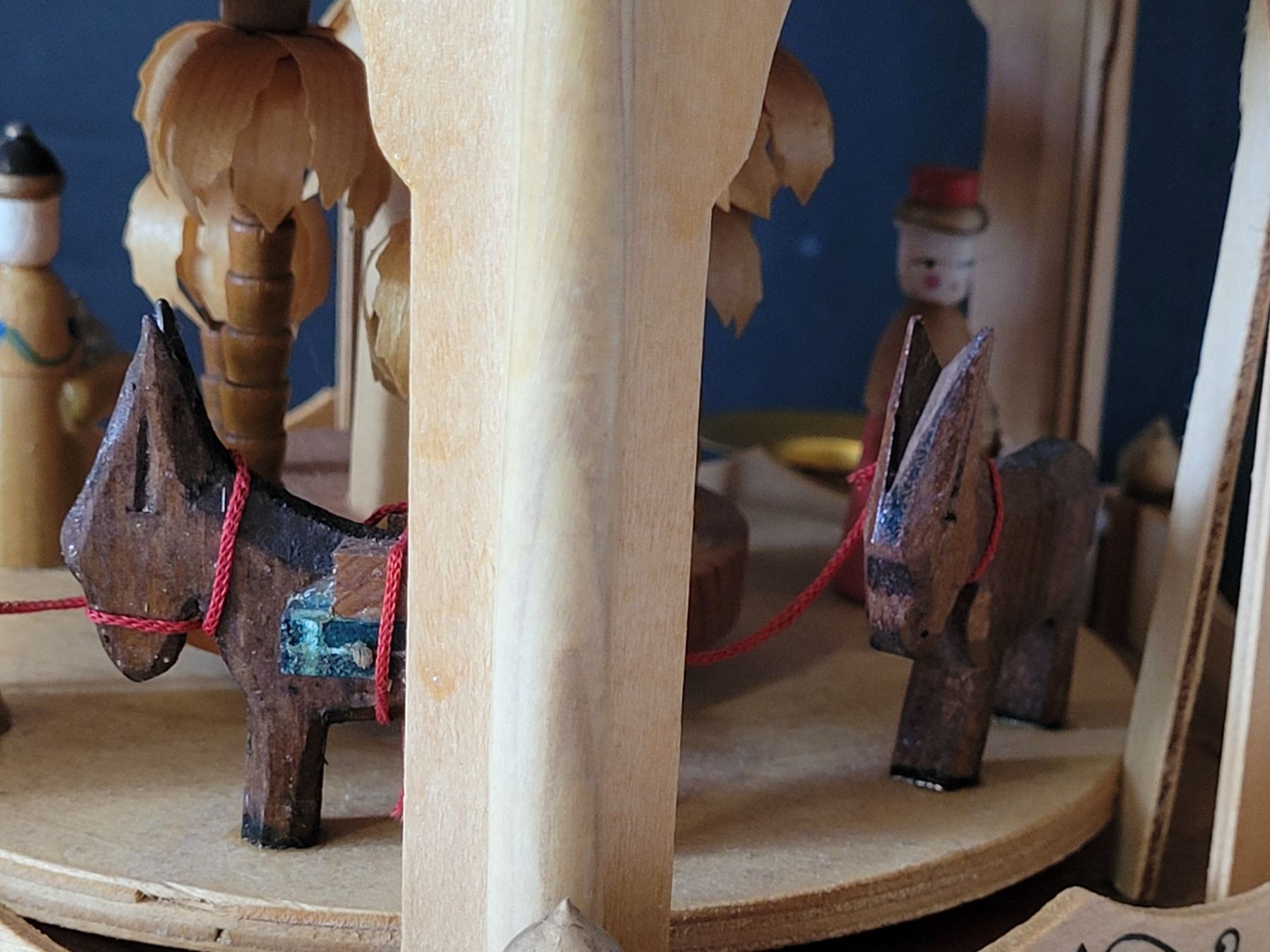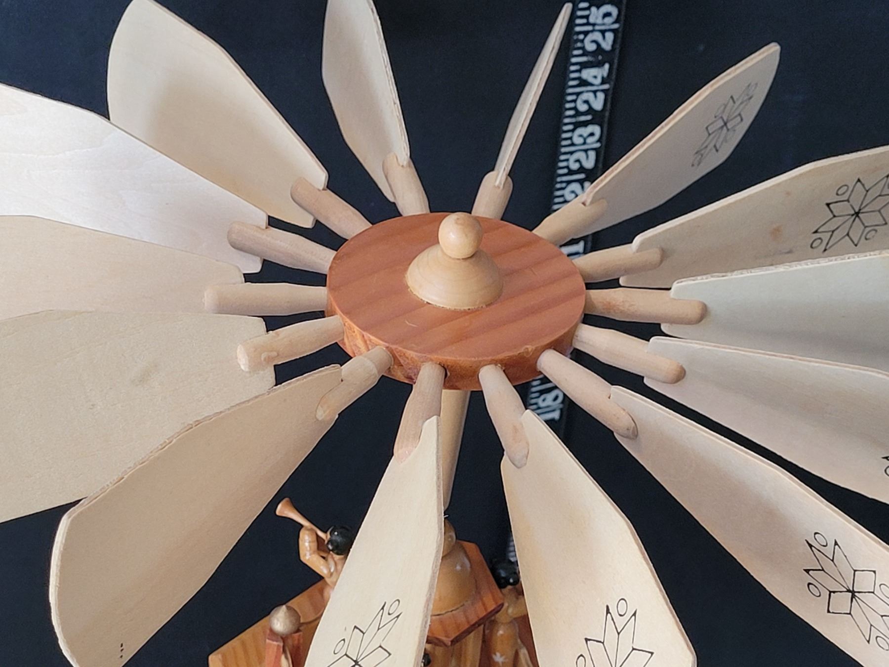 Rare, vintage, wooden 5 tier German Traditional Pyramid. Nativity scene Christmas carousel.