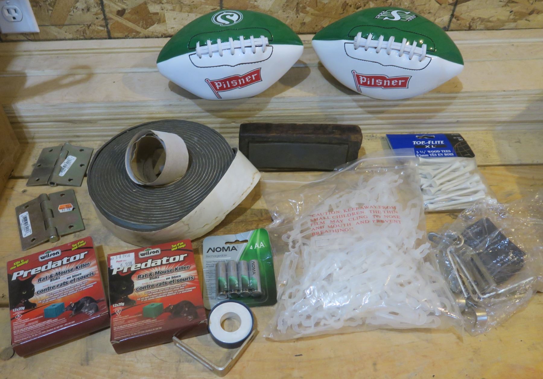Rat Killer, Foam Tape, Roughrider/Pilsner Footballs, Golf Tees, Clips, Etc.