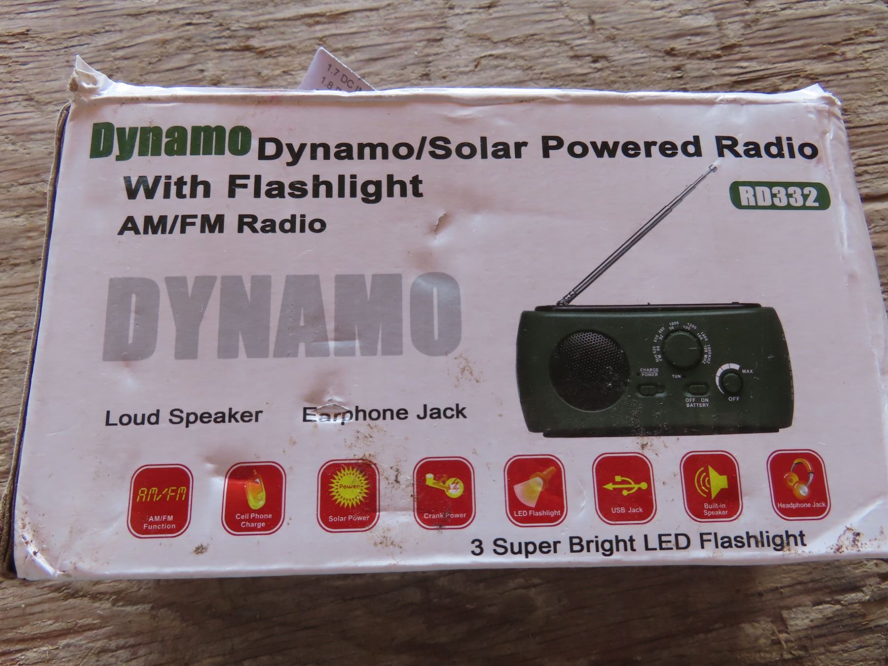 Reclining Fold Up Camping Chair with bag, Propane Camp Grill, Black and Decker Snake Light, Solar Power Radio with Flashlight, Trailer Hitch Lock
