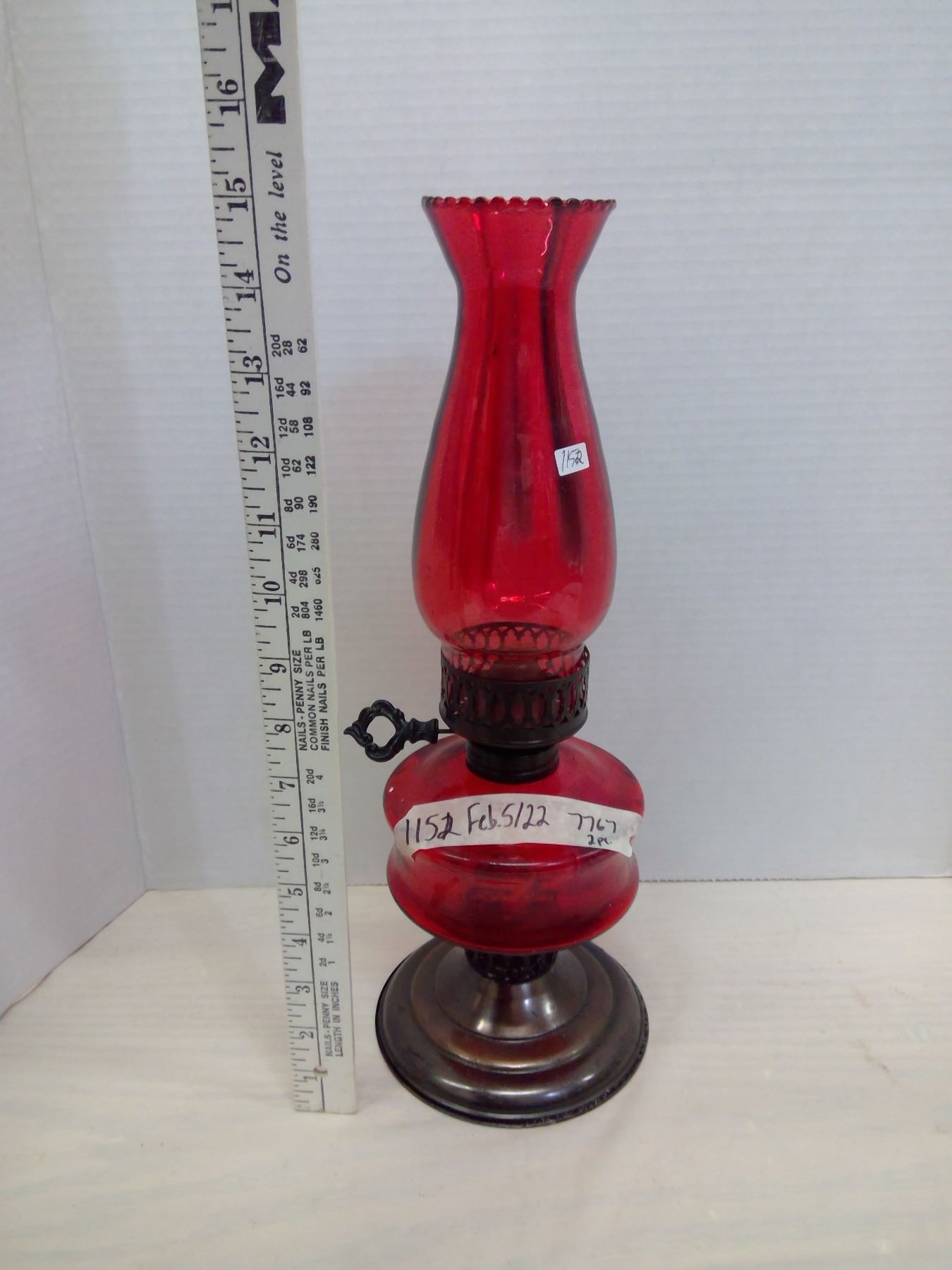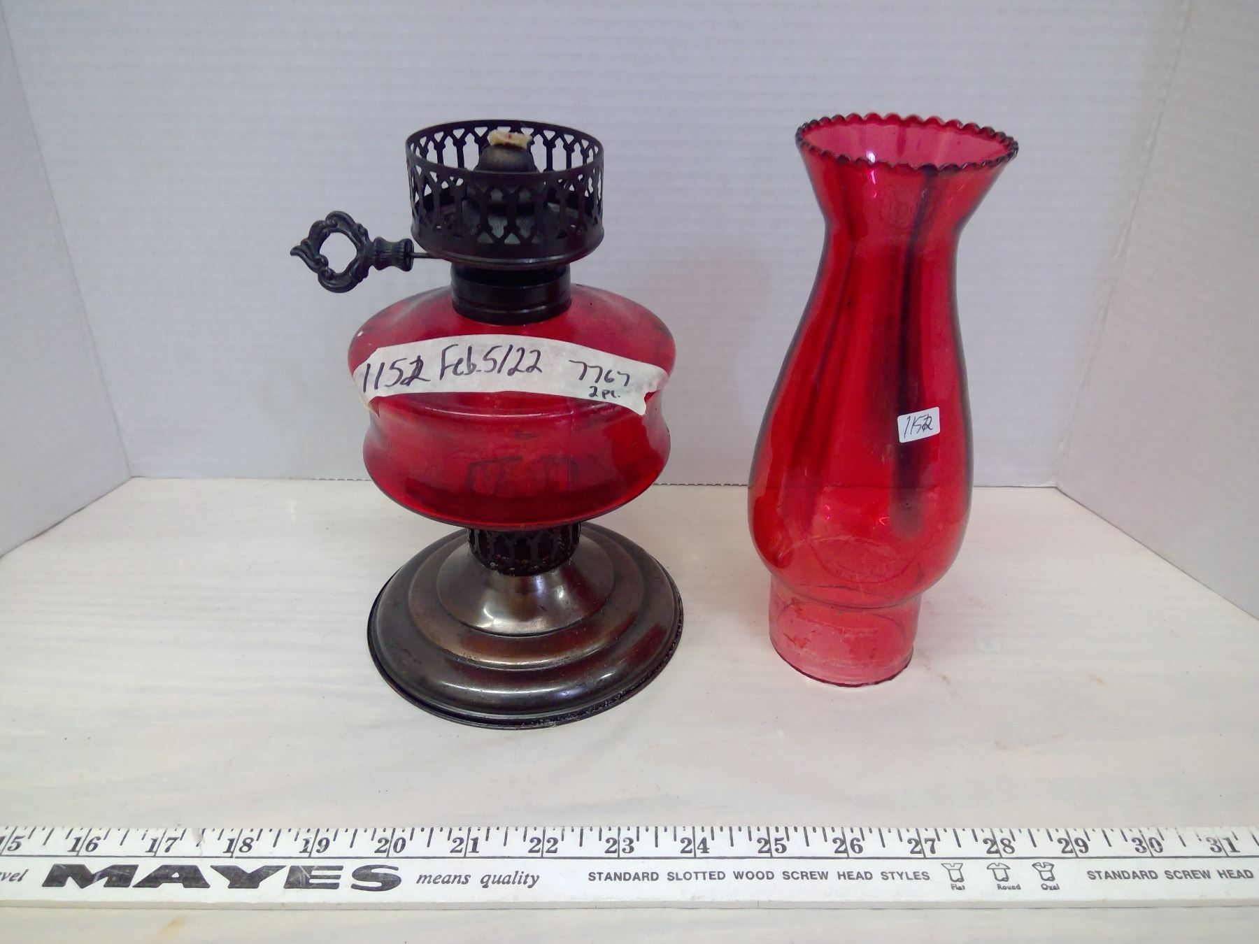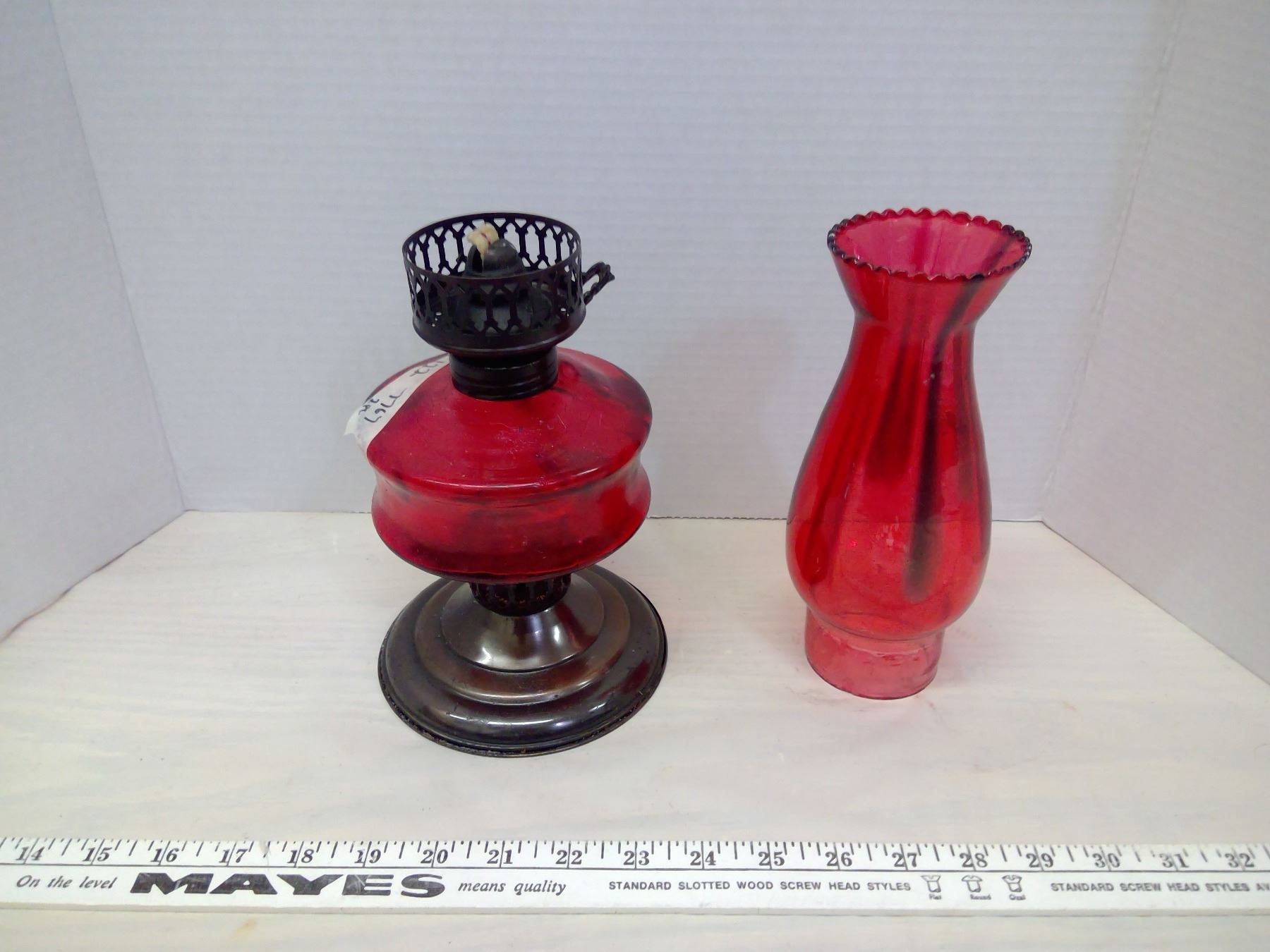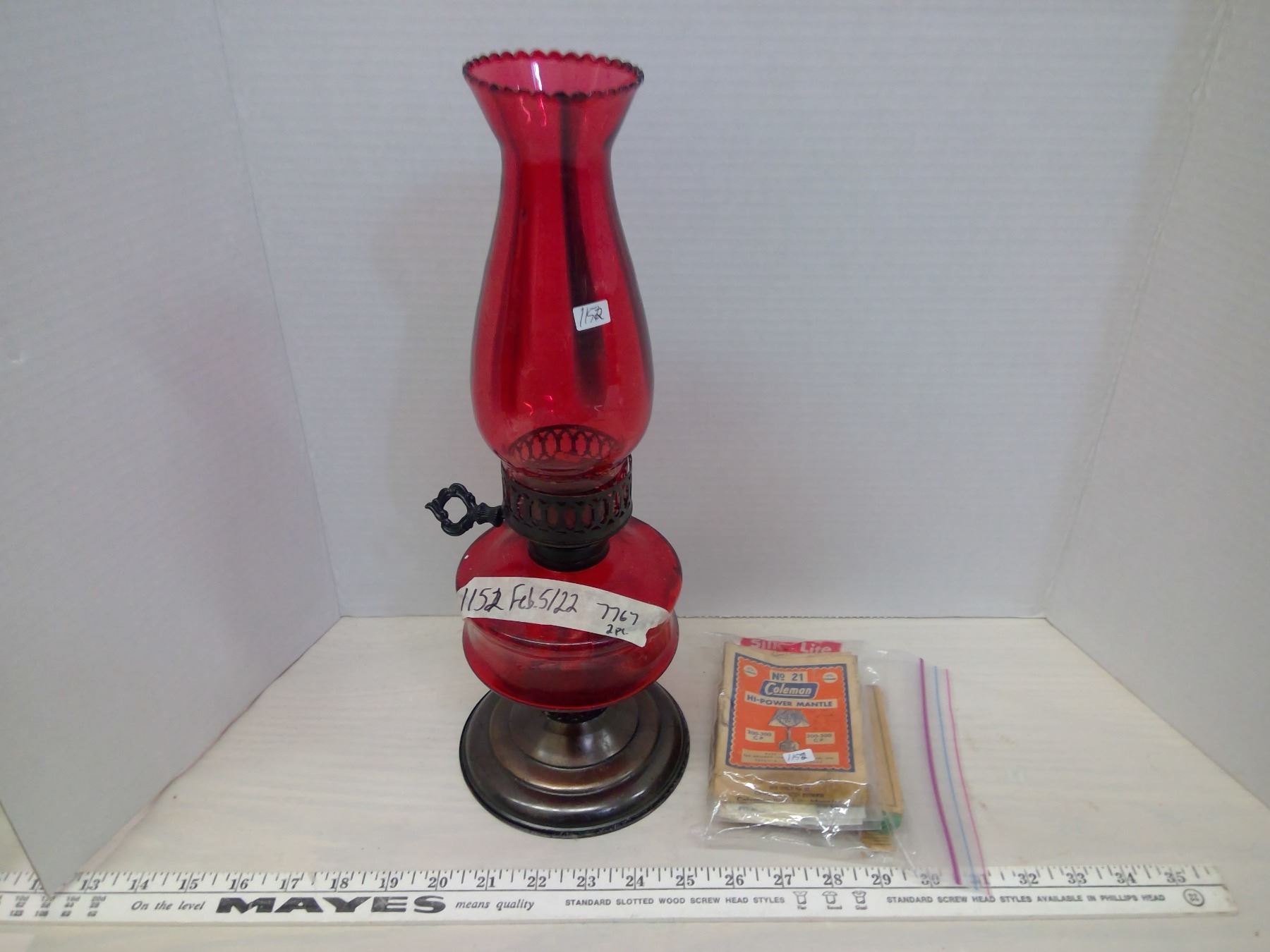 Red Glass Oil Lamp w/ Chimney, 4 Opened Packs Mantle