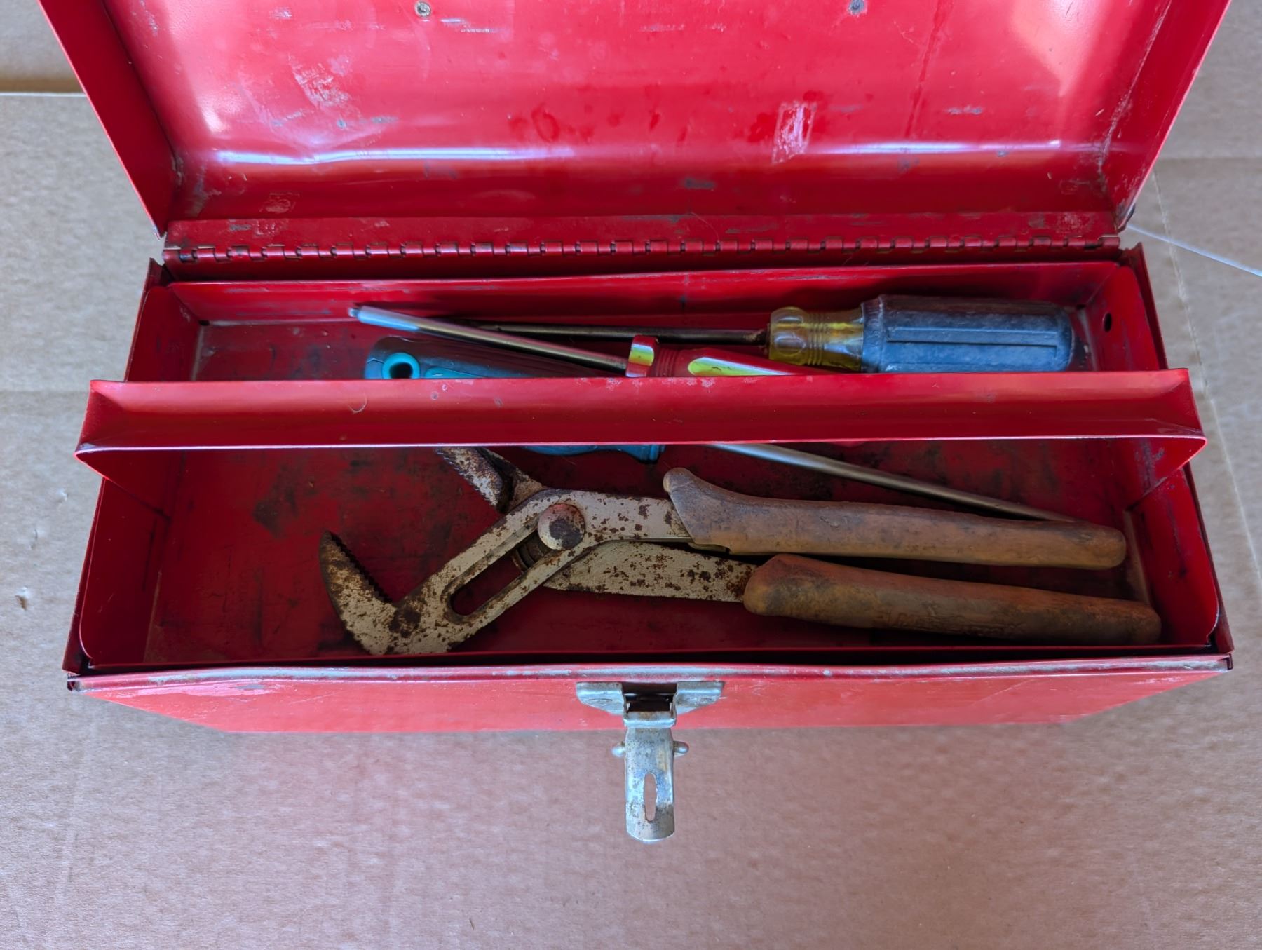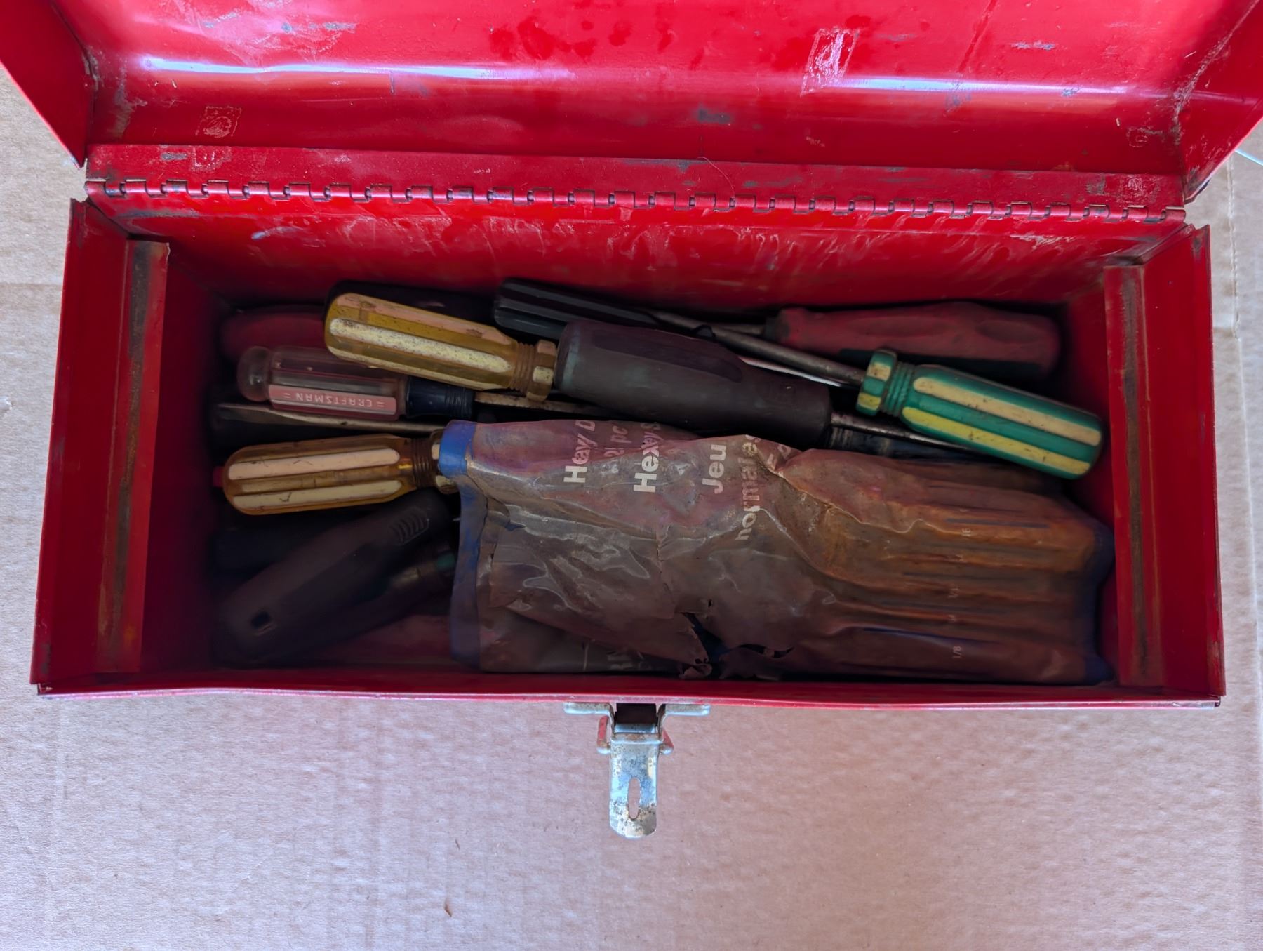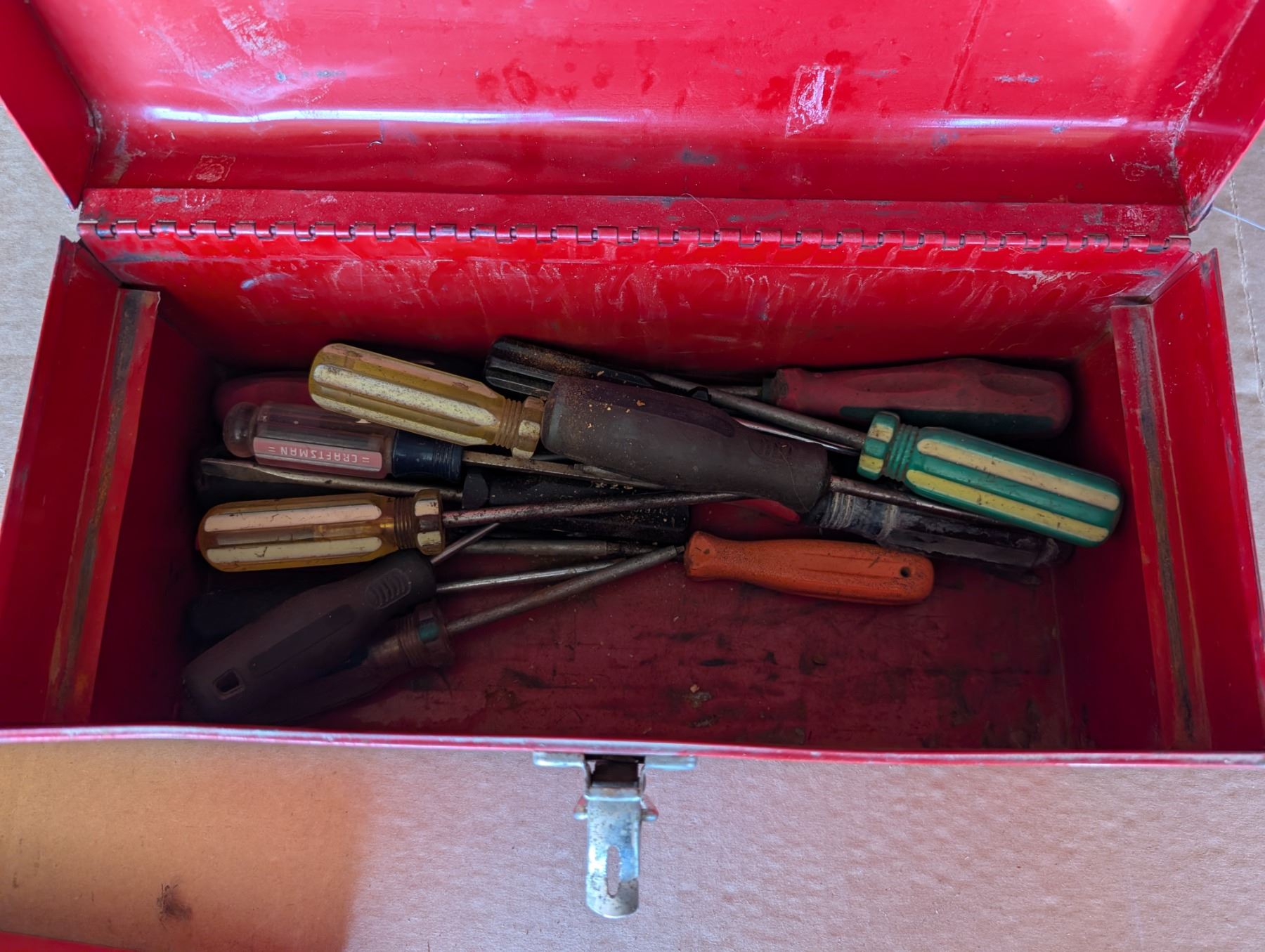 Red Tool Box 14"x5"x6" W/ misc. Screw Drivers