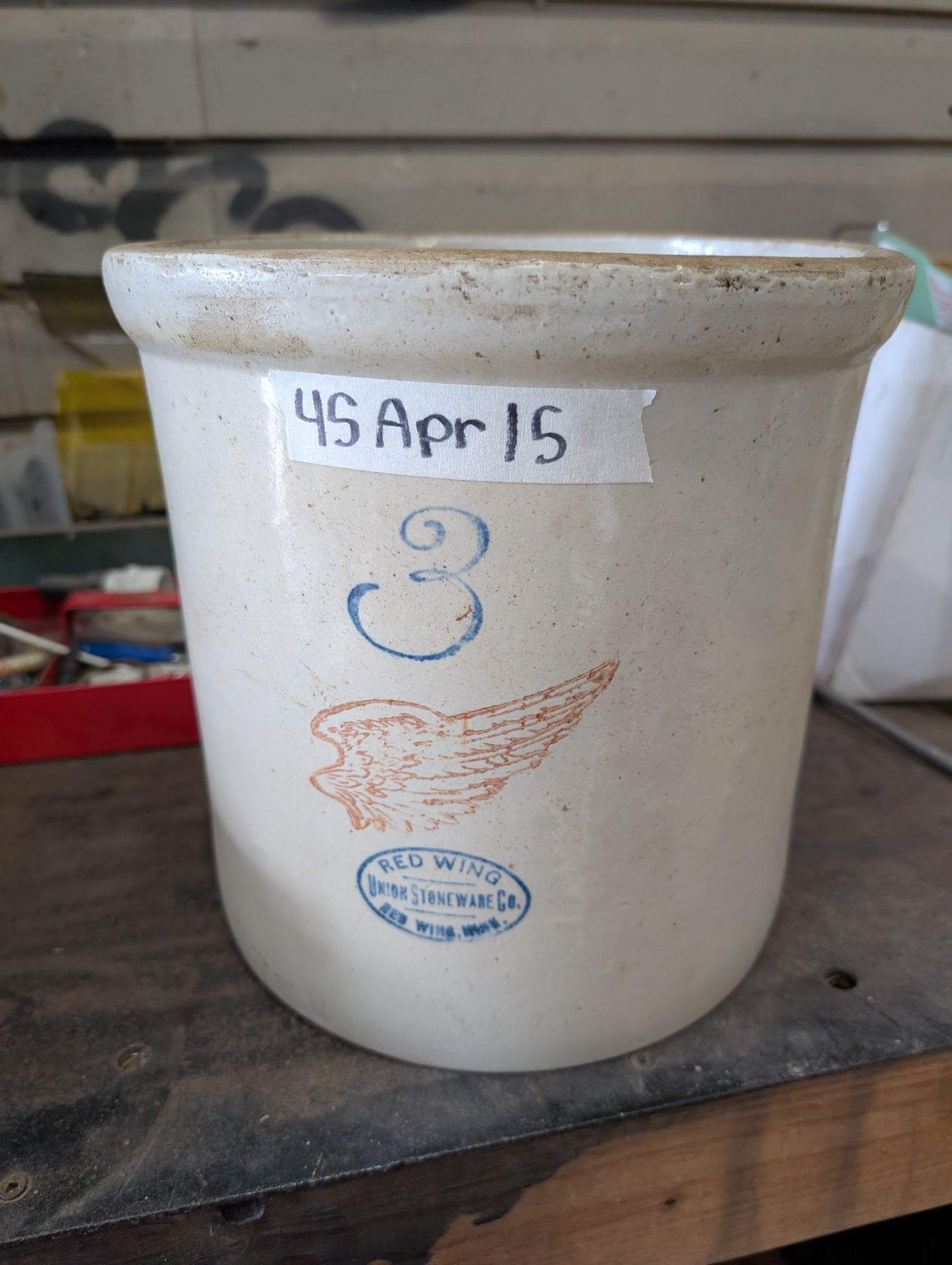 Red Wing Marked 3 Union Stoneware Co. Crock