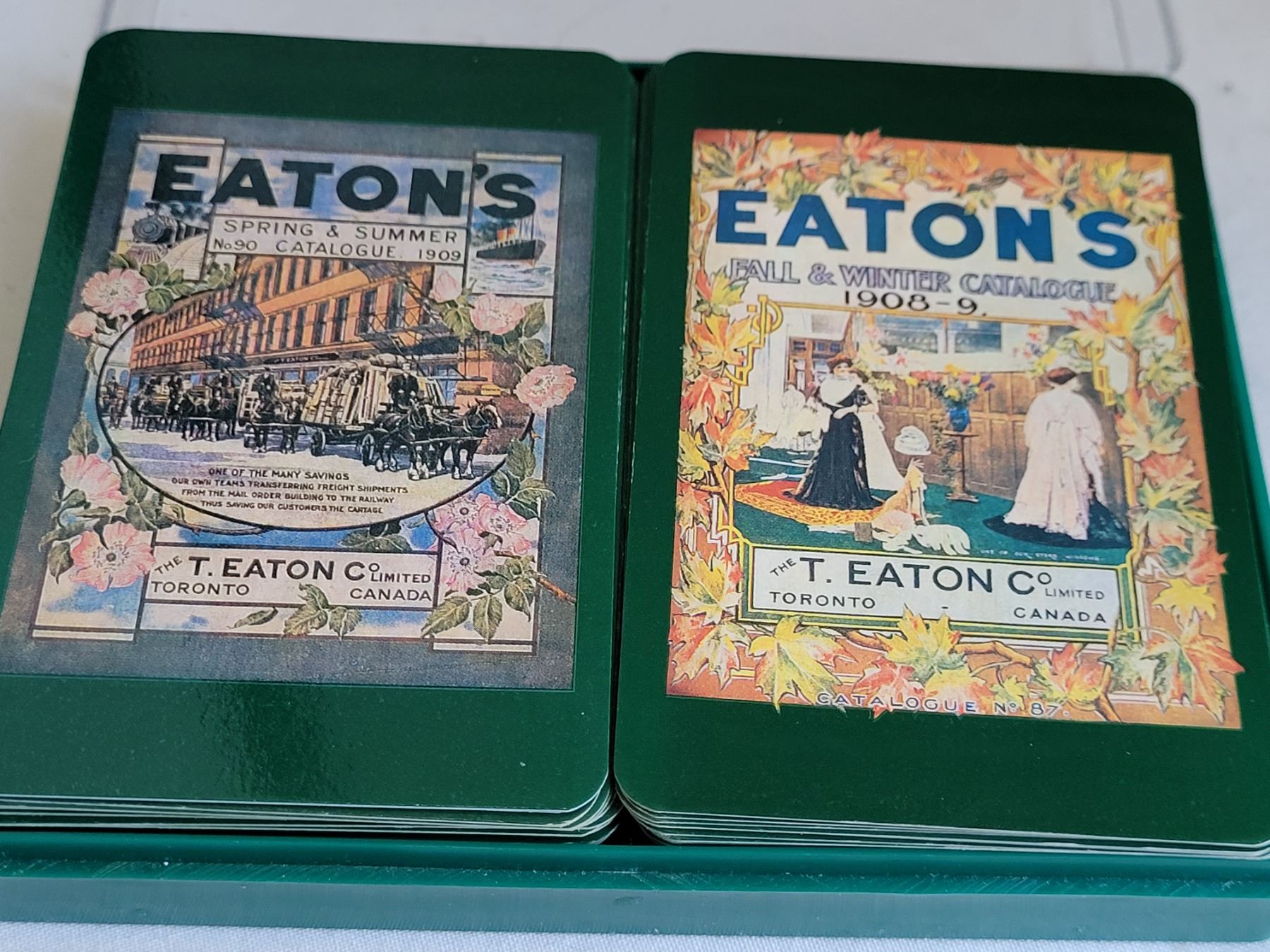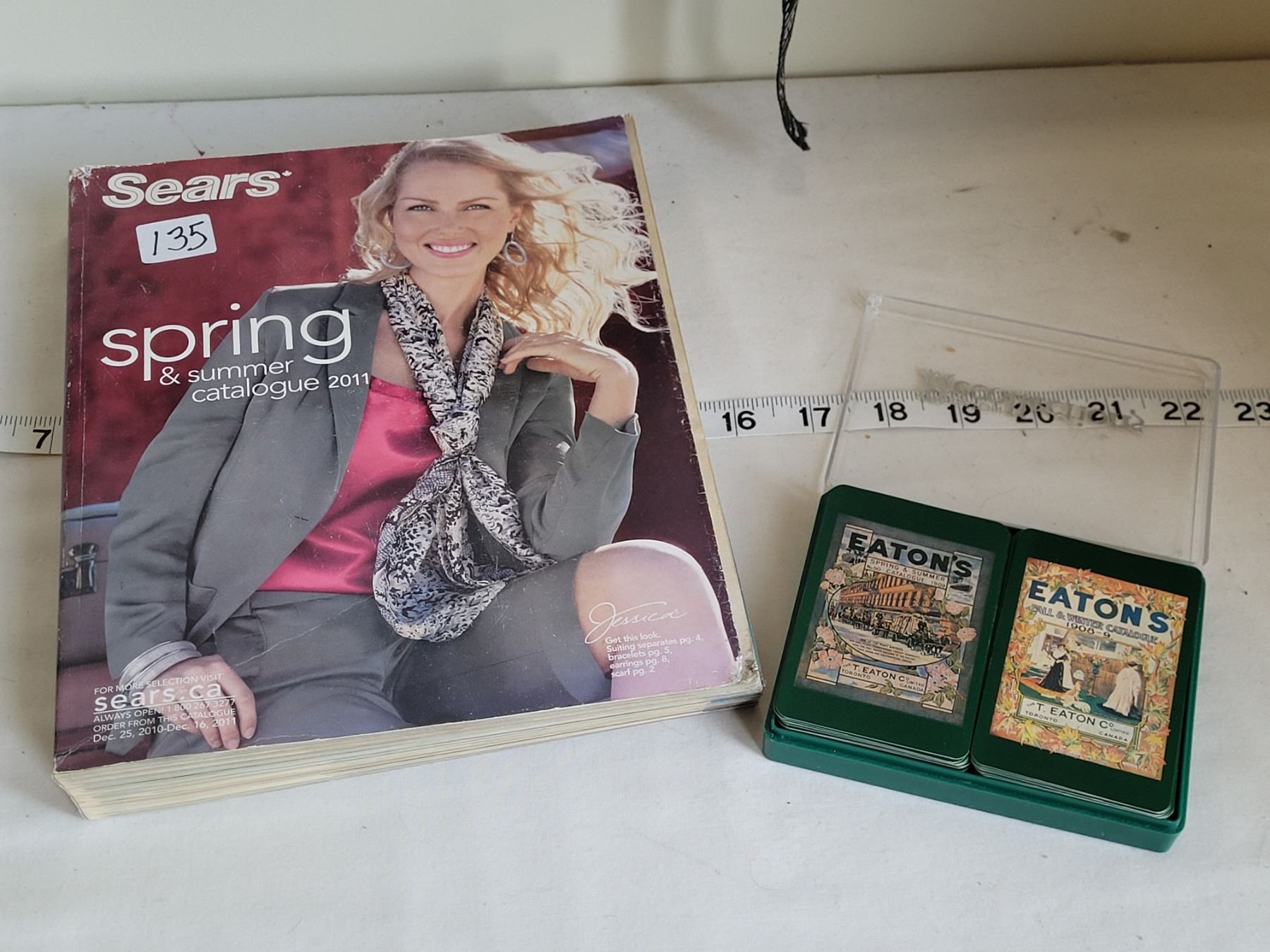 Replica Eaton's 1909 catalogue cover playing cards & a Sears catalogue.
