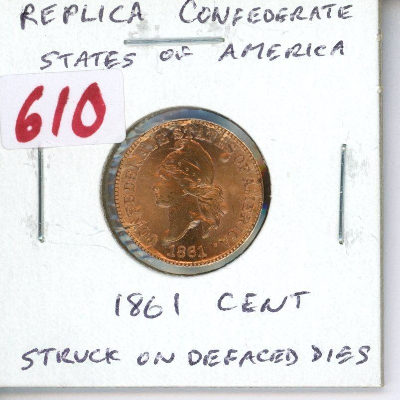 Replica of Confederate States of American 1861 Cents. Struck on Defaced Dies.
