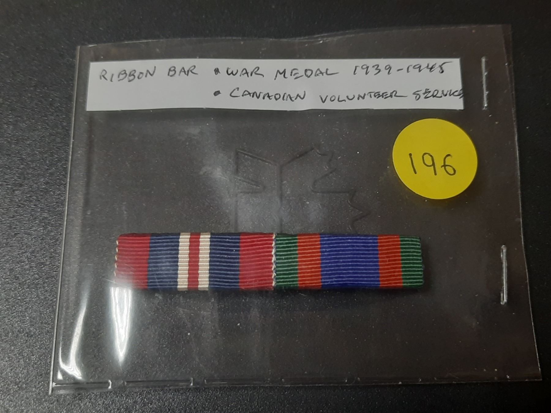 Ribbon Bar with War Medal 1939-1945 and Canadian Volunteer Service Medal.