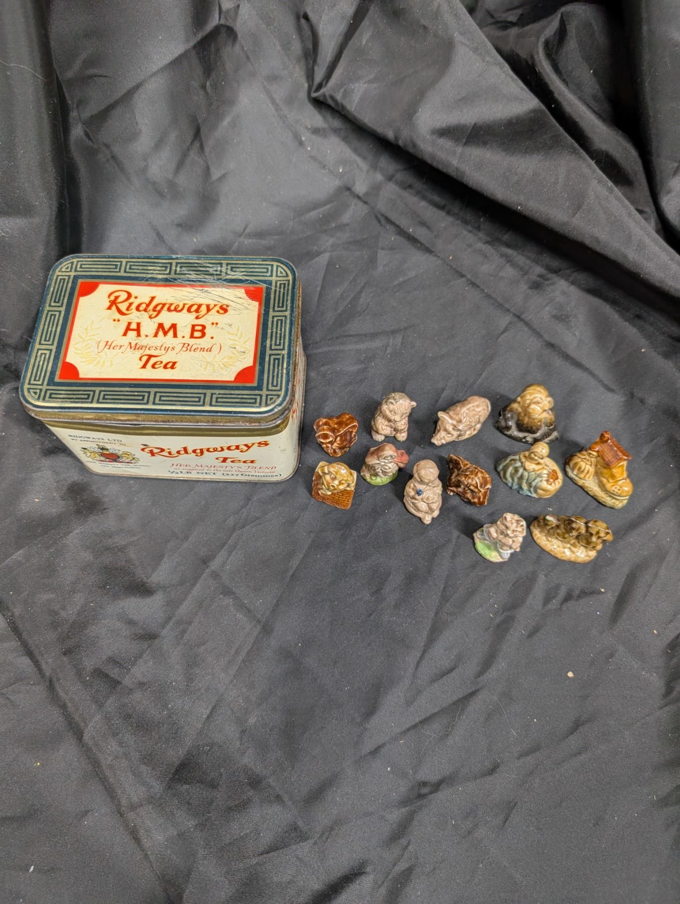 Ridgway's "H.M.B" Tea Tin/(12) Minatare Animals/fantasy/people statues
