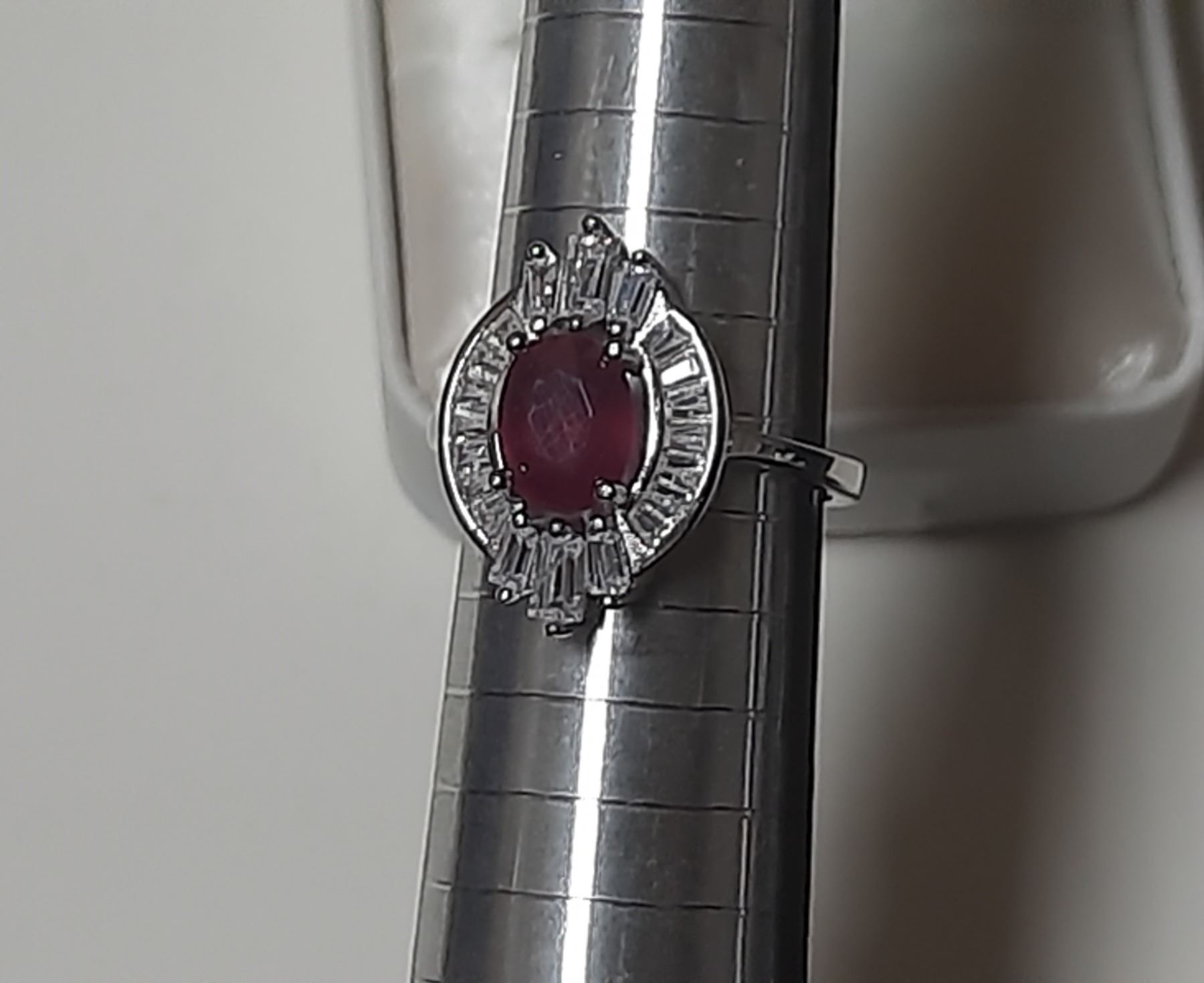 Ring Rhodium Plated St. Silver, 4.05gm - Ruby 1.6cts R 125 - Size 7.
