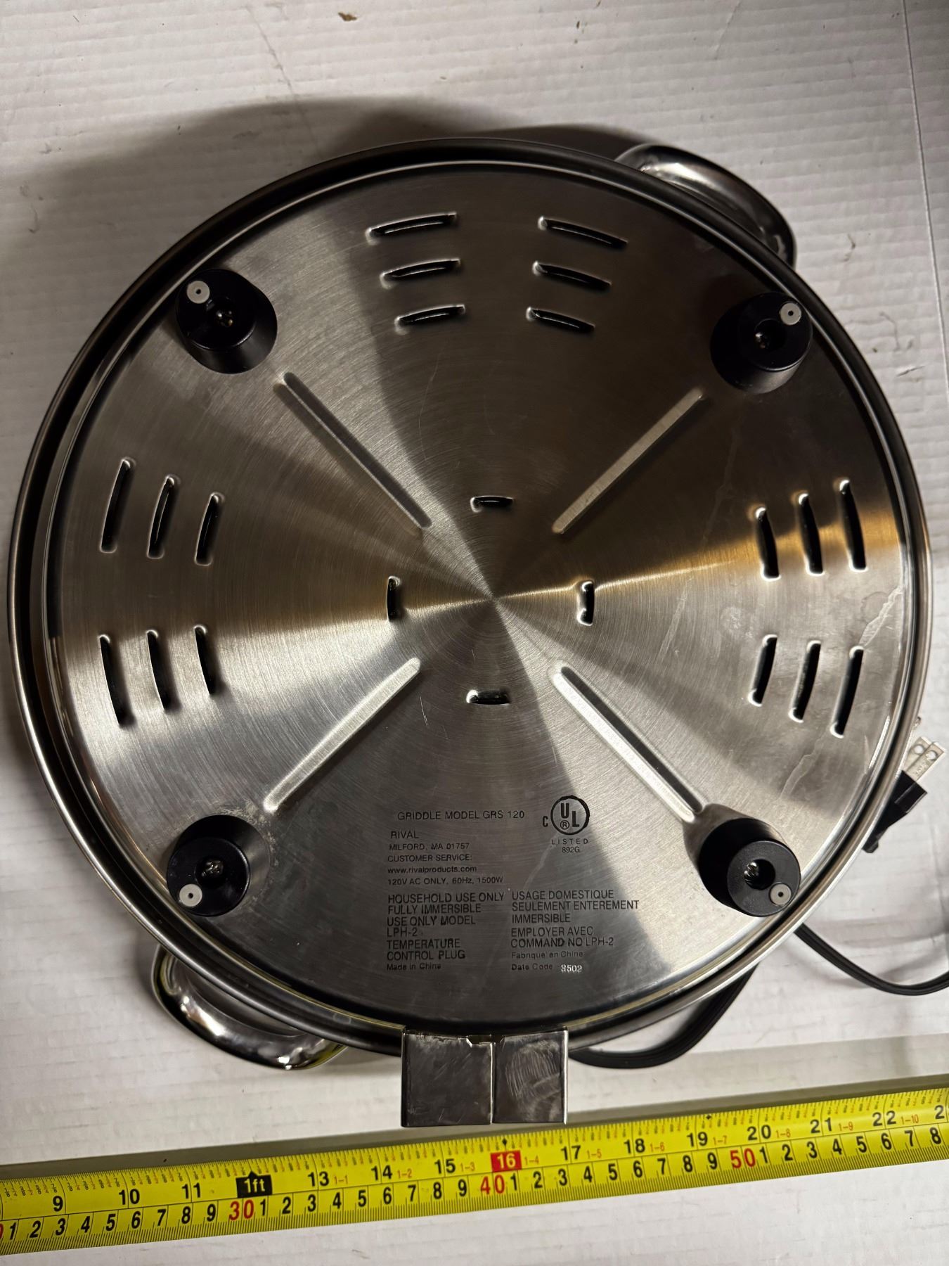 Rival 12" Large Round Stainless Steel Electric Skillet/Griddle.