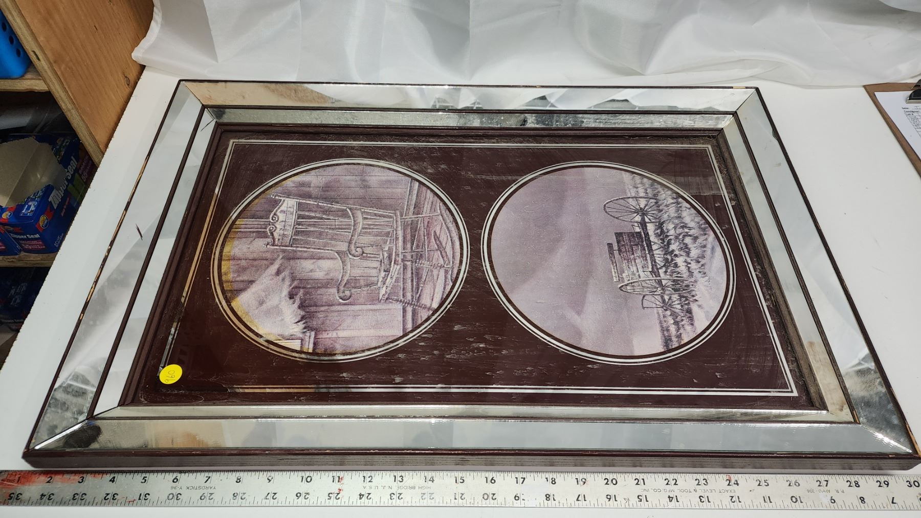Rocking chair and Wagon picture - Glass and wood frame - 28"H x 18"W