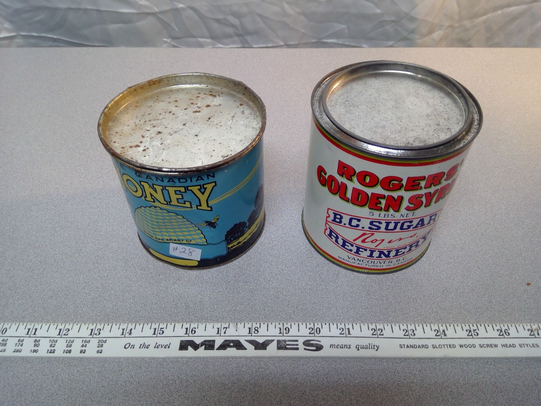 Rogers Golden syrup tin and Pure Canadian Honey tin, Ontario, circa 1922