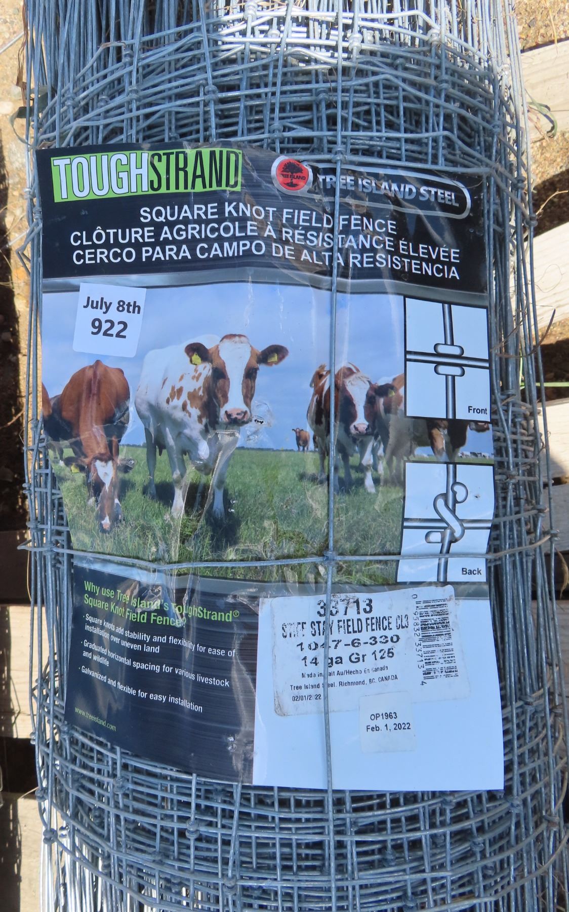 Roll of Tough Strand Square knot field fence 33713 14ga Gr125 - 50" high