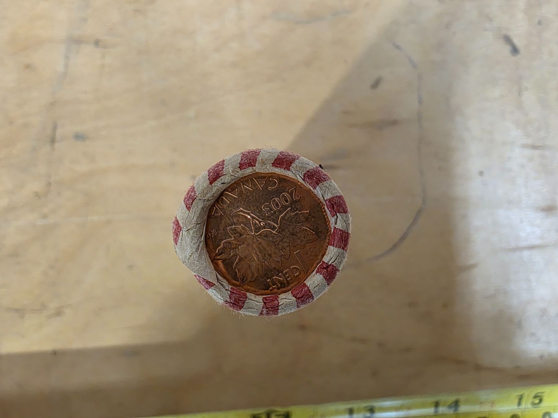 Roll of canadian pennies- various years