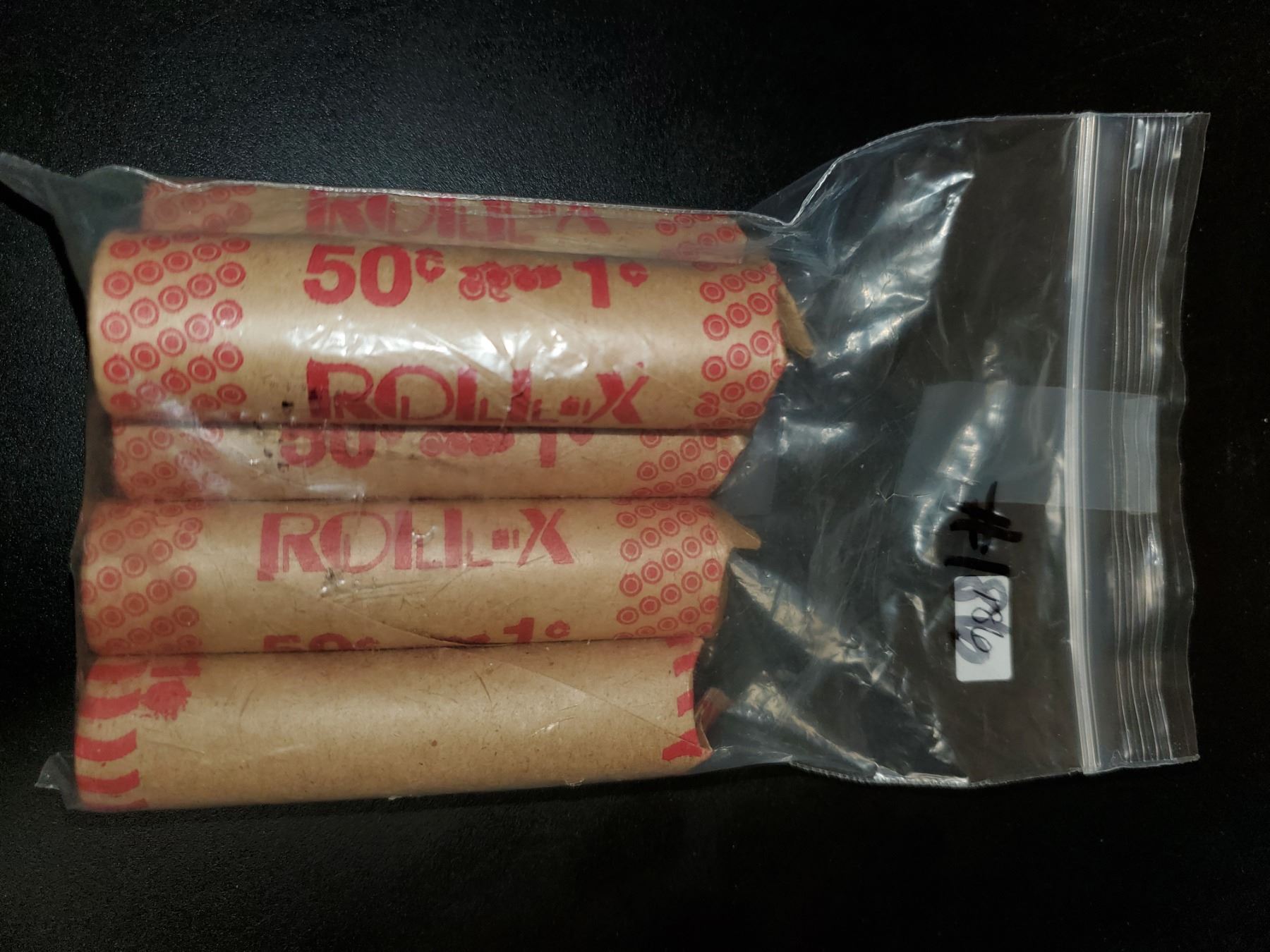 Rolls of pennies, some old, some USA??,250-Small mixed pennies,Queen Elizabeth II and USA