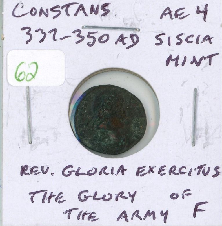 Roman Empire. Constans. 337-350. Bronze AE-4. Siscia Mint. Rev: Gloria Exercitus. The Glory of the Army. Fine.