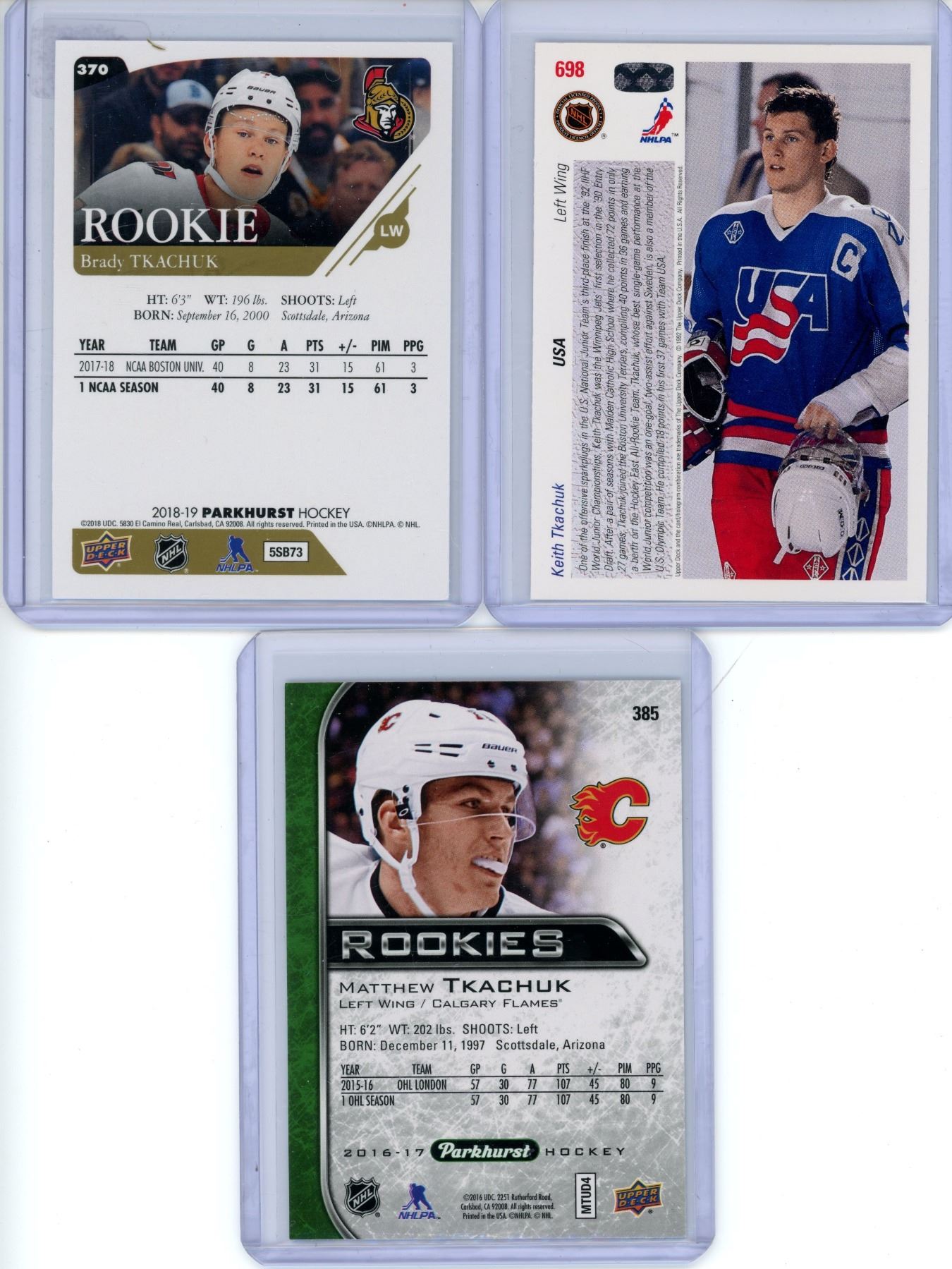 Rookie cards for Keith, Matthew & Brady Tkachuk