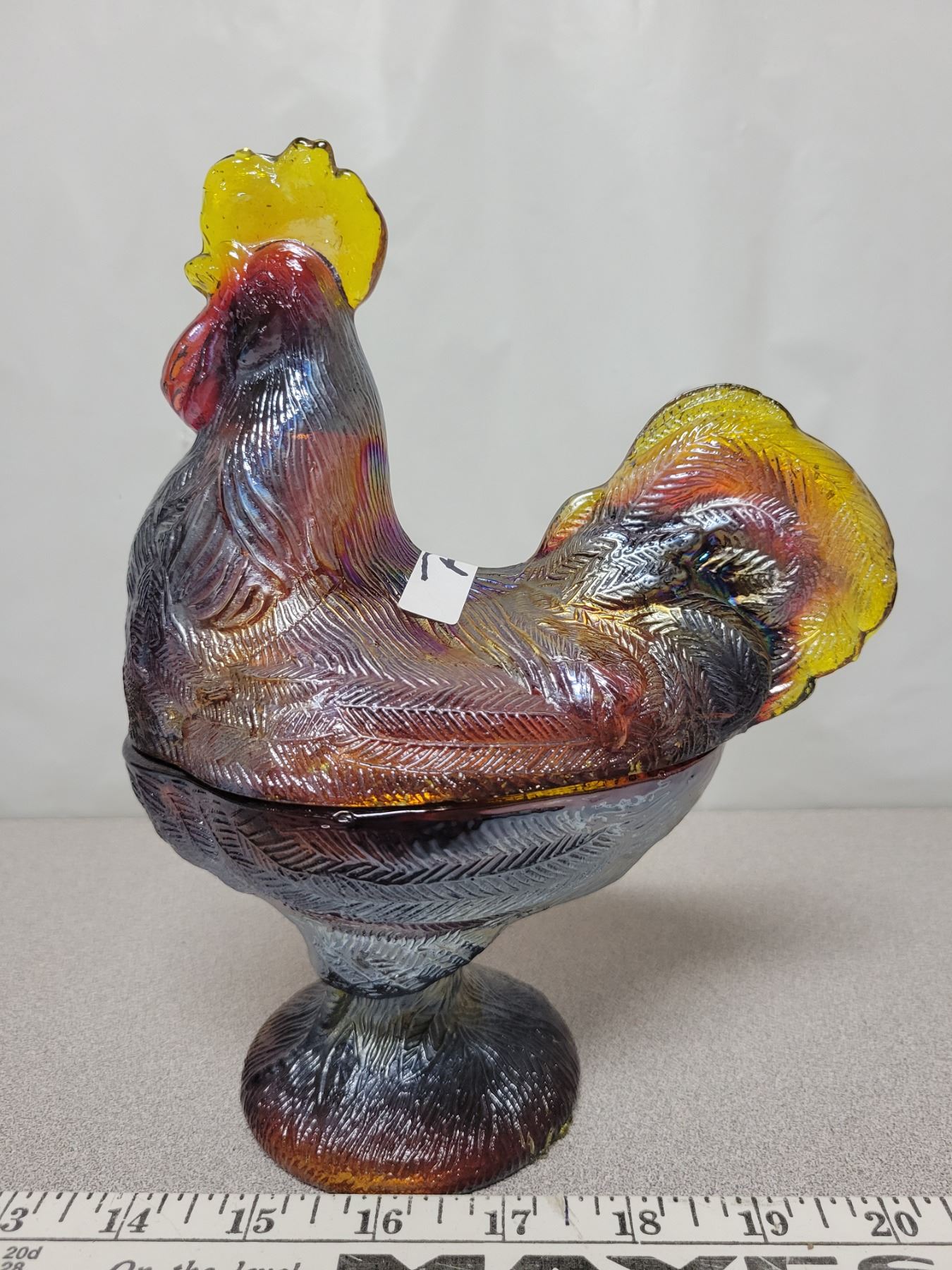 Rooster on nest iridescent carnival red tiny glass no chips or cracks