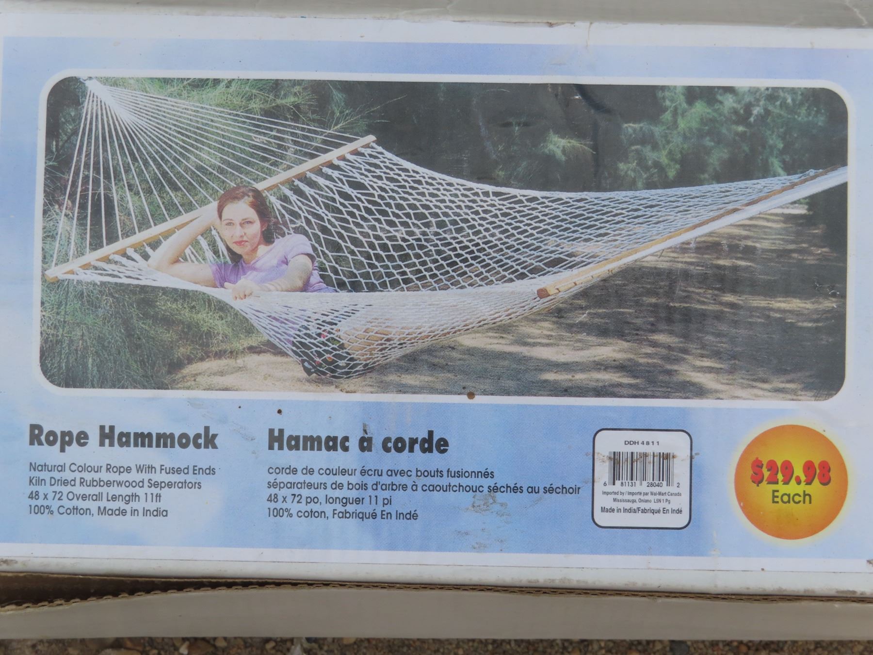 Rope Hammock - 48"x72" overall length 11ft - 100% cotton