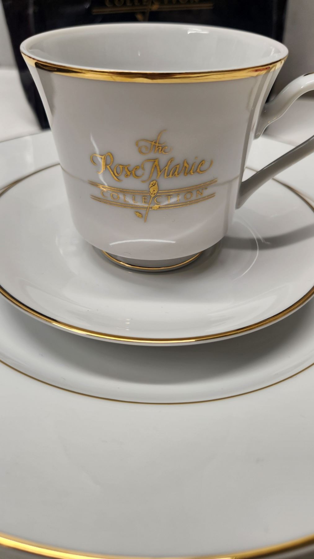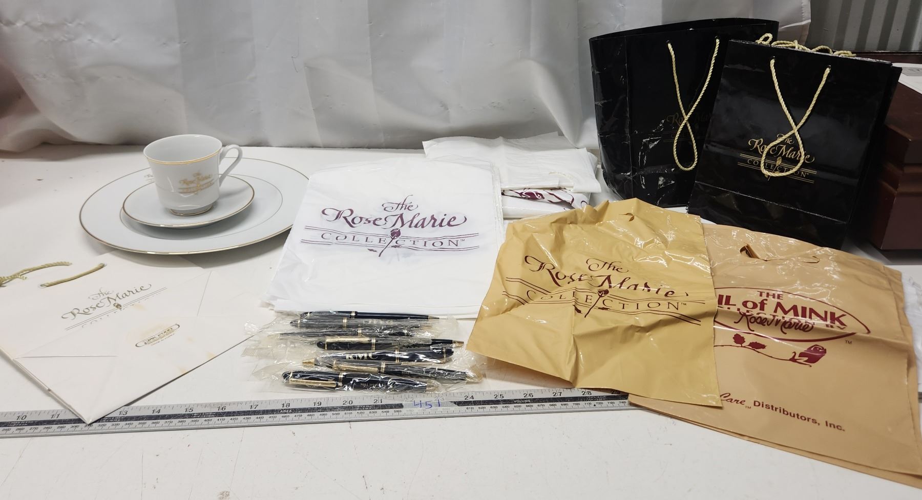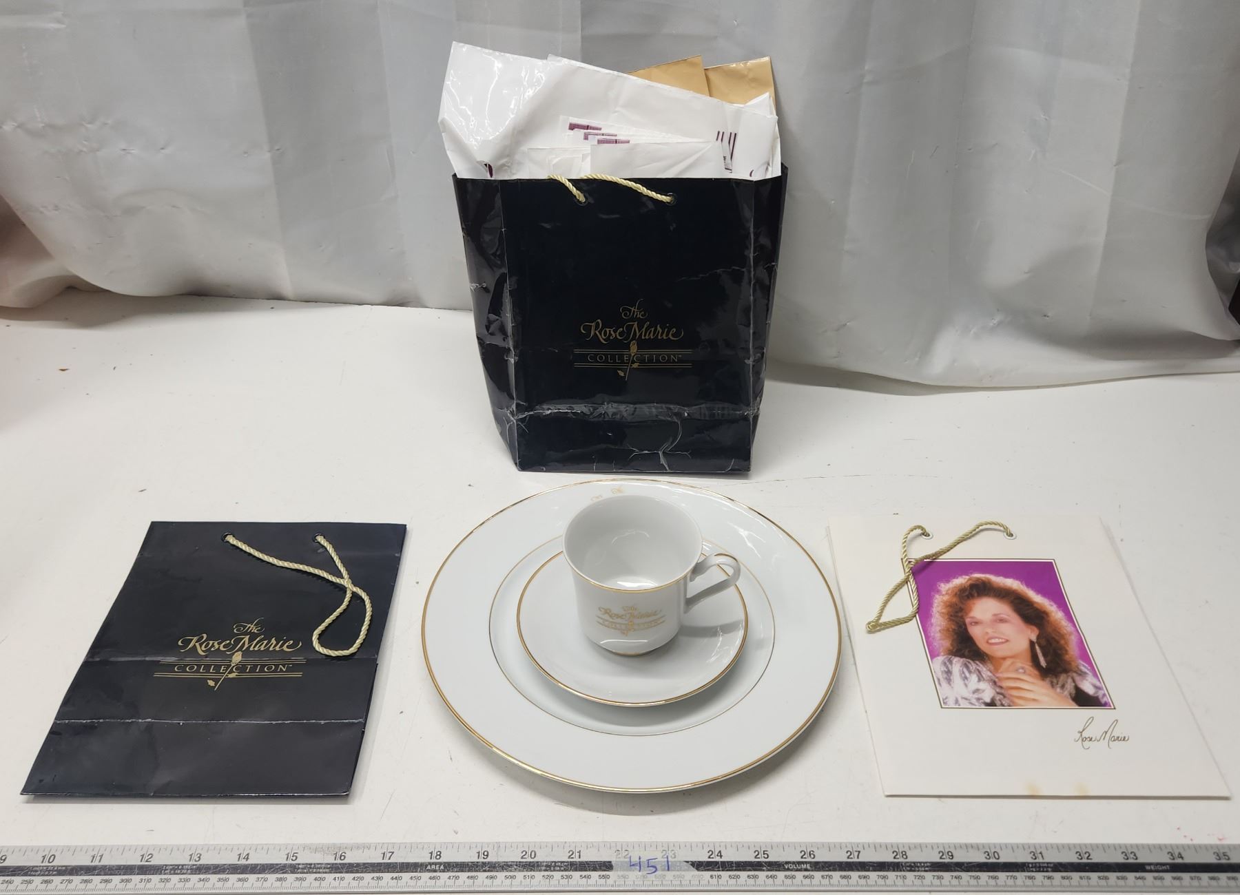 Rosemarie Collection (We Care) Memorabilia – 1990’s Fine China cup/saucer & dinner plate and customer delivery bags
