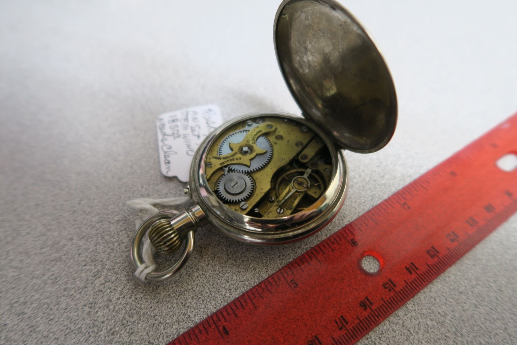 Roskopf 18 size pinset stem wind pocket watch - needs cleaning