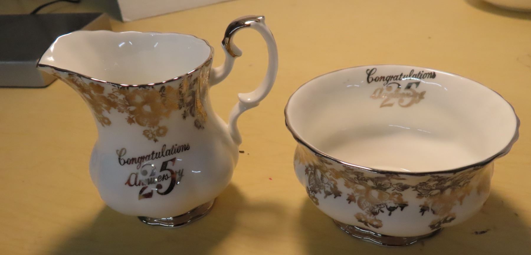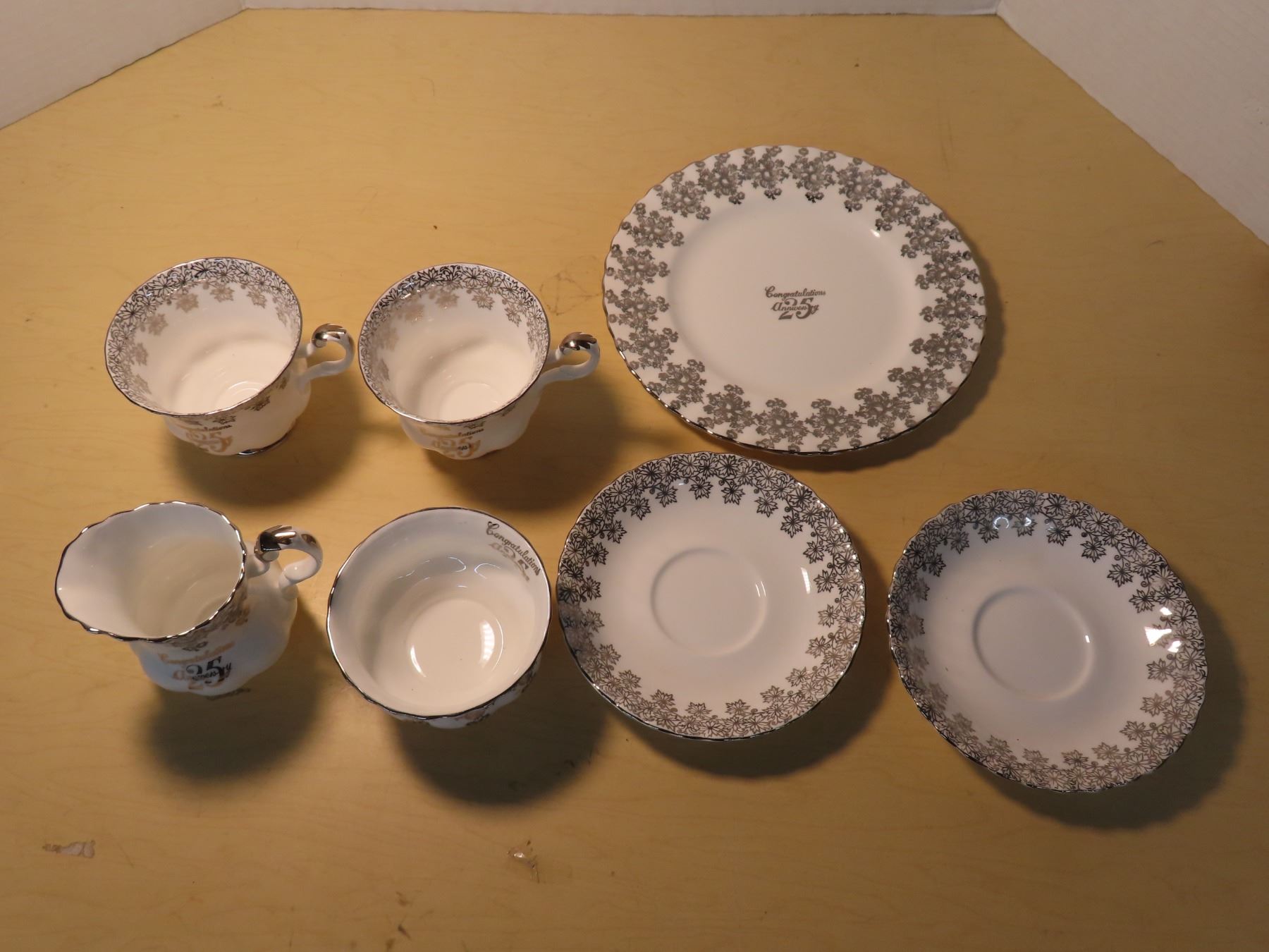 Royal Albert "25th Anniversary" 2 Teacups and Saucers, Cake Plate, Cream and Sugar