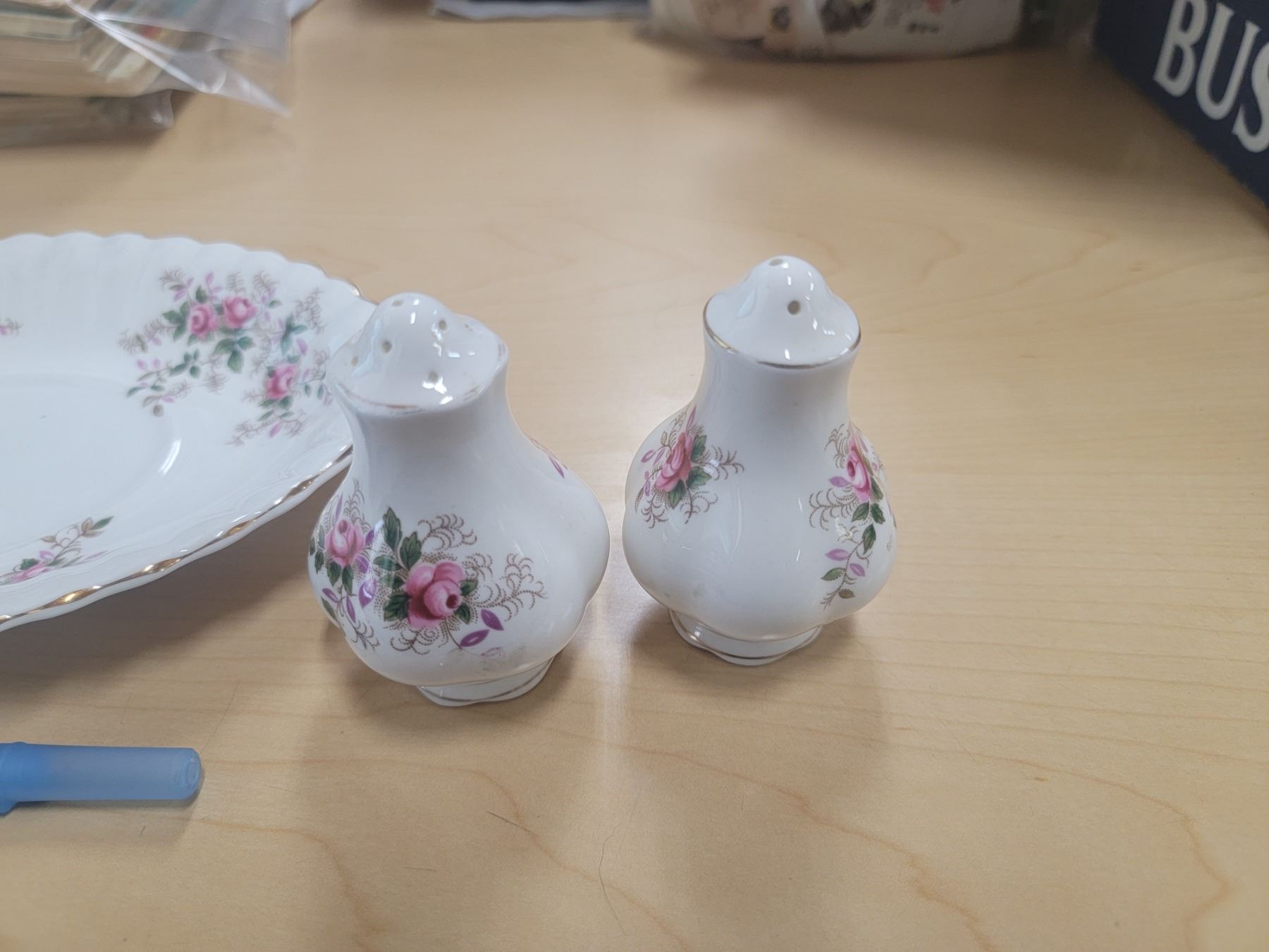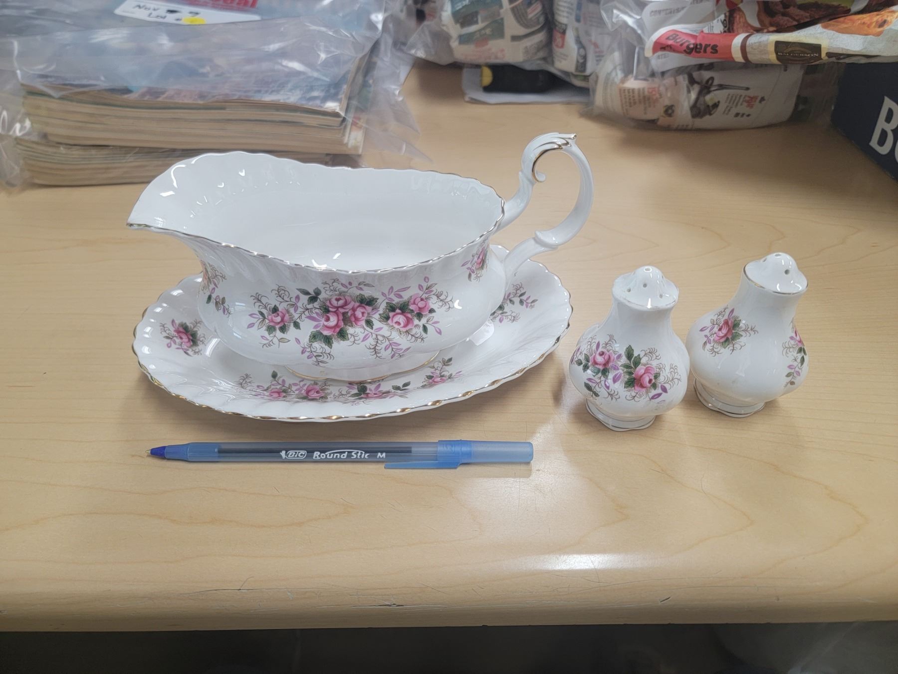 Royal Albert "Lavender Rose" Gravy Boat and Salt and Pepper Shakers