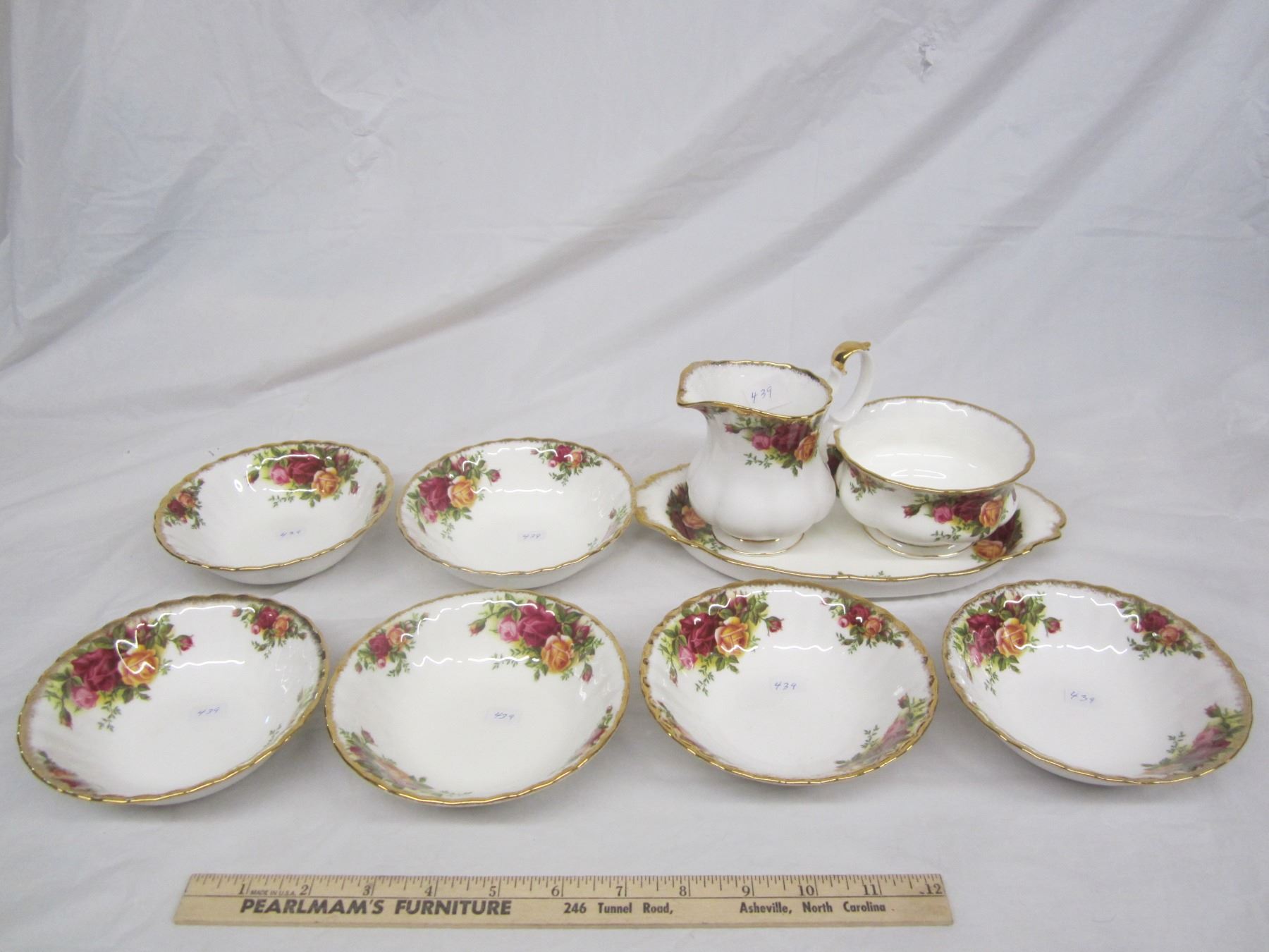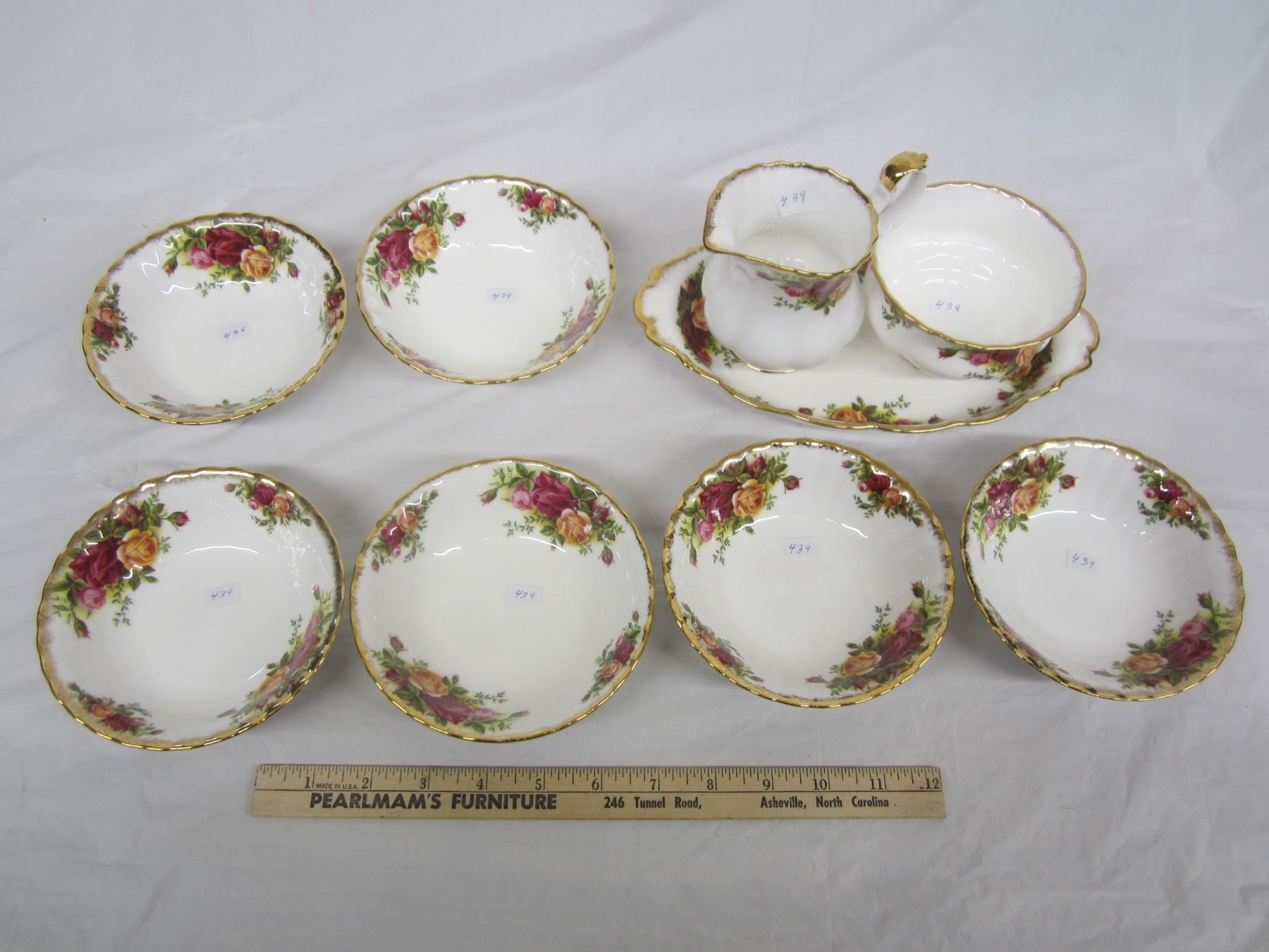 Royal Albert Old Country Roses 6 Fruit Bowls ,and Large Cream, Sugar, Tray
