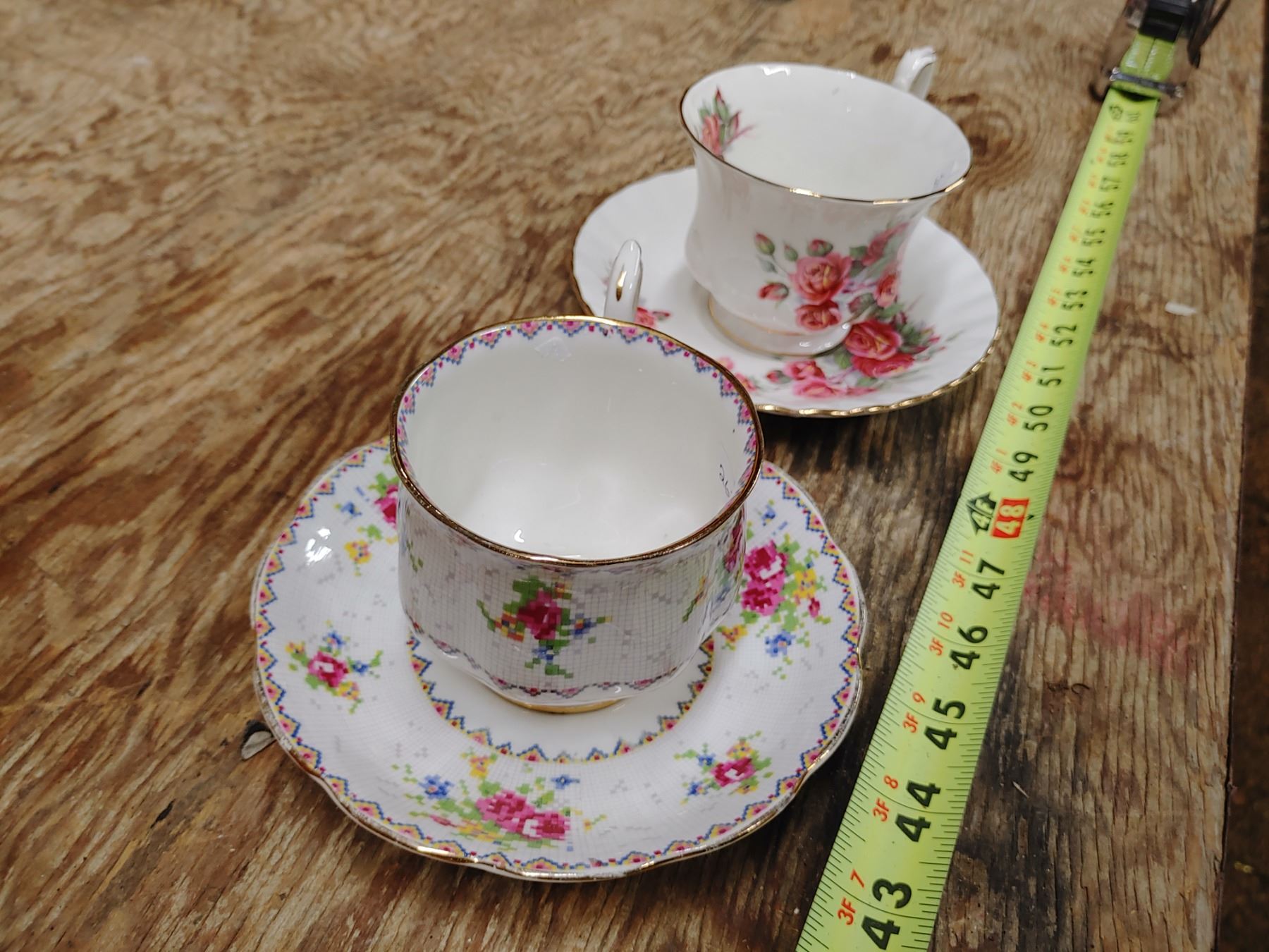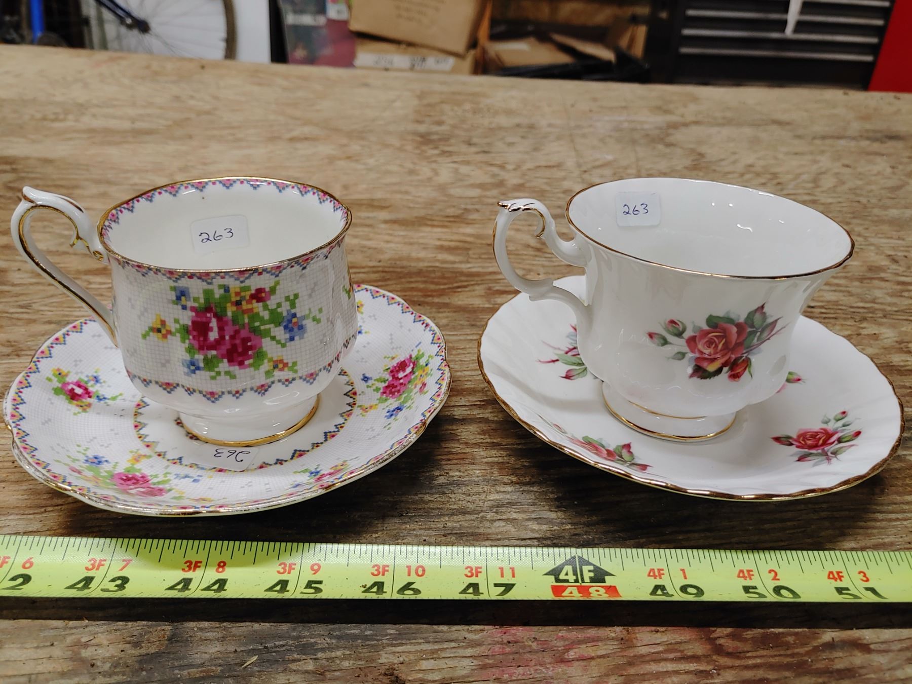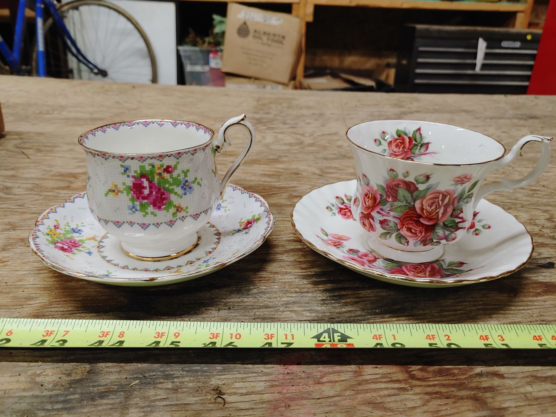 Royal Albert Petit Point & Centennial Rose Tea Cups & Saucers
