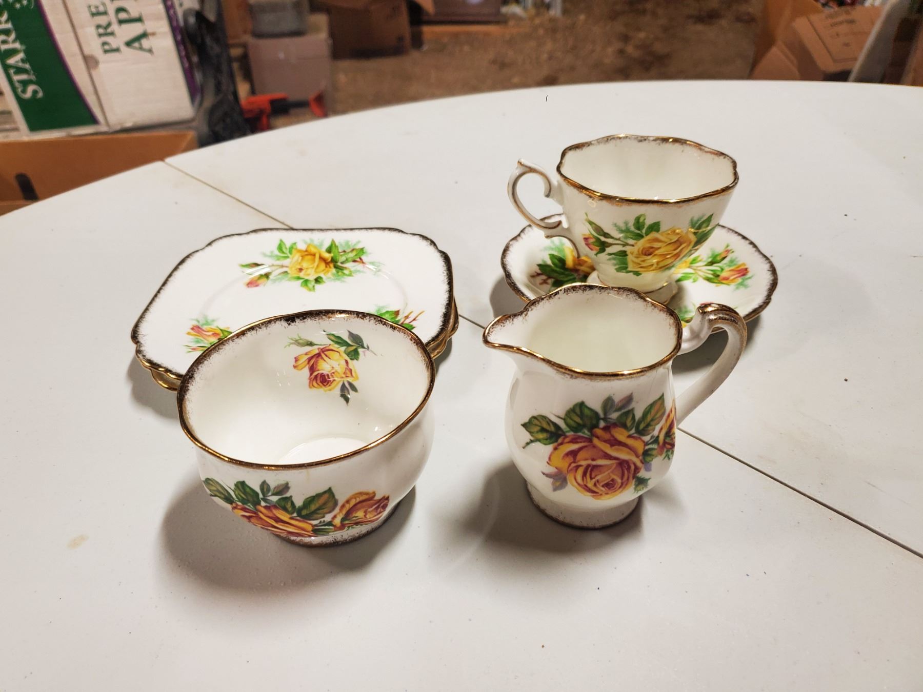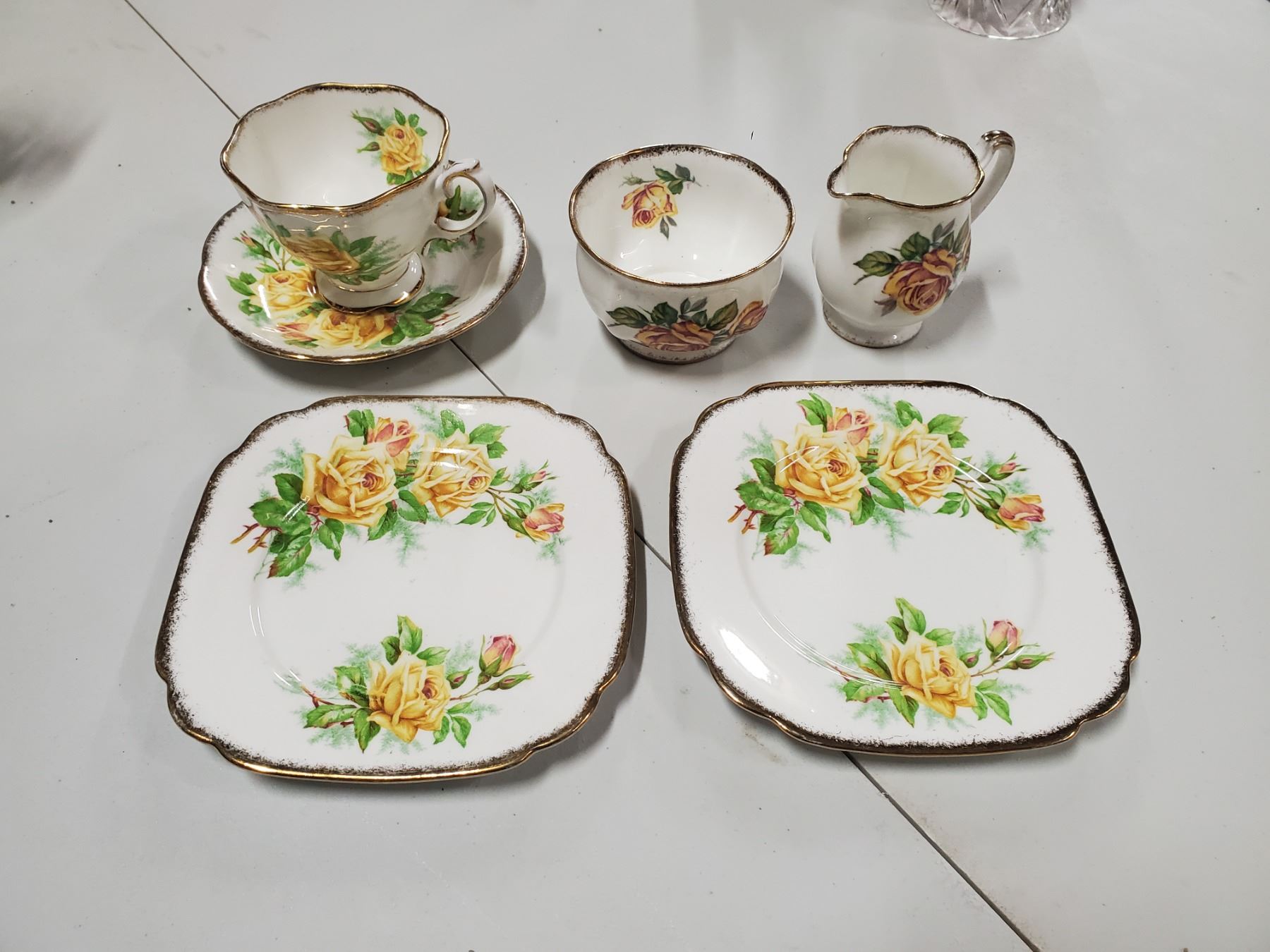Royal Albert 'Tea Rose' plates, cup & saucer + Royal Standard 'Romany Rose' cream & sugar