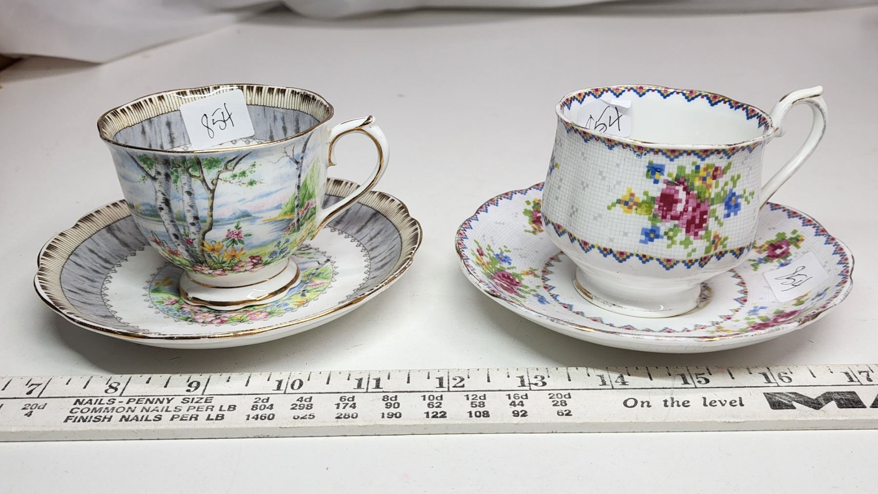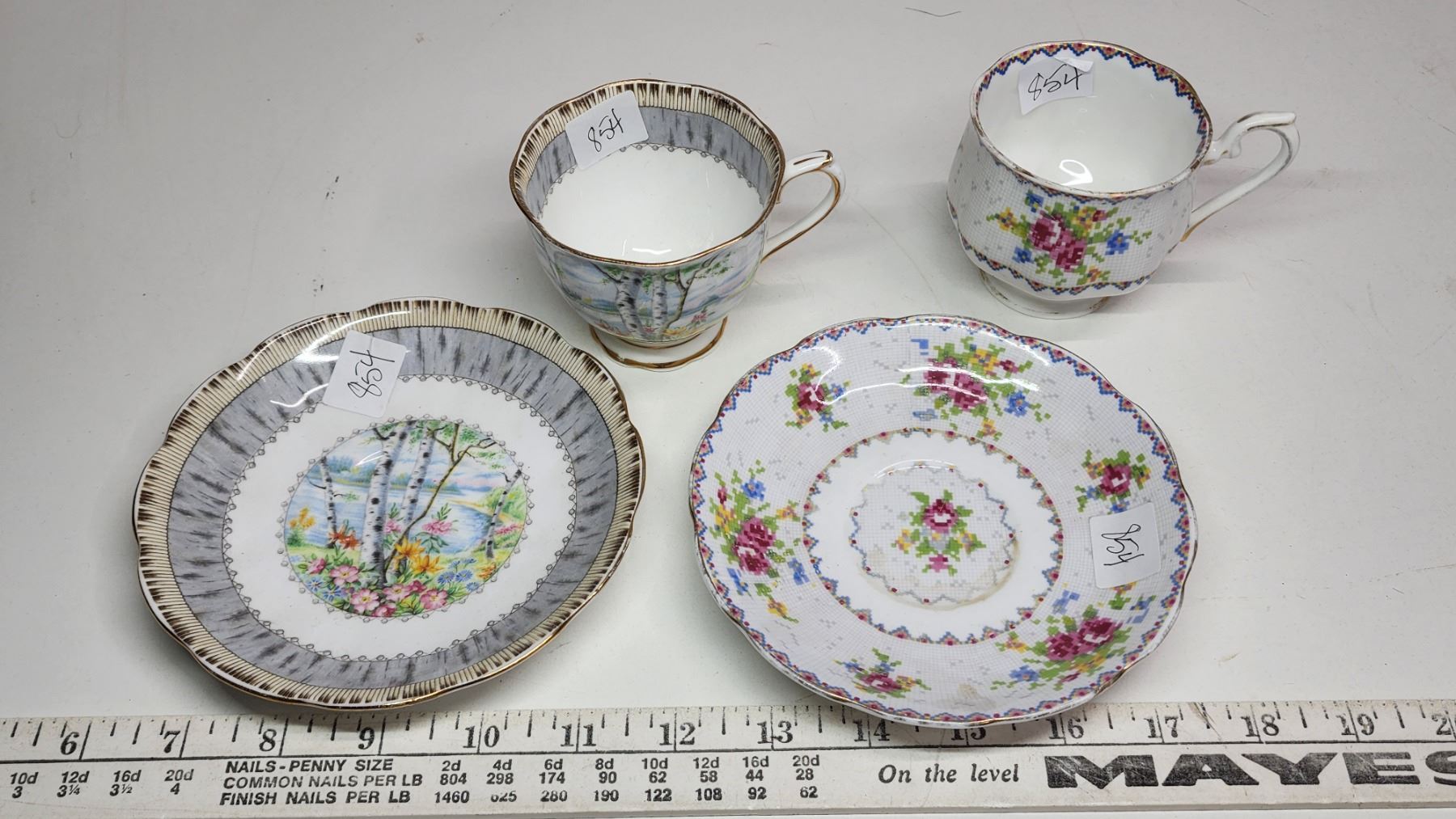 Royal Albert cups & saucers "Petit Point" & Silver birch - China