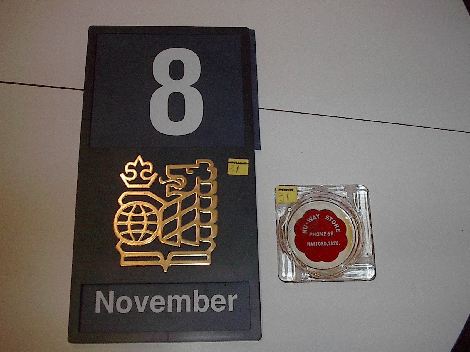 Royal Bank Calendar and Nu-way Grocery ashtray