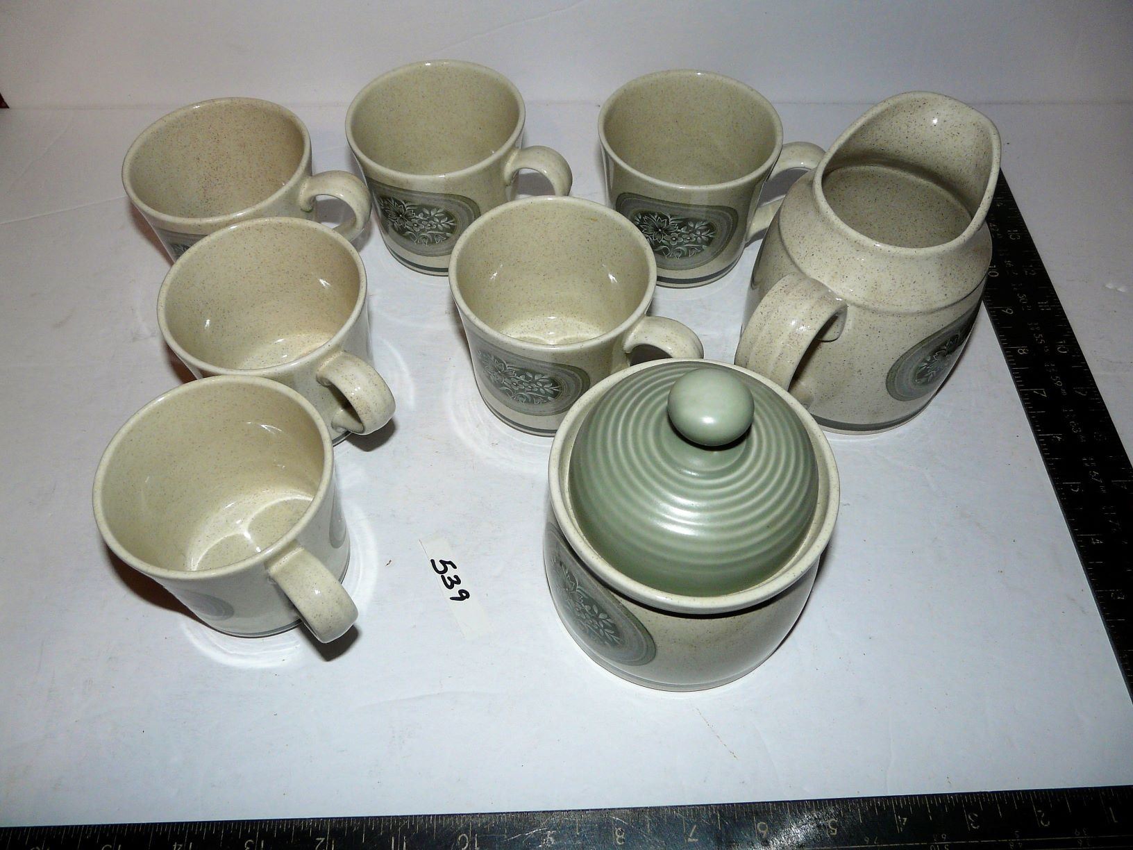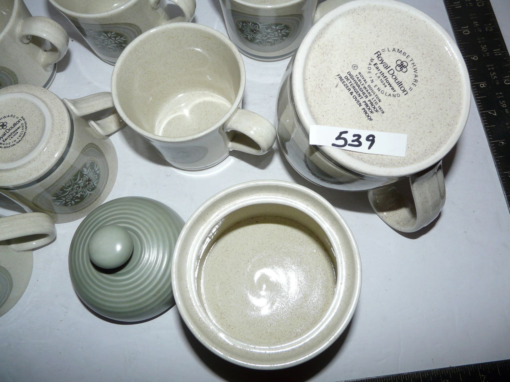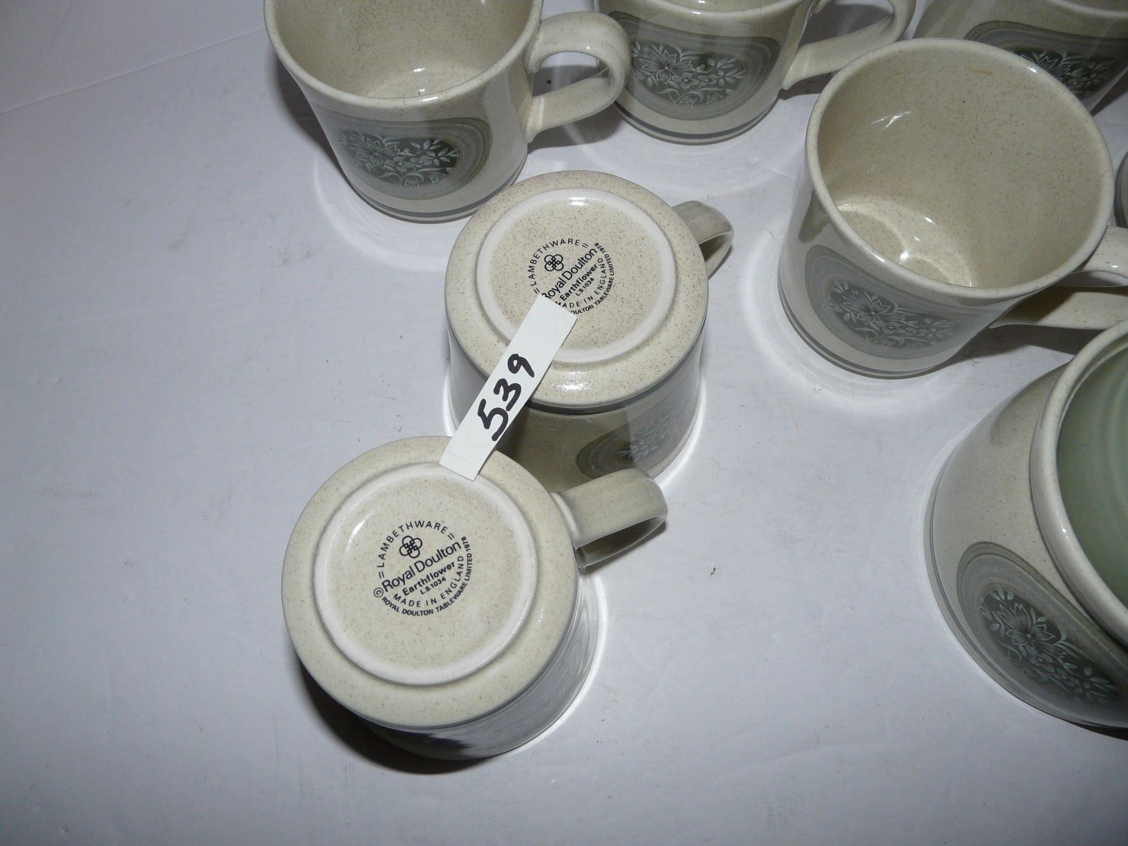 Royal Doulton Lambethware "EarthFlower" Cups, Creamer & Sugar (There may be a hairline crack in one of the cups)