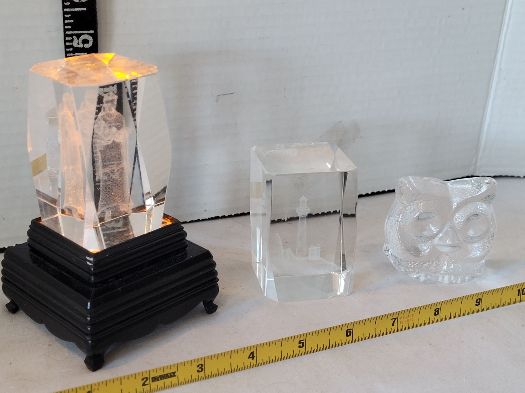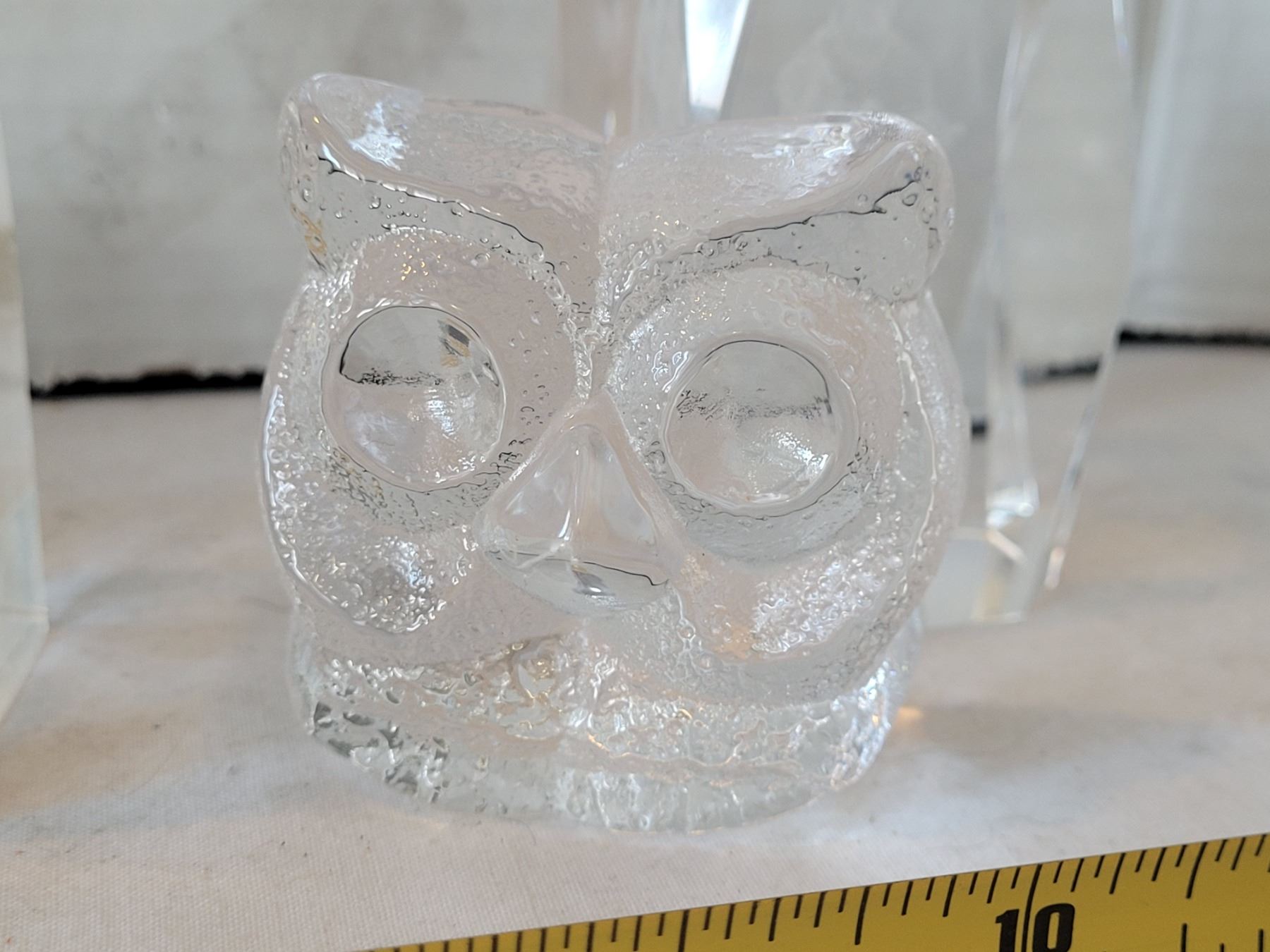 Royal Krona Swedish crystal owl. Color changing stand for glass pieces.