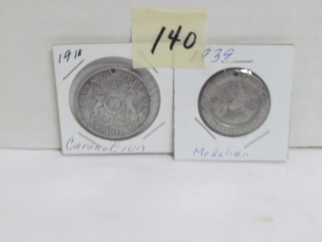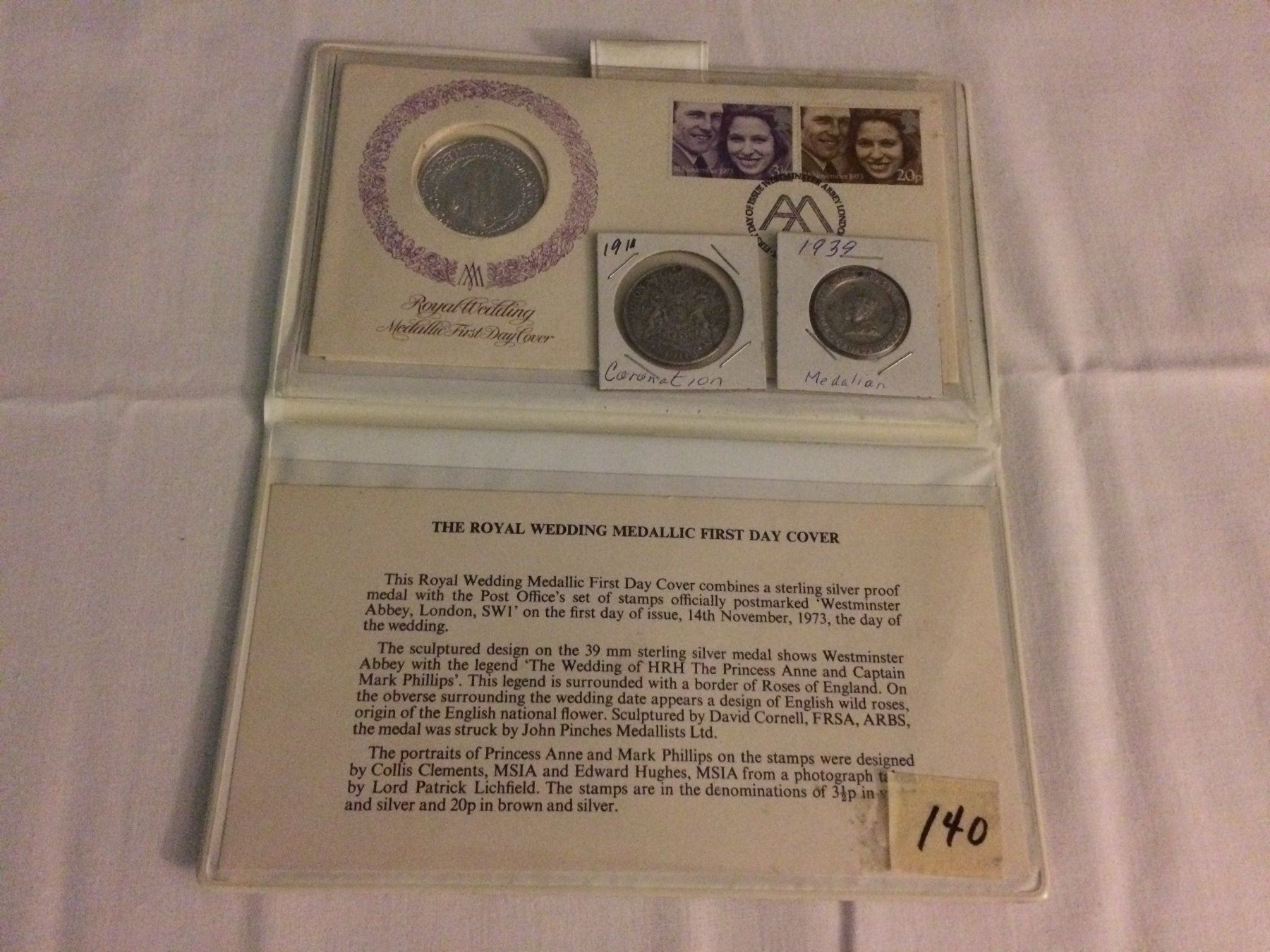 Royal Wedding Princess Ann and Mark Phillips 2 coins 1911 Coronation and 1939 Royal visit