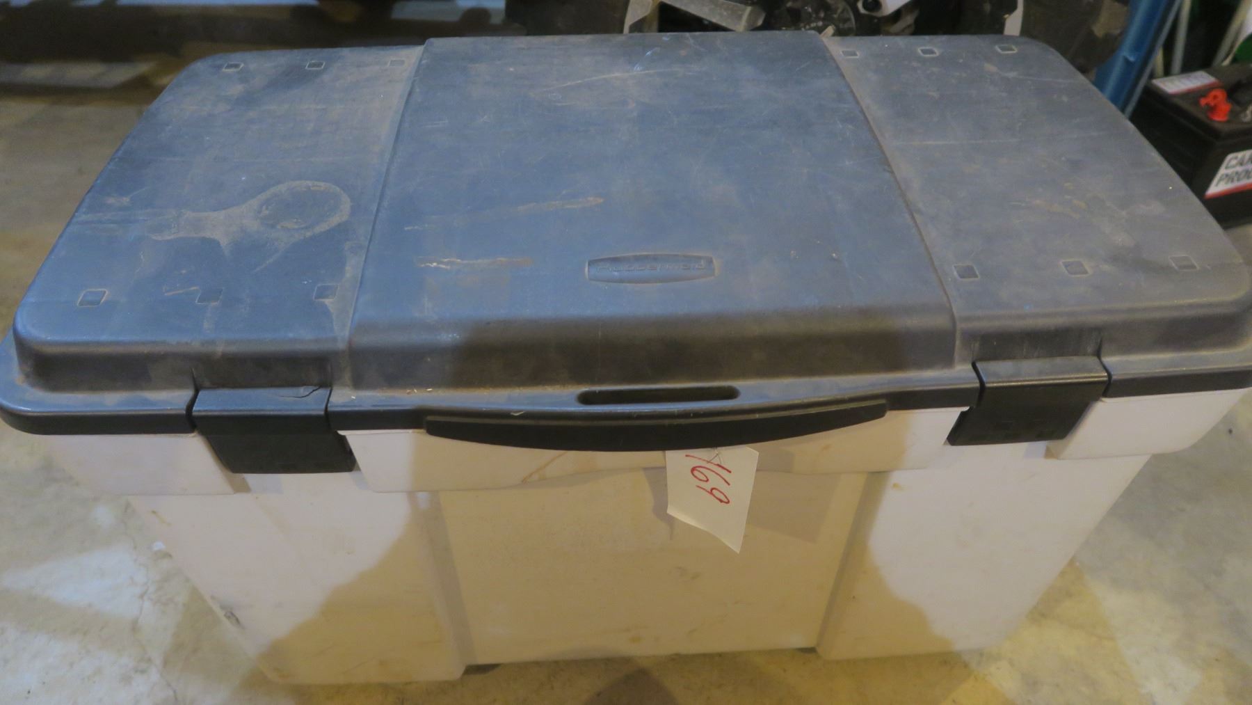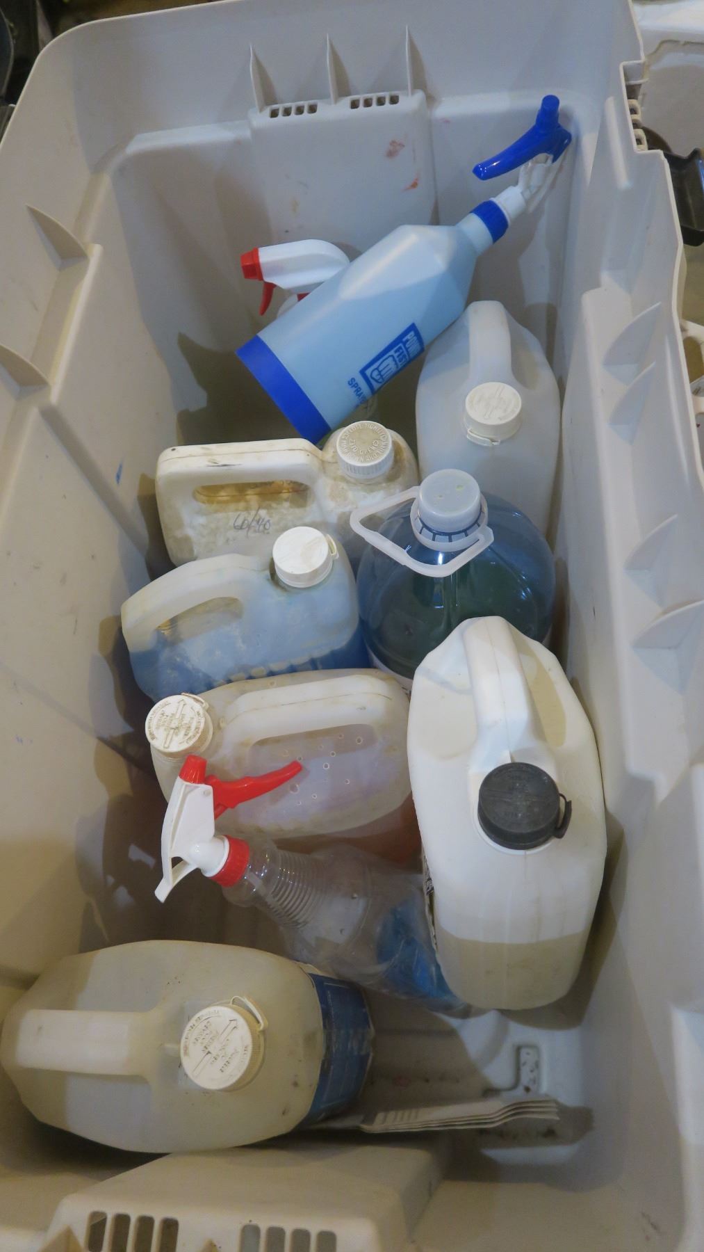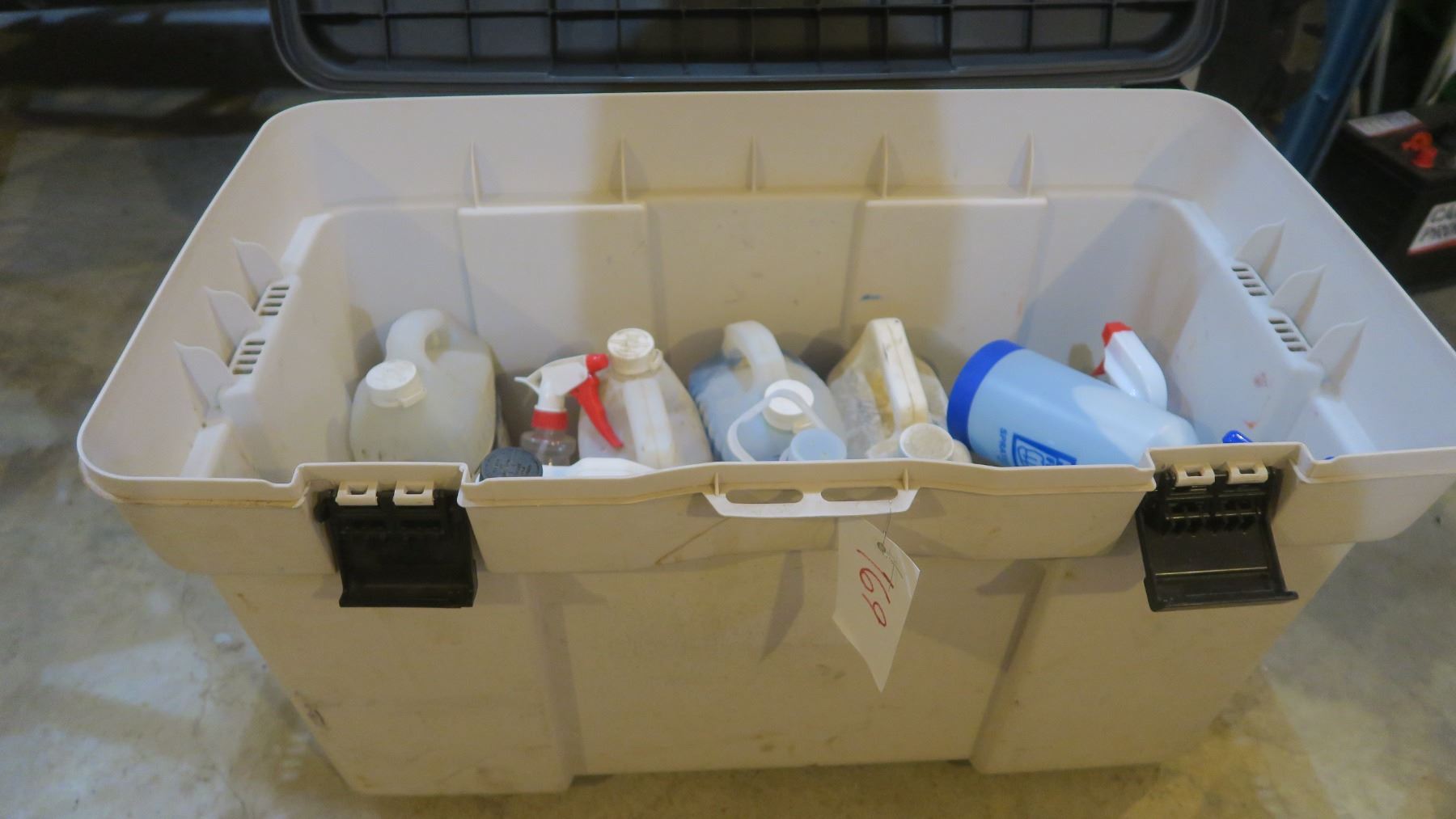 Rubbermaid Bucket with Washer Fluid, Cleaning Supplies, Etc.