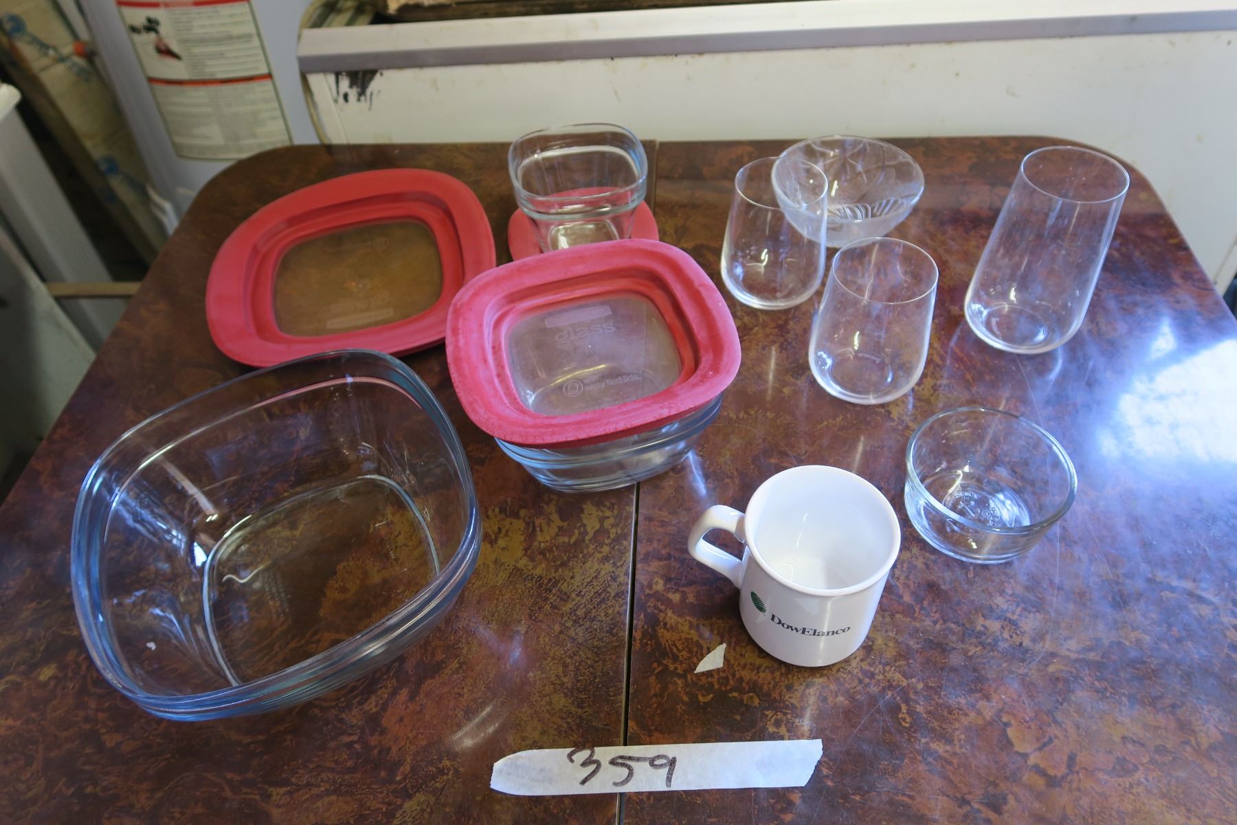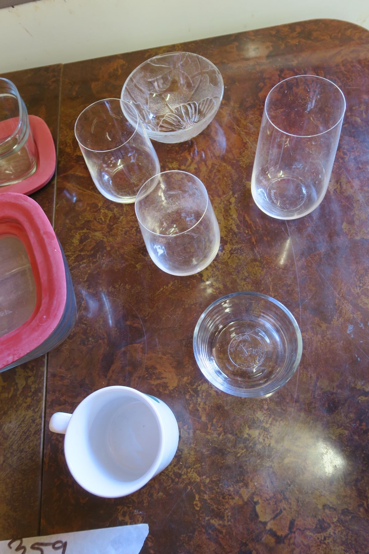 Rubbermaid Glass Bowls X3 with Lids, 4 Glasses, Coffee Cup and Bowls