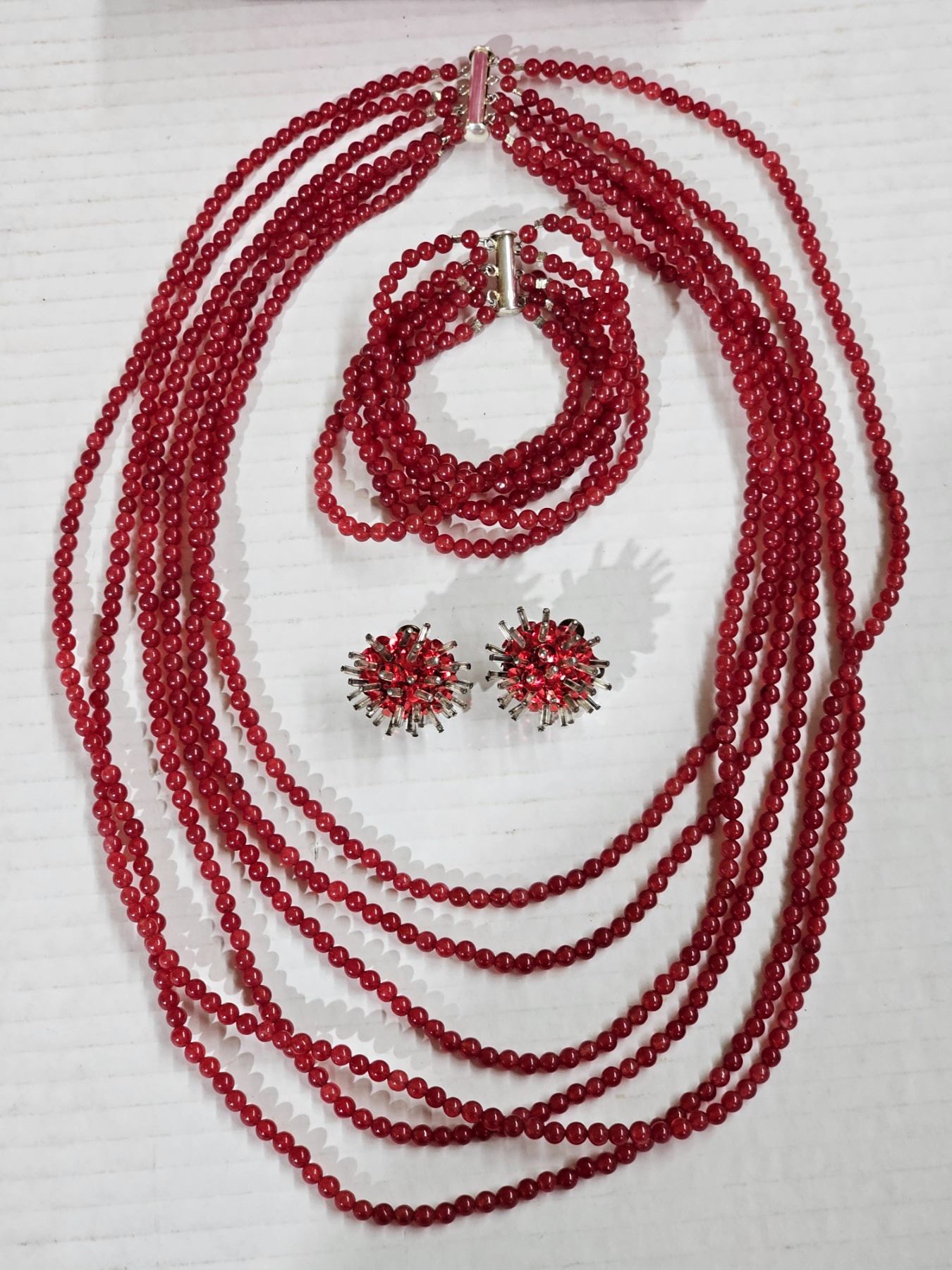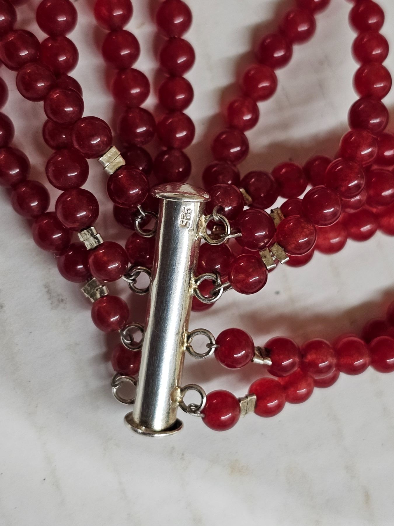 Ruby Necklace & Bracelet Set w/ "925" Silver Clasps (Cannot Confirm Authenticity)
