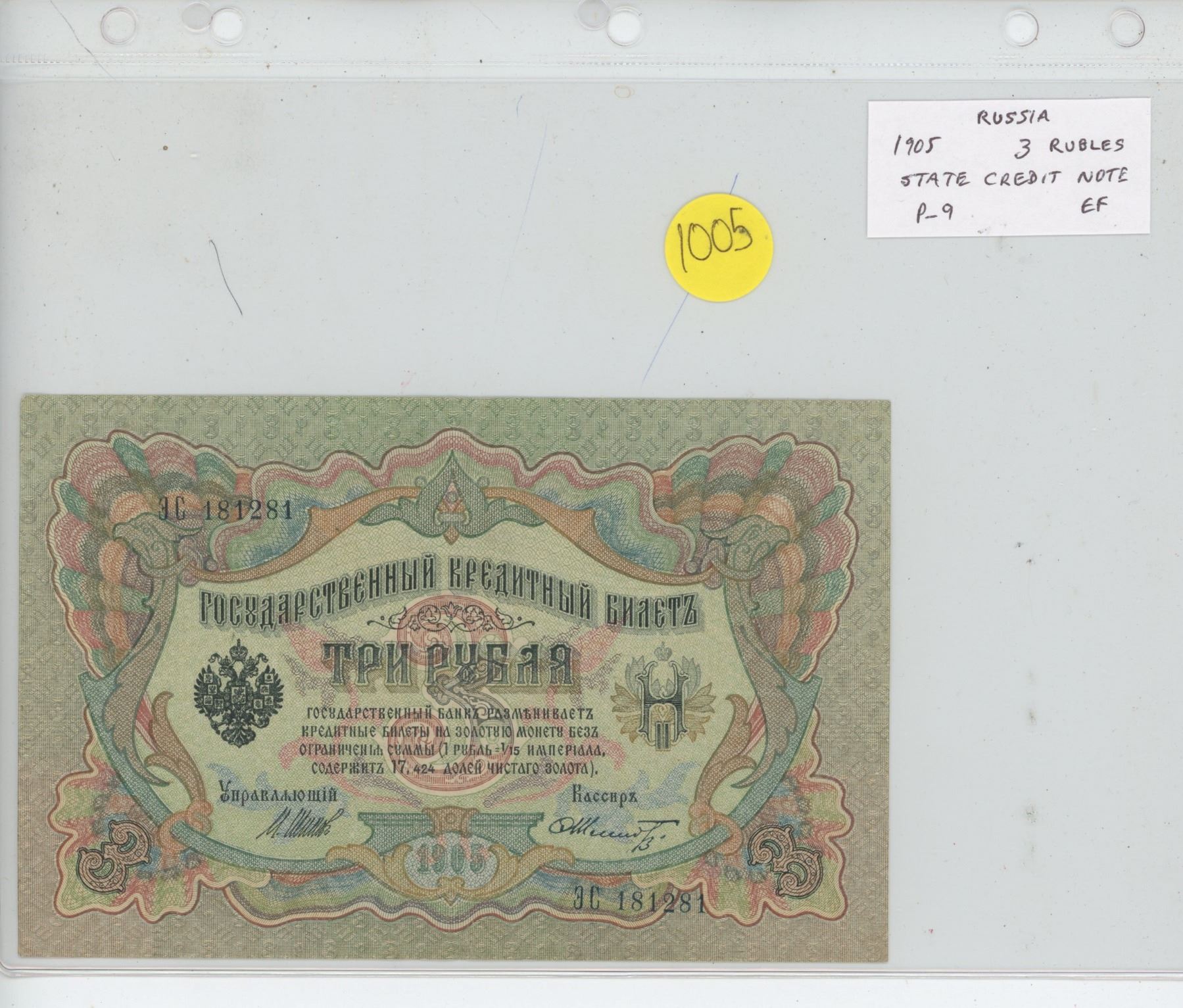 Russia – Empire. 1905 3 Roubles State Credit Note. P-9. EF.