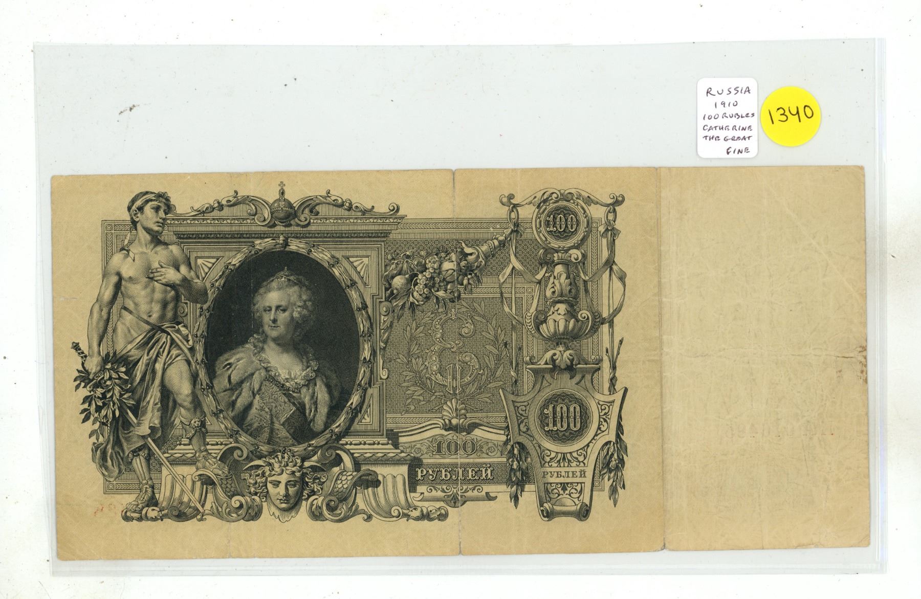 Russia – Empire. 1910 100 Rubles. Empress Catherine the Great. Large note. Fine.