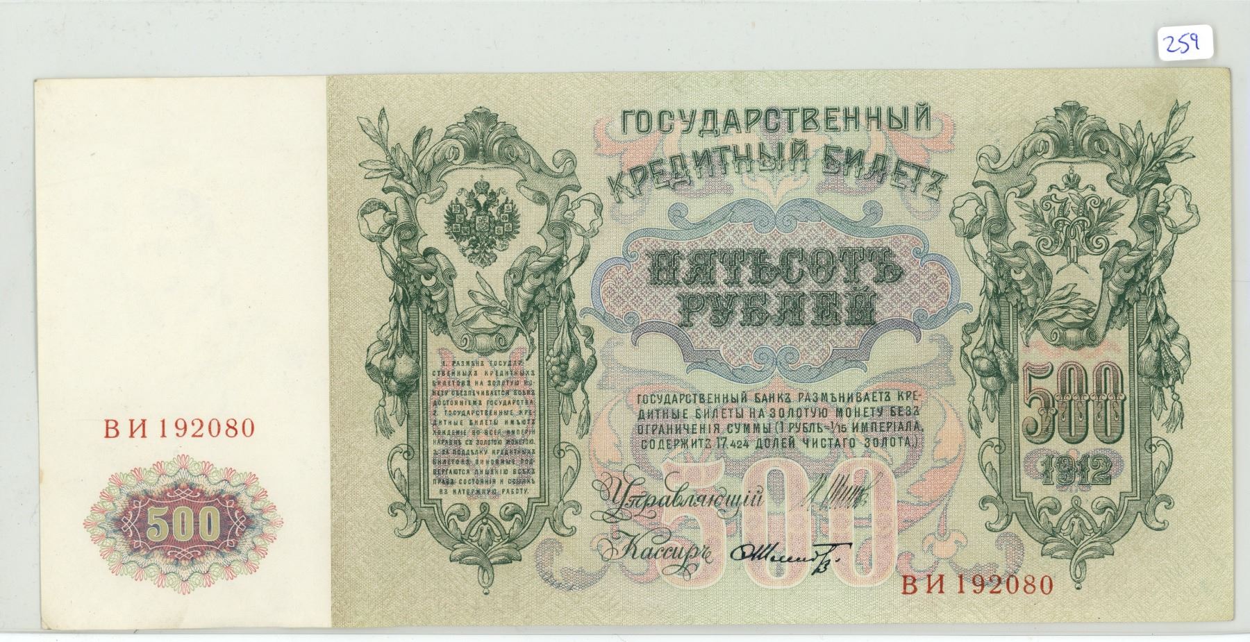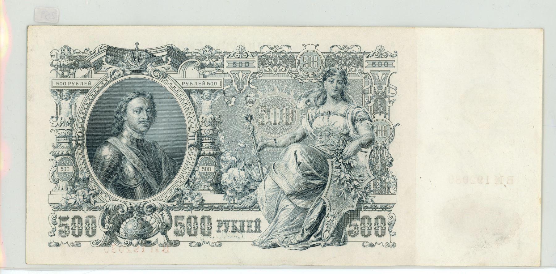 Russia – Empire. 1912 500 Rubles. Peter the Great. A huge note that measures 10 3/4” X 5”. AU-50.