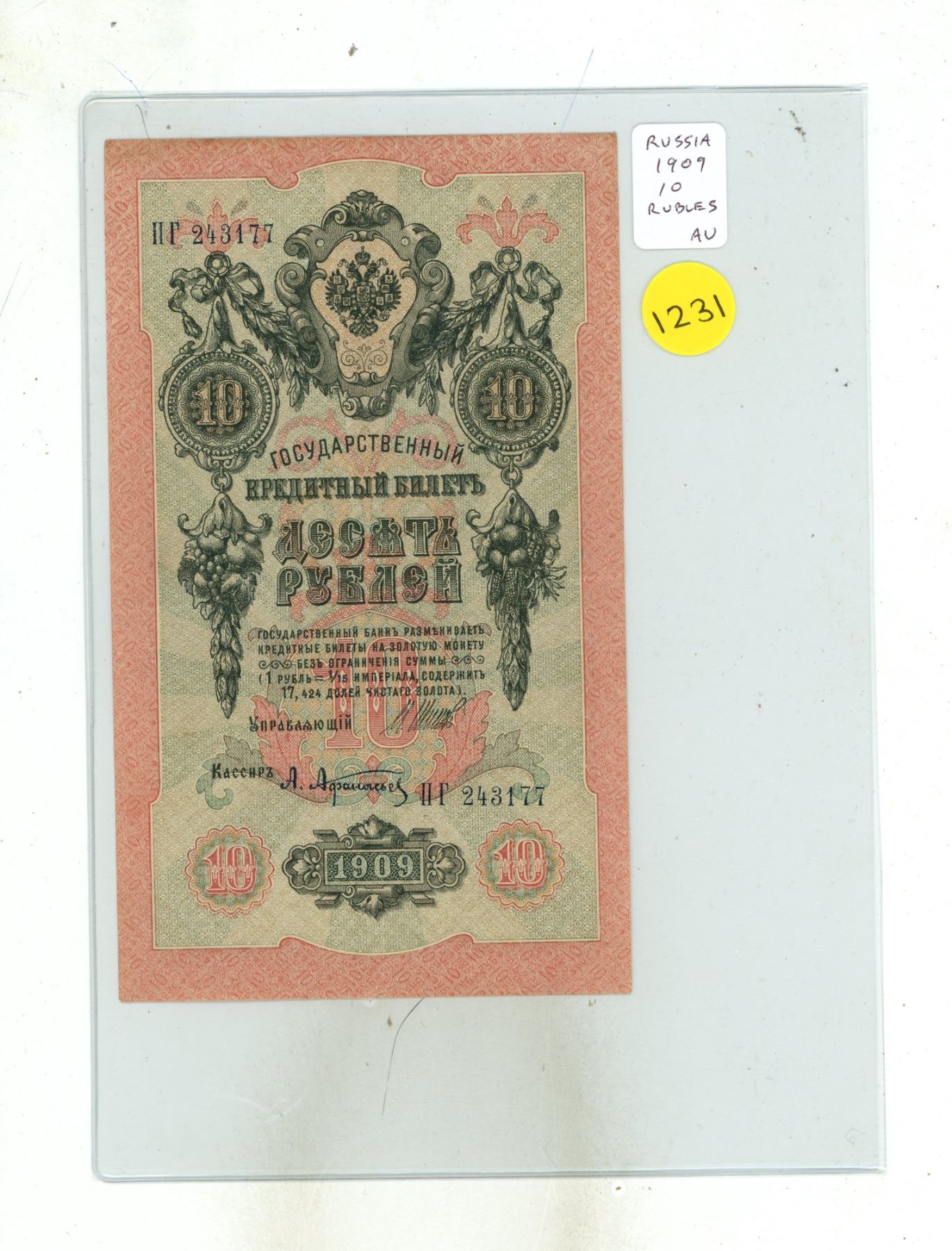 Russia – Empire under the Czars. 1909 10 Rubles. AU.