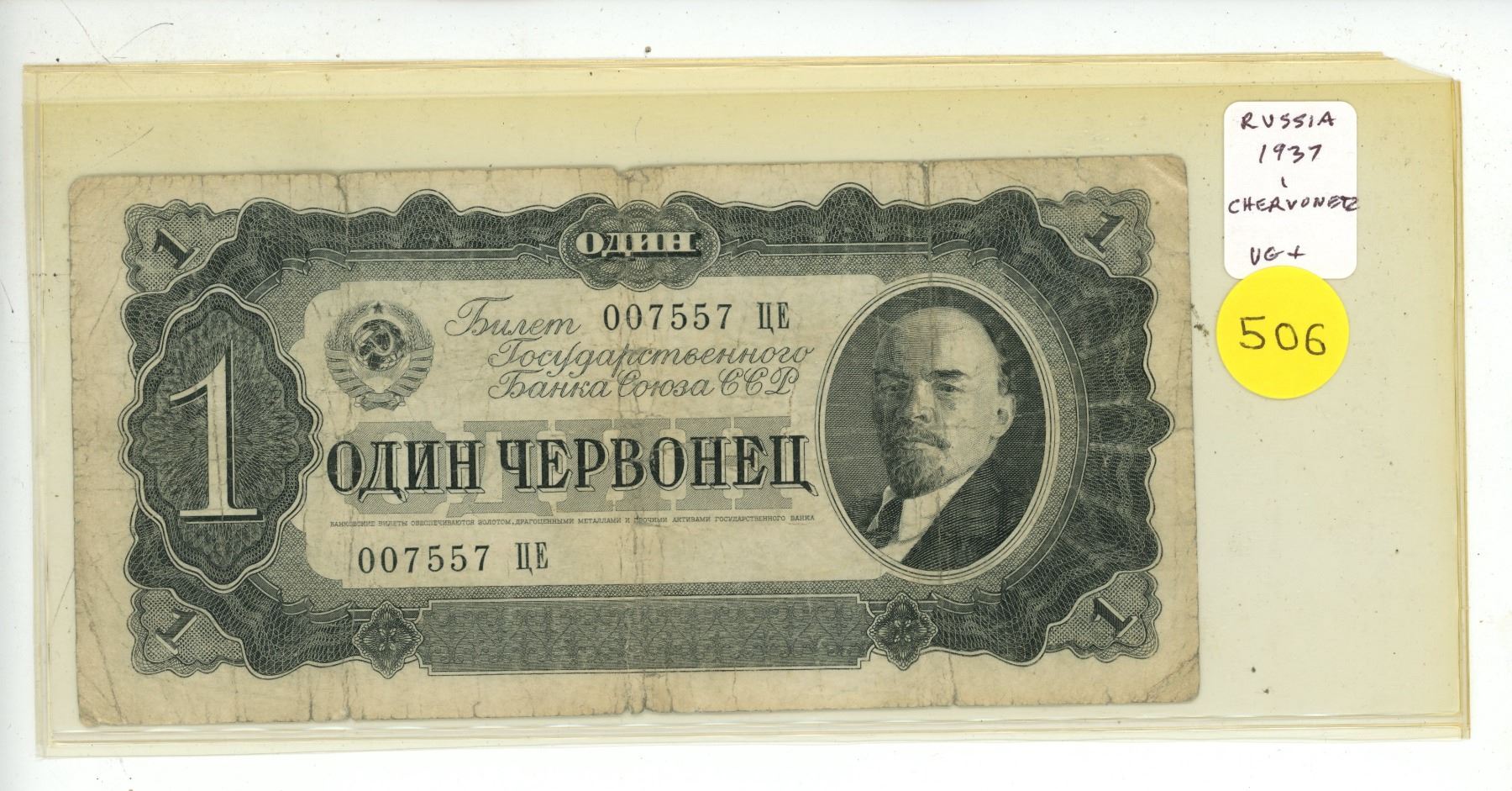 Russia – USSR. 1937 1 Chervonetz. Lenin. VG+.