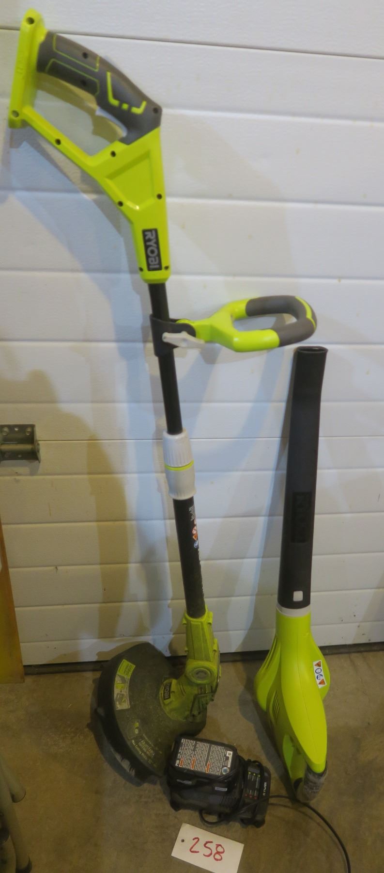Ryobi electric weedwhacker and leaf blower with battery and charger